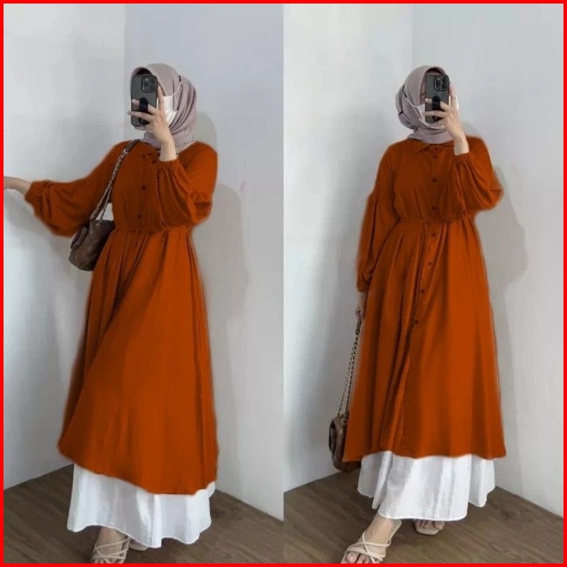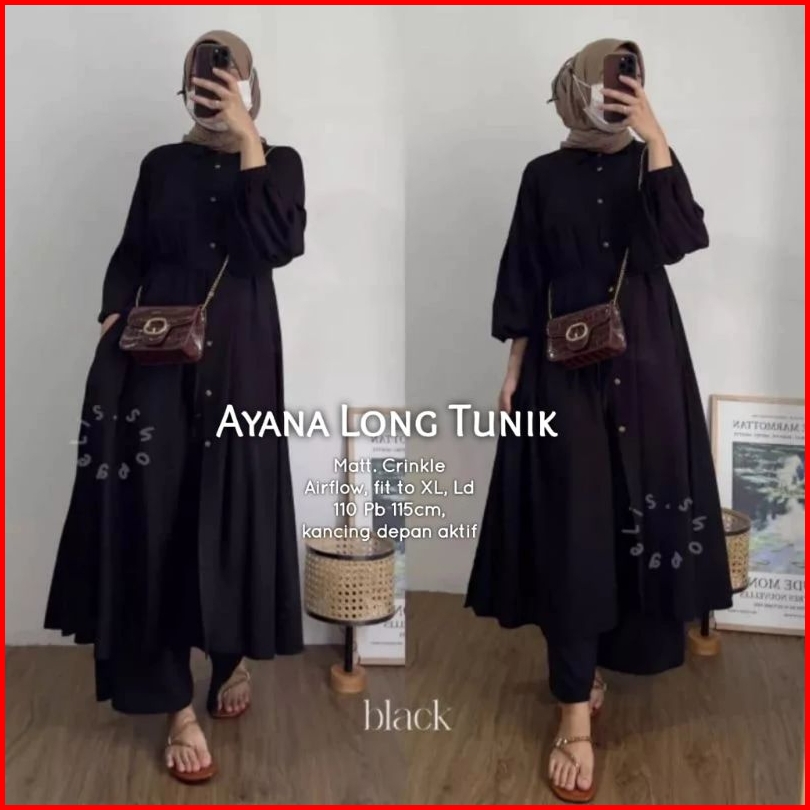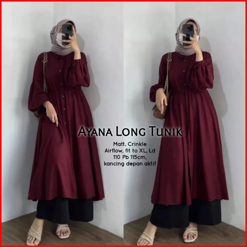 Tunik Ayana Tali Pinggang Long Tunik Kancing Aktip Busui