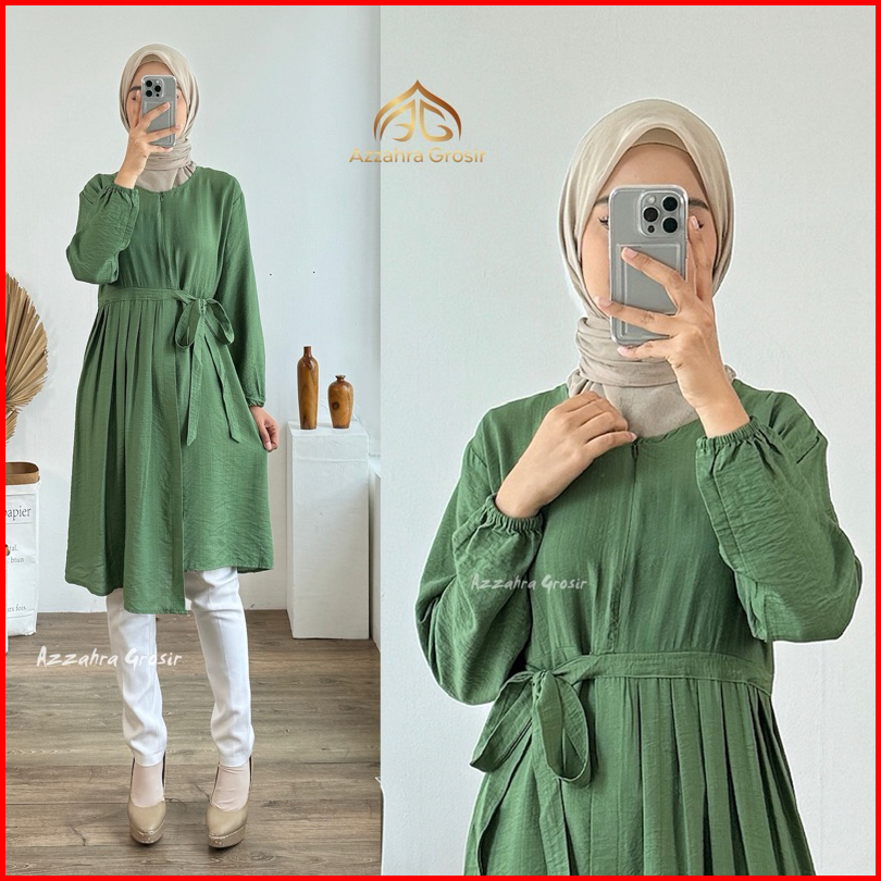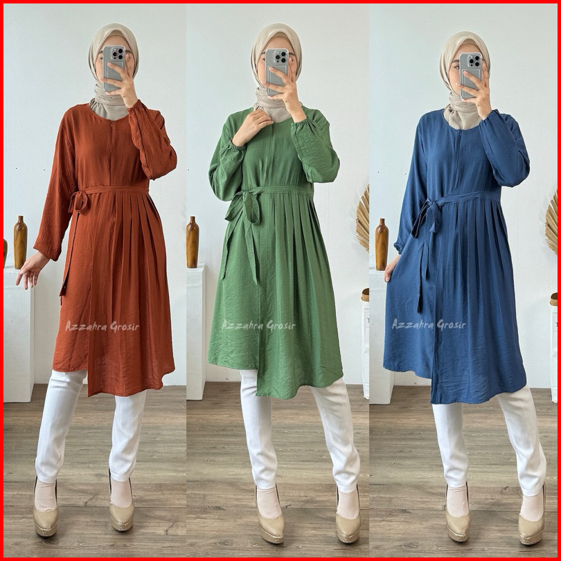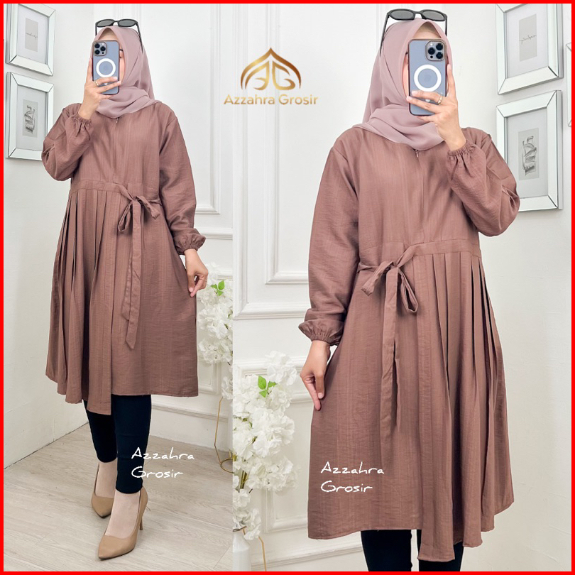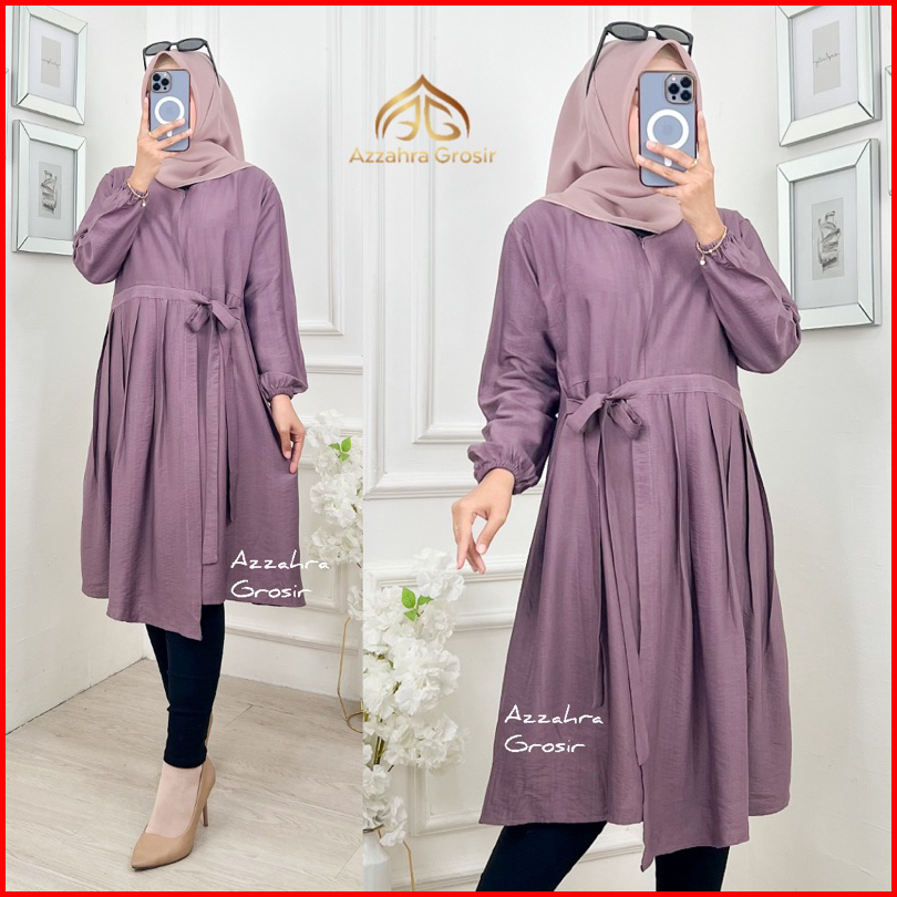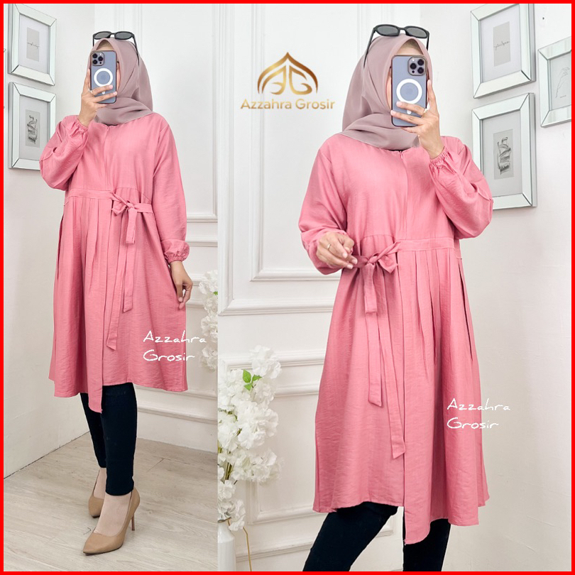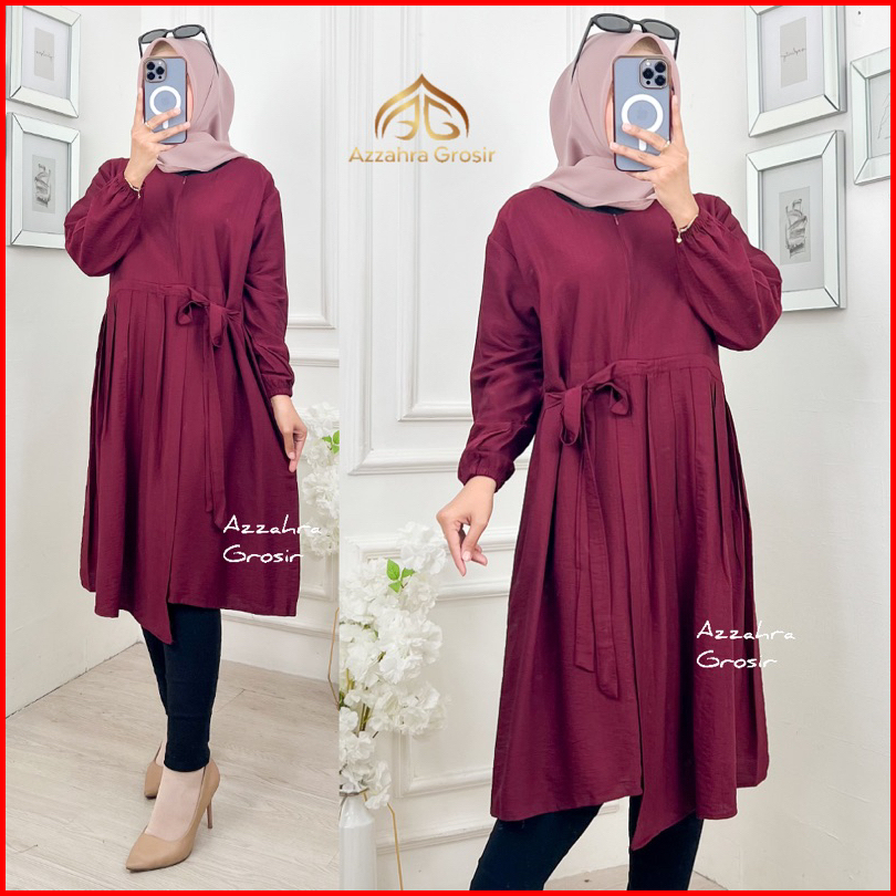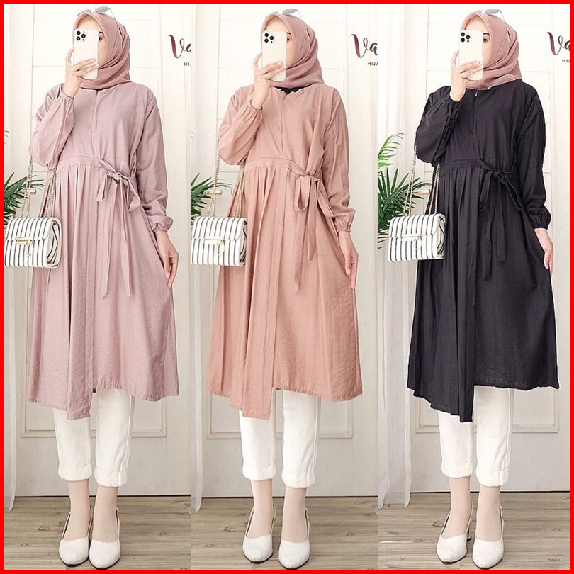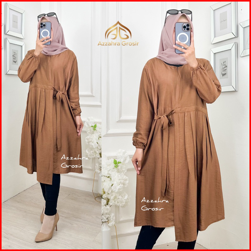 Am - Intana Tunik Wanita Ld110 Long Tunik Wanita Busui Resleting Dada Katun Linen Floy Busui 613-7803