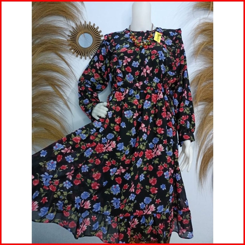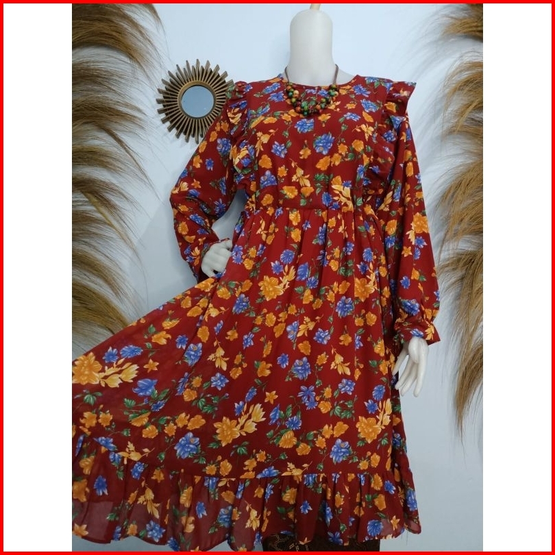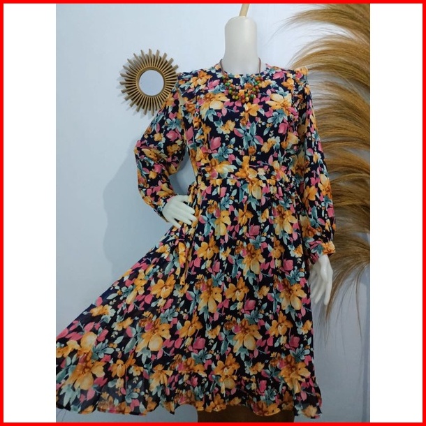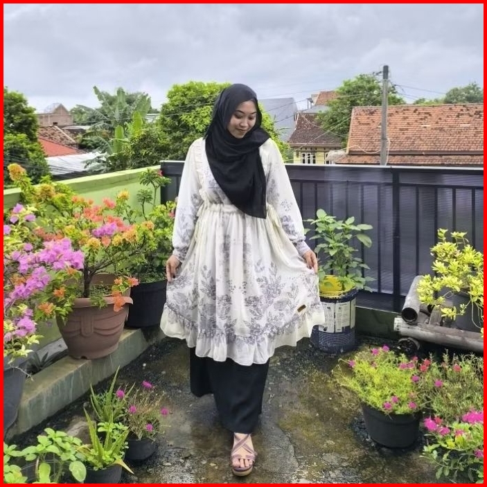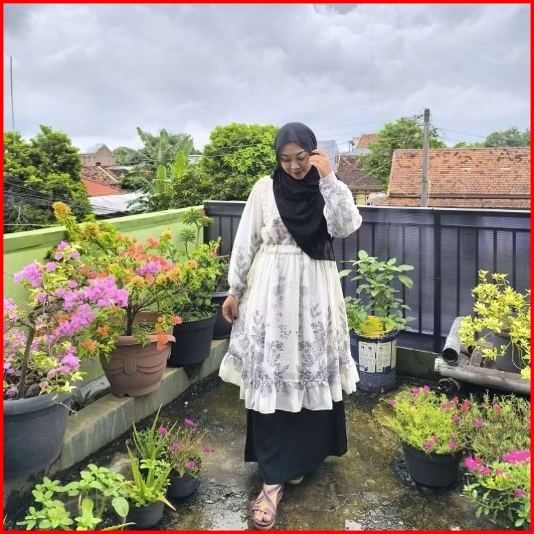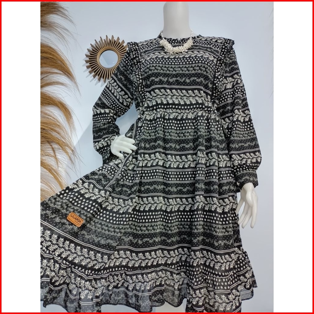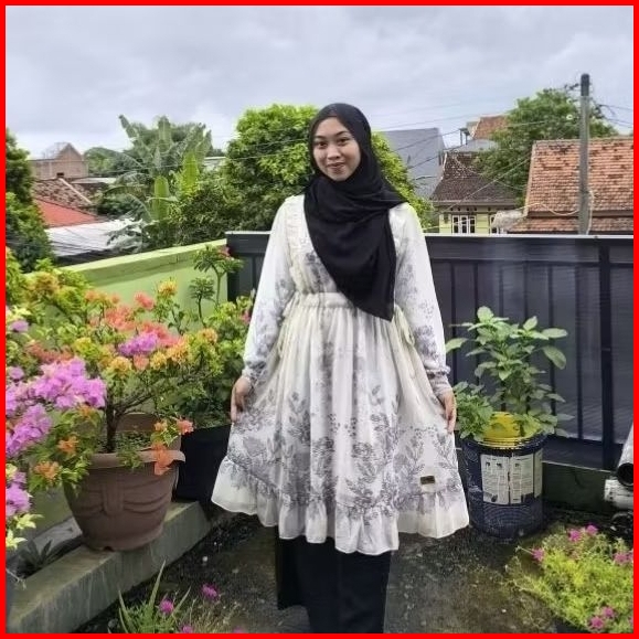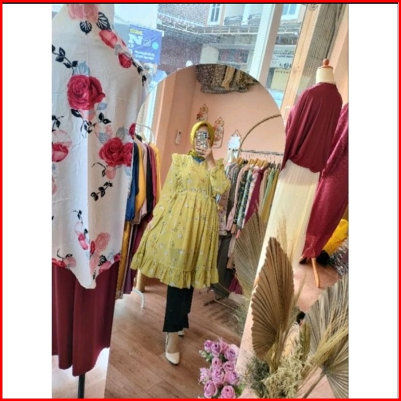 Tunik Ceruty Babydoll Rempel Serut Samping Motif