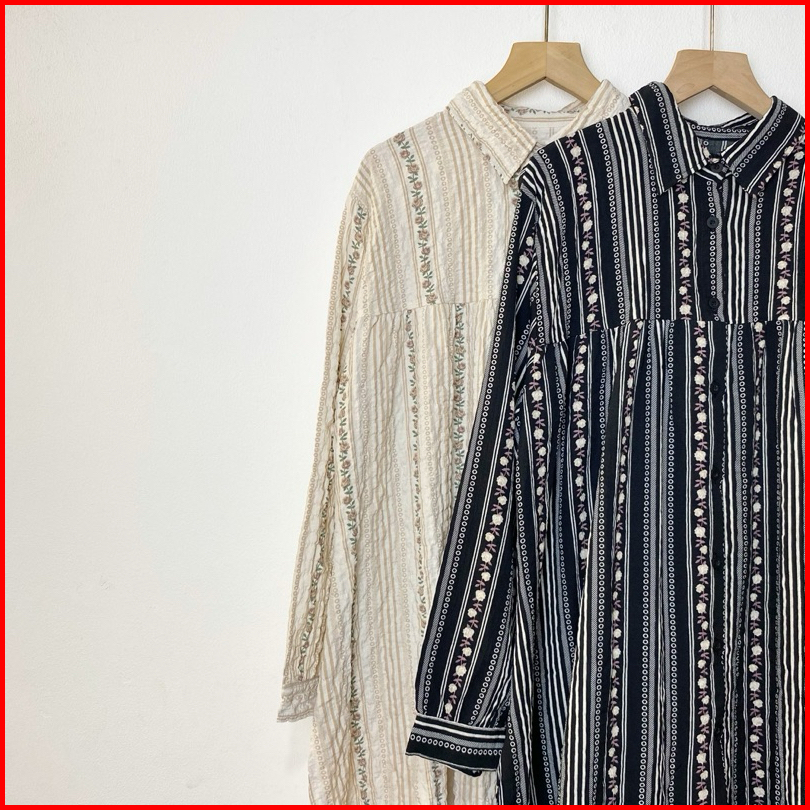 Arumi Tunik Ld 115 Crinkle Premium Atasan Wanita Motif Salur Bunga