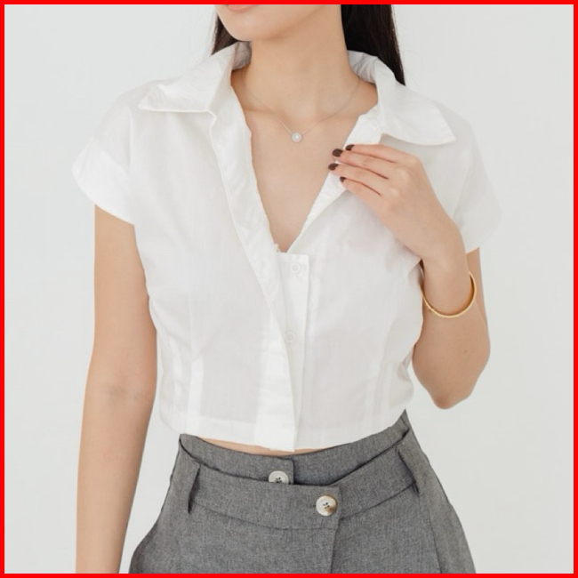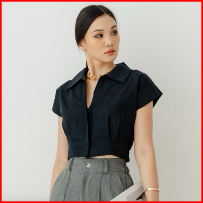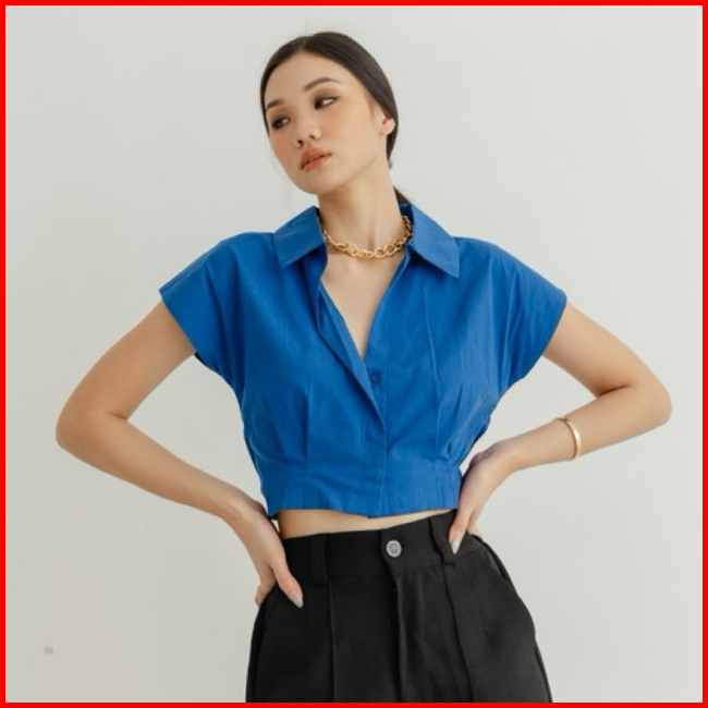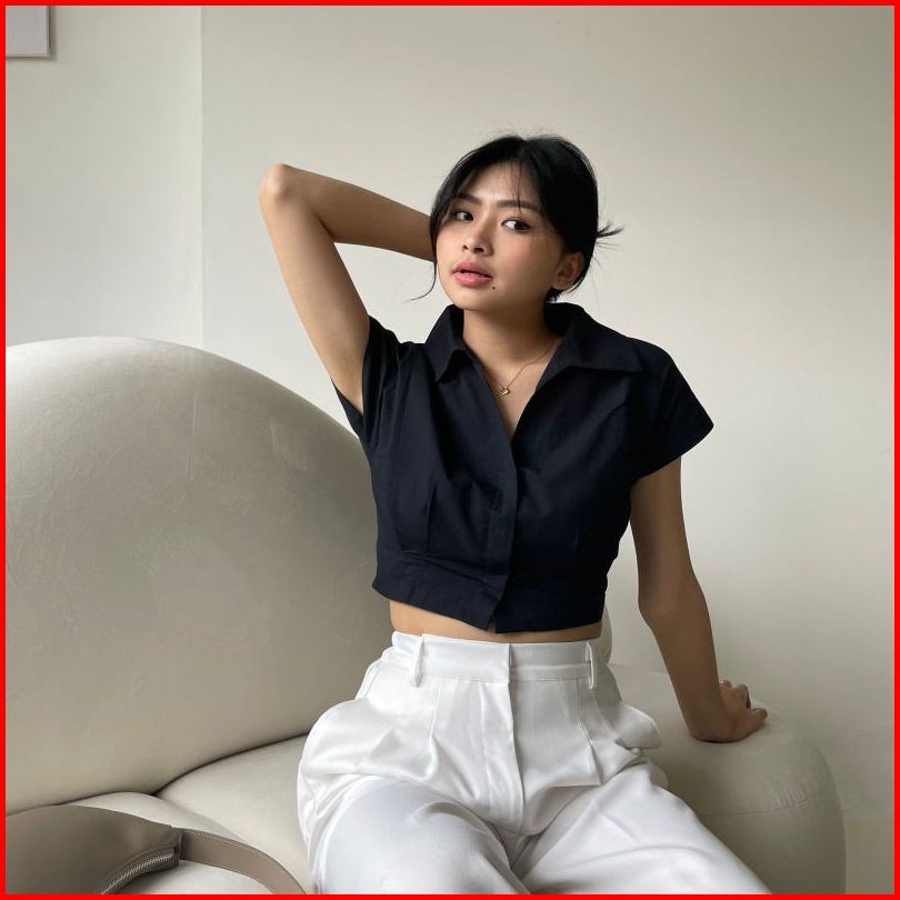 Leona Crop Top Atasan Wanita Kemeja Wanita Kemeja Crop
