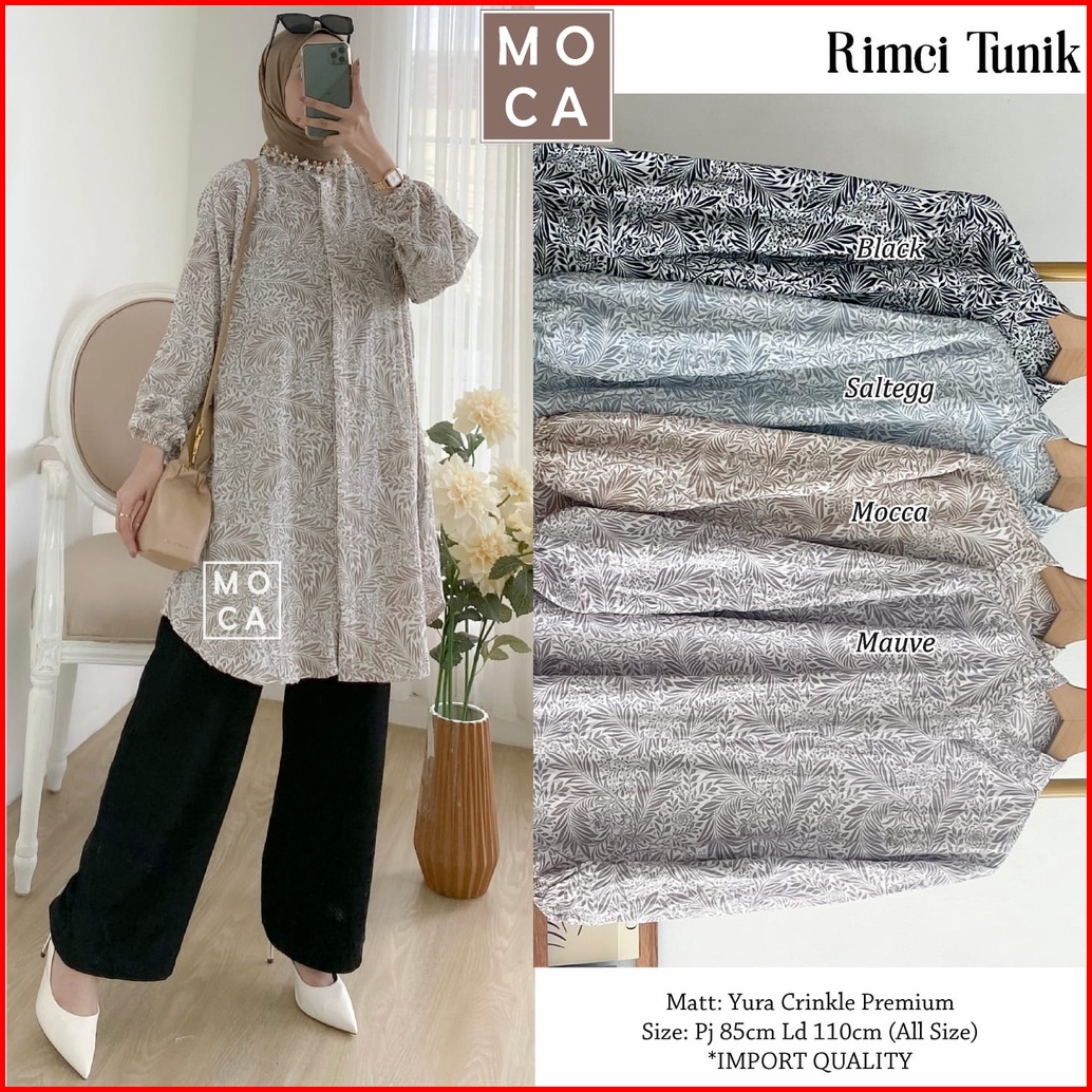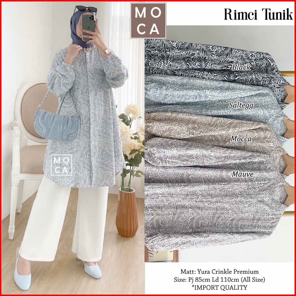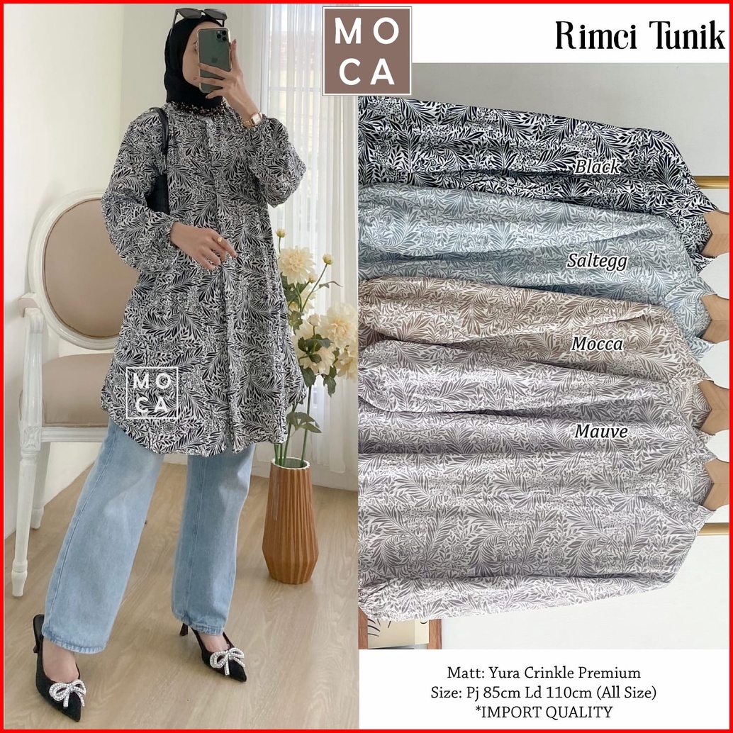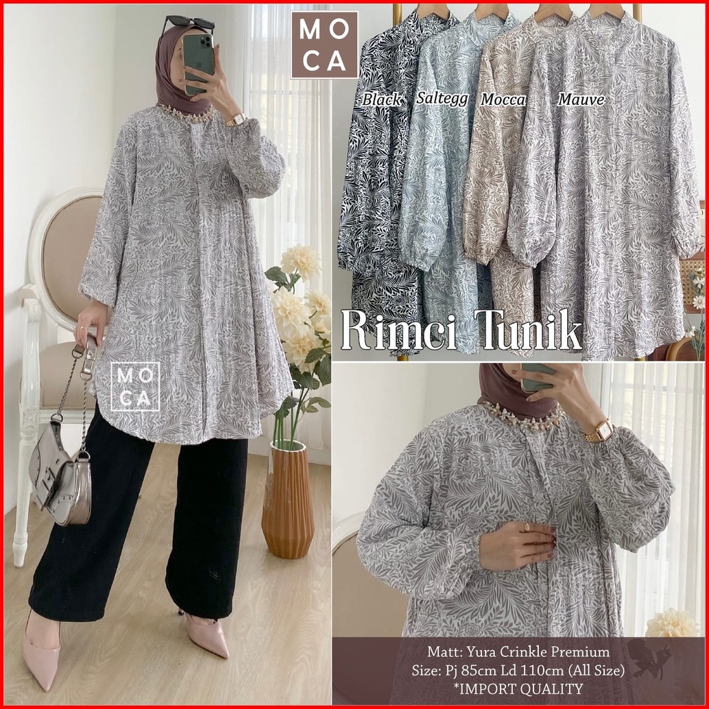 Rimci Tunik By Moca Ld 110 Allsize Tunik Motif Bahan Yura Crinkle Premium