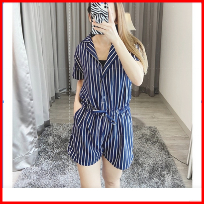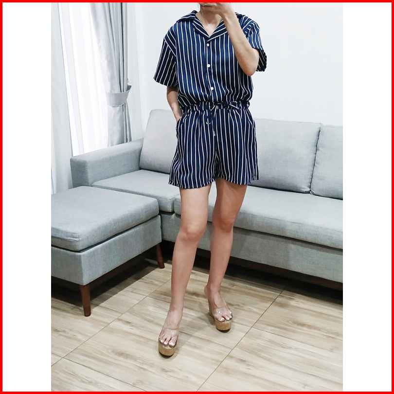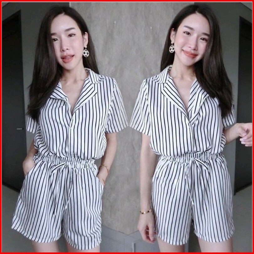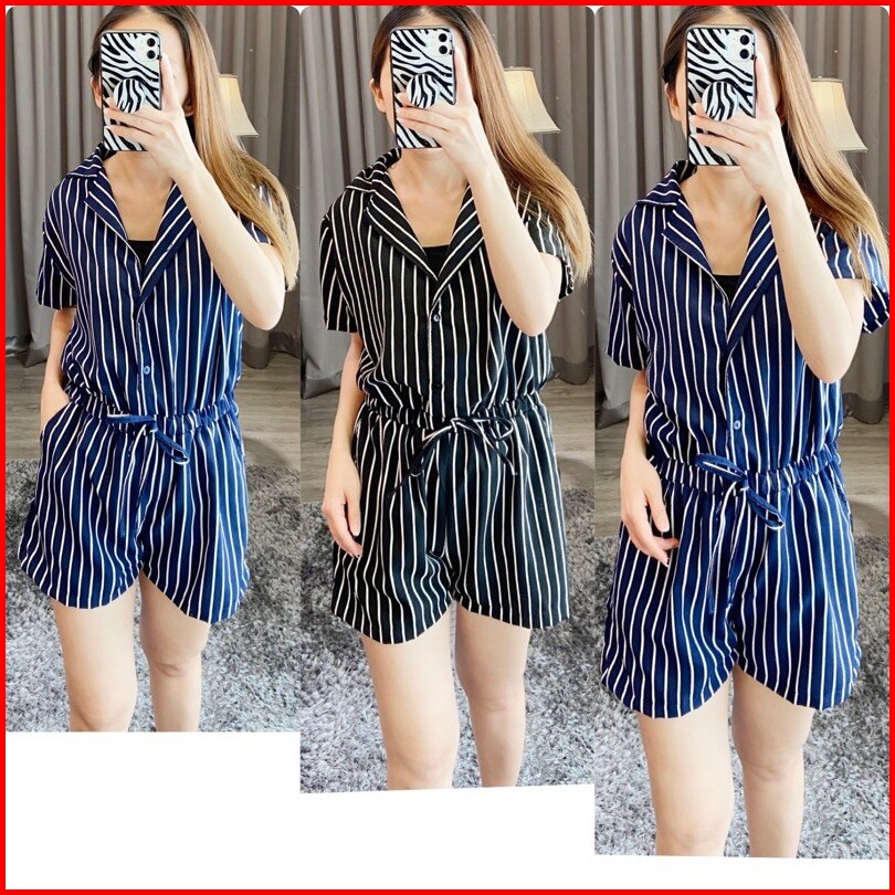 Real Pic Jumpsuit Pendek Wanita Jumpsuit Salur K1269