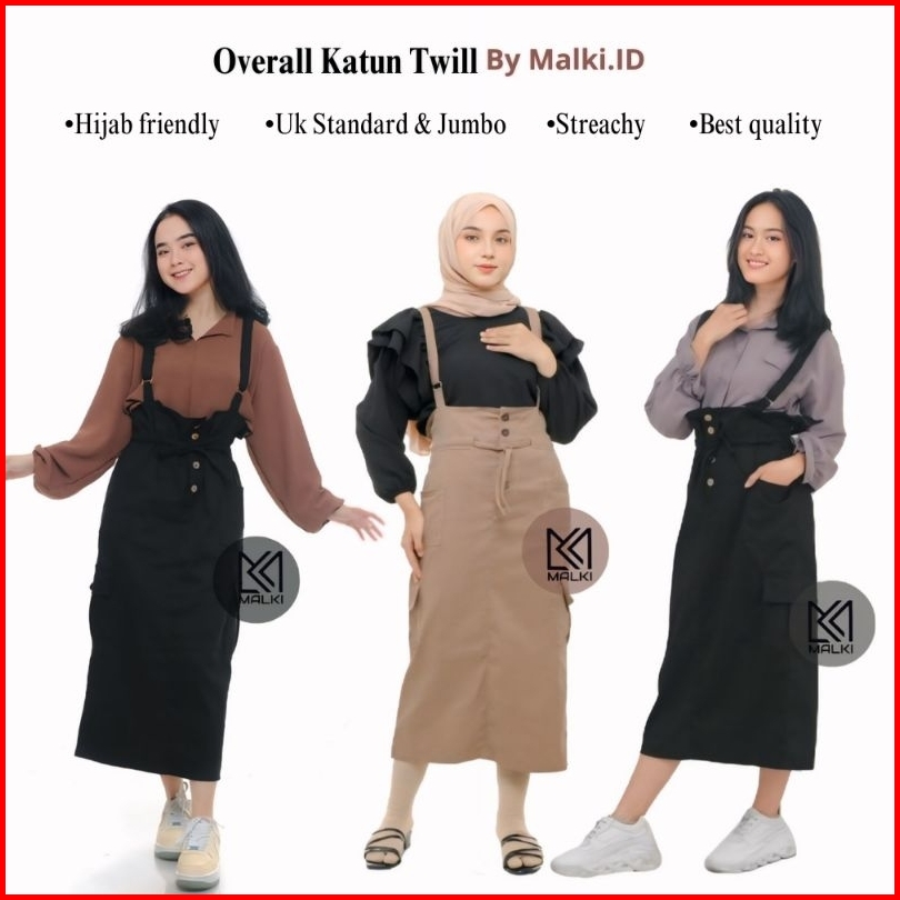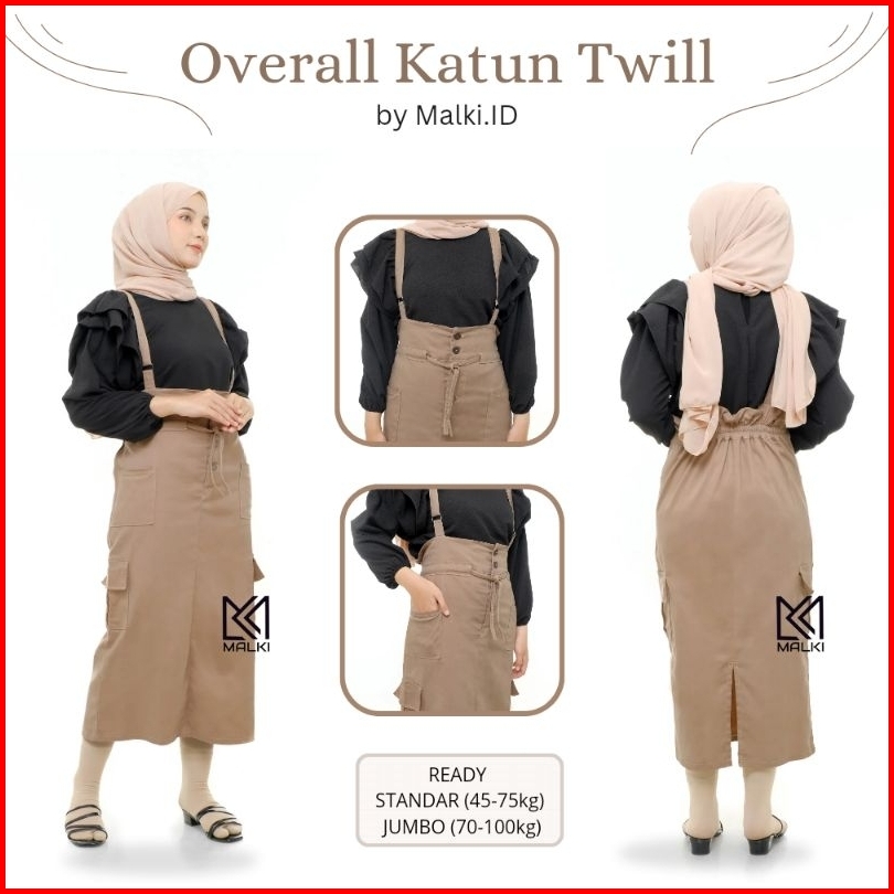 Overall Katun Twill Jumpsuit Premium Rok Cargo Stretch Standard Jumbo Up To Bb 120kg Baju Kodok Wanita Ready Terbaru Kek