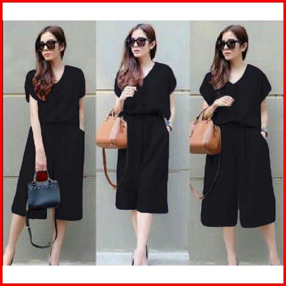 Qf- Jamsuit Ester Black Jamsuit Wanita Terbaru Korea Bangkok Ukuran M Dan L