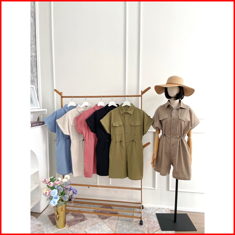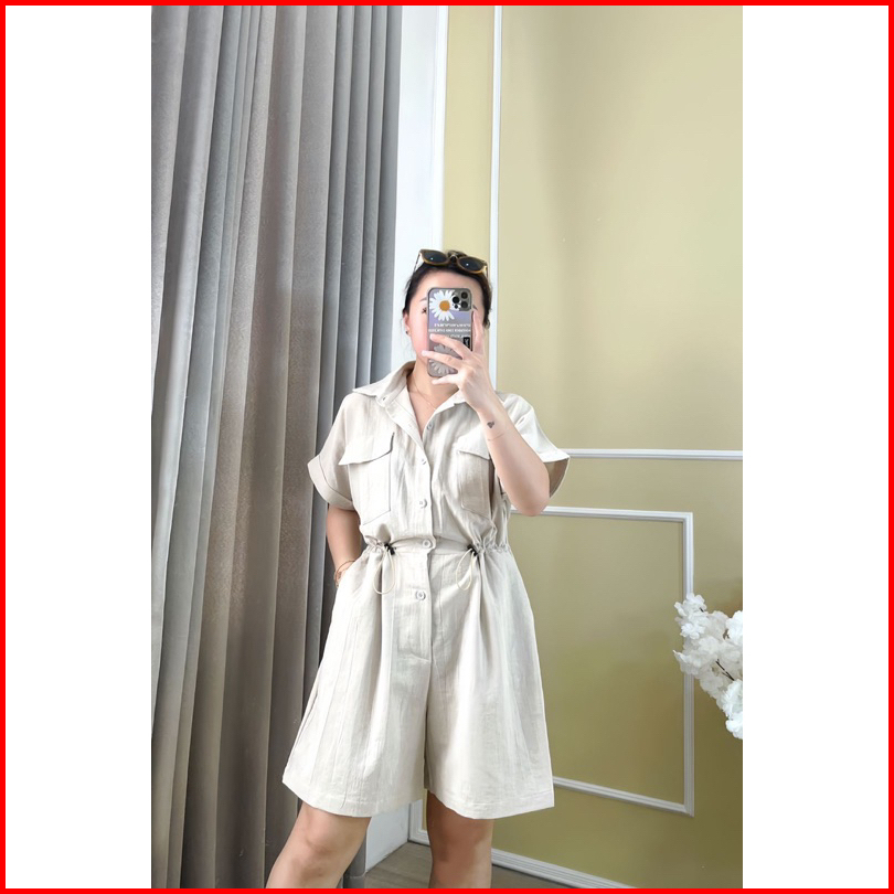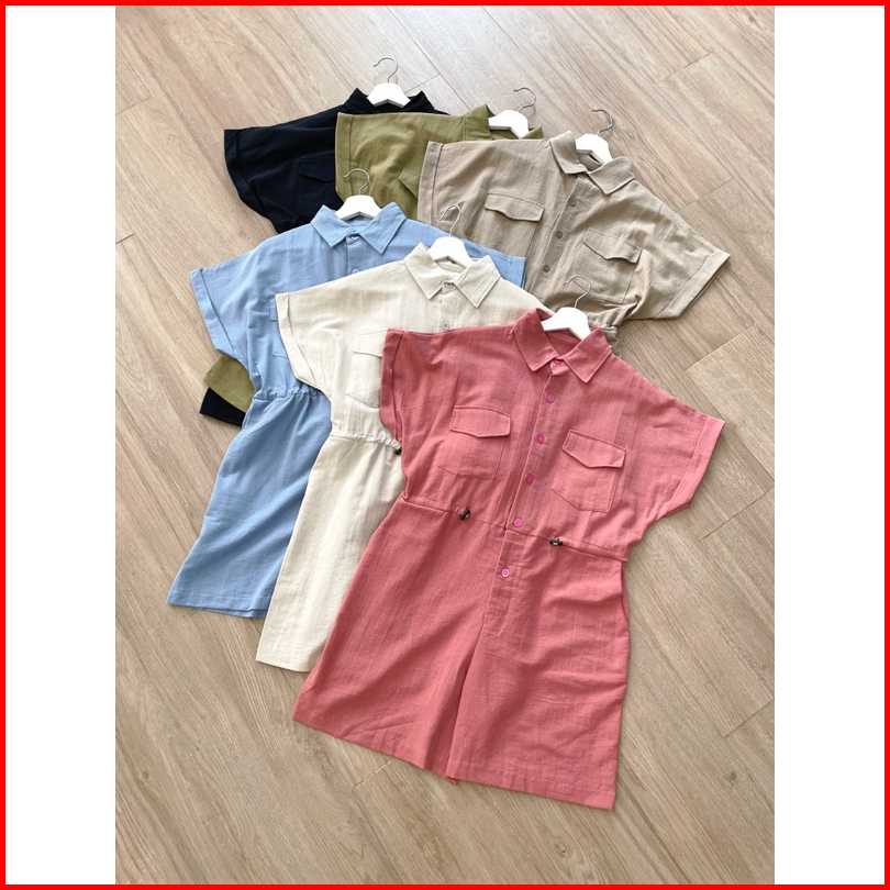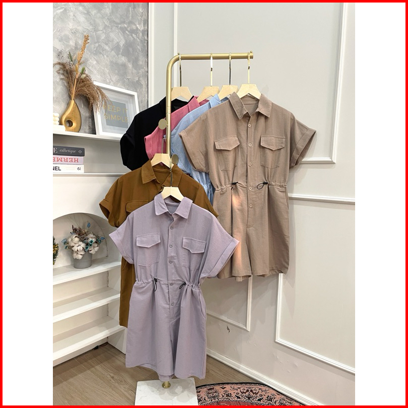 Terlaris Jumpsuit Linen Real Pict Ready Stock Code 2255 Adeline Cargo Short Jumpsuit Linen Kekinian