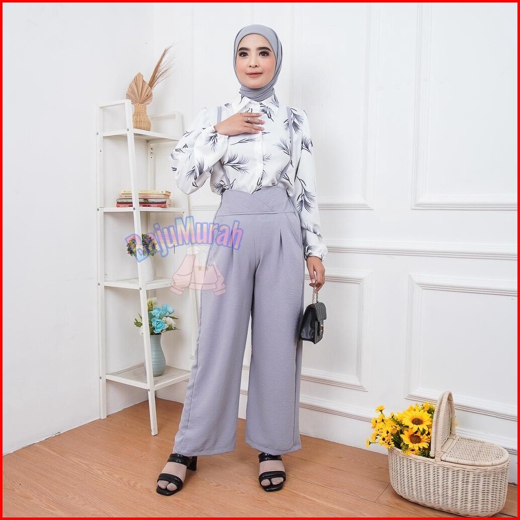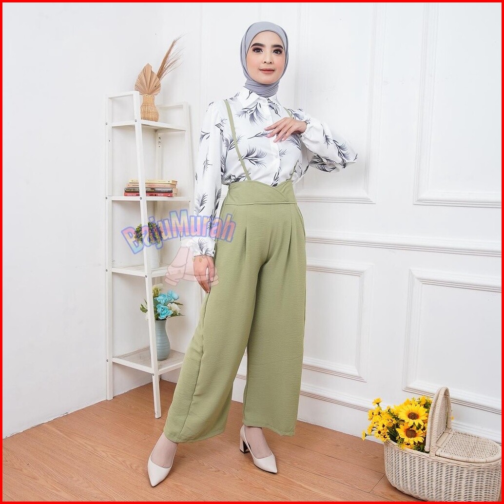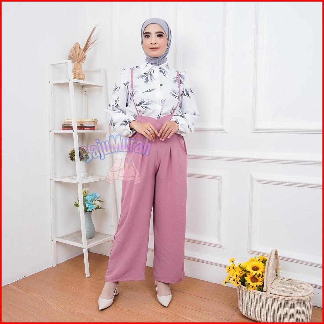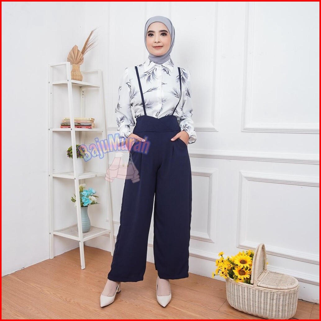 Najwa - Jumpsuit Overall Jolly Wanita Motif Hawai Cringkle