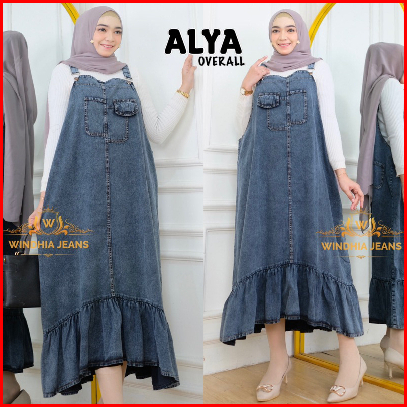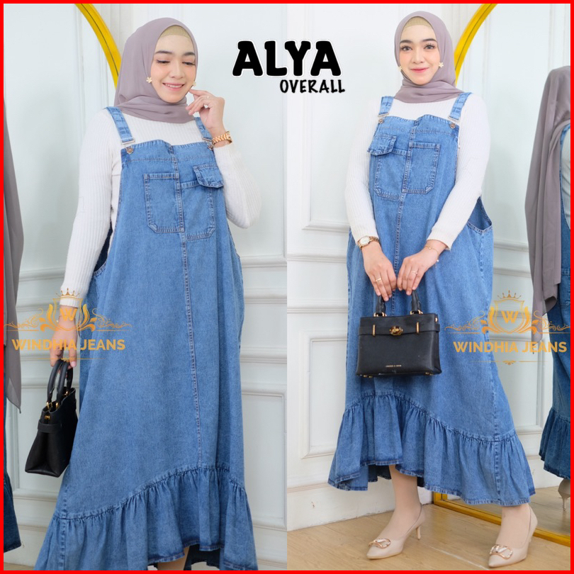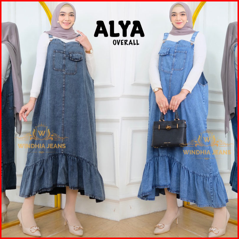 Alya Overall Jeans Jumbo Wanita Snow Blue Black