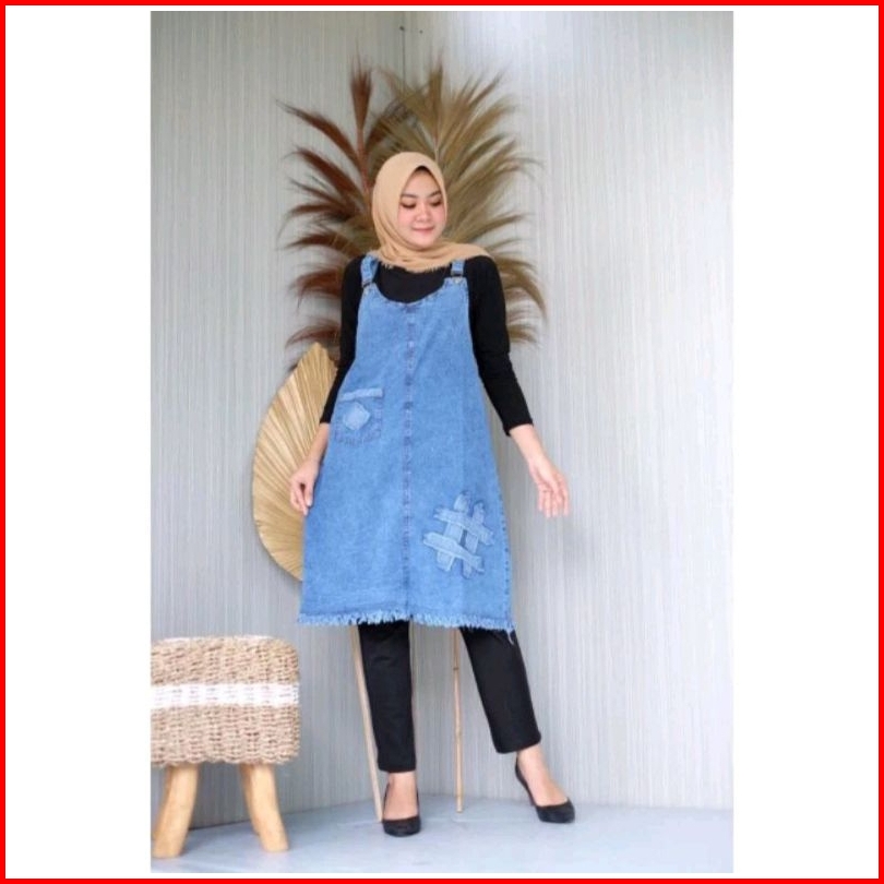 Overall Jeans Denim Pendek Overall Wanita Atasan Wanita Oversize Kekinian Tanpa Inner