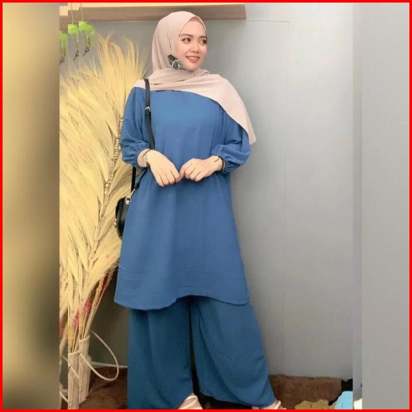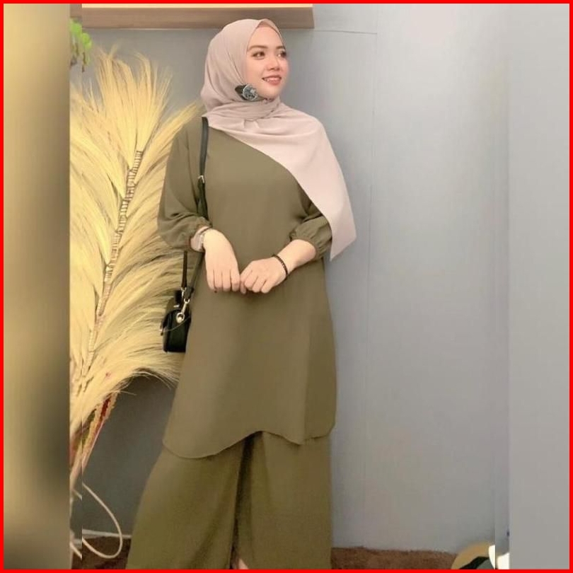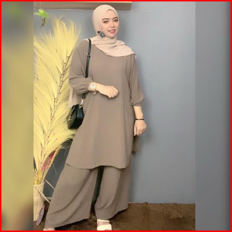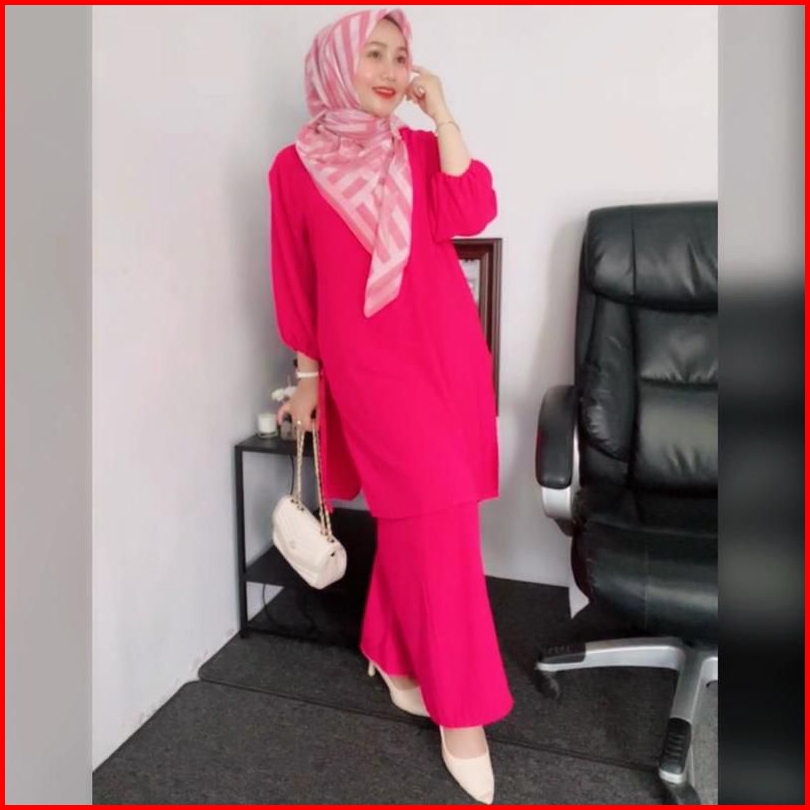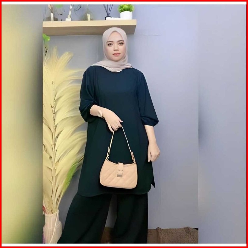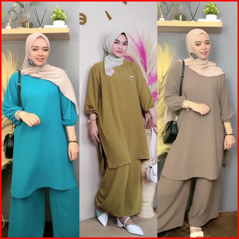 Setelan Tunik Melayu Wanita Bahan Cringkle Airflow