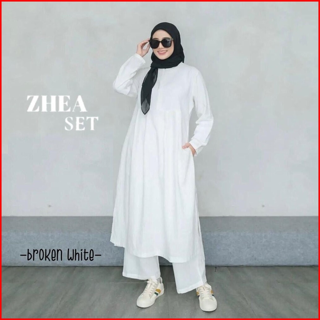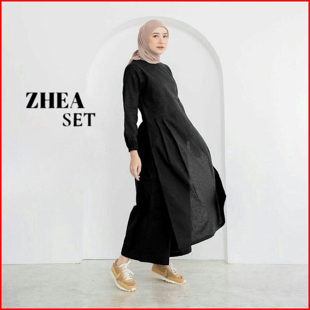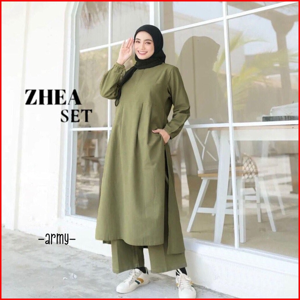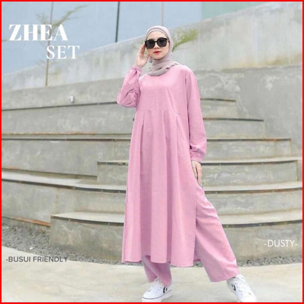 Terbaru Zhea Stelan Long Tunik Size M L Xl Xxl Jumbo Celana Bahan Katun Linen Fashion Muslim Long Set Wanita
