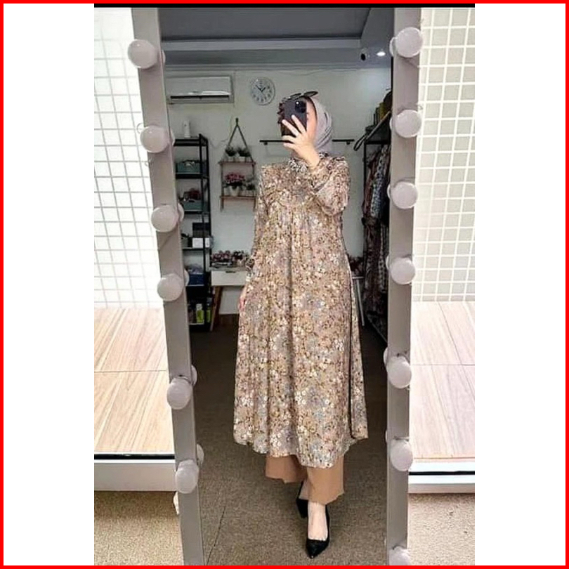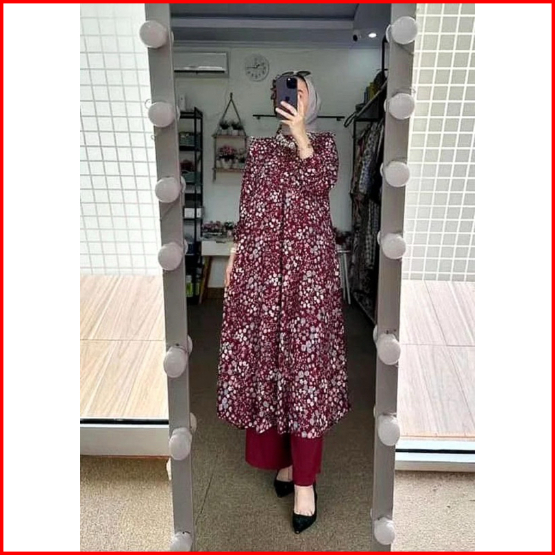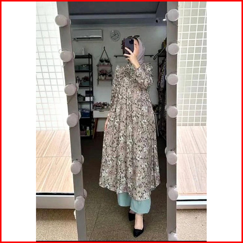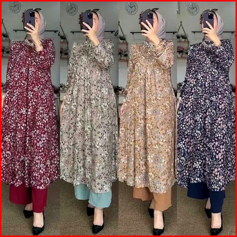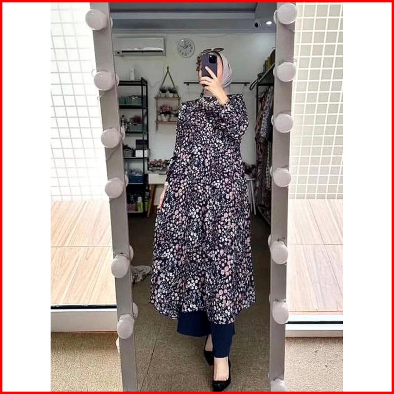 Setelan Tunik Rayon Diamond Mix Celana Crinkle Lidya Set Tunik Rayon Busui