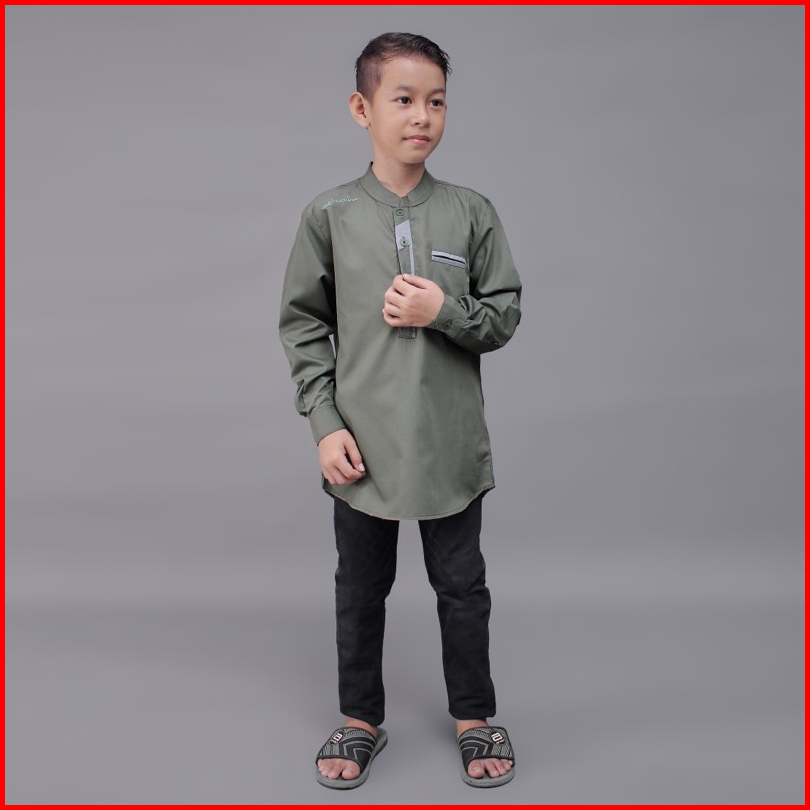 Bajukoko Anak Lengan Panjang Original Elrumi Usia 2-12 Tahun Warna Sage