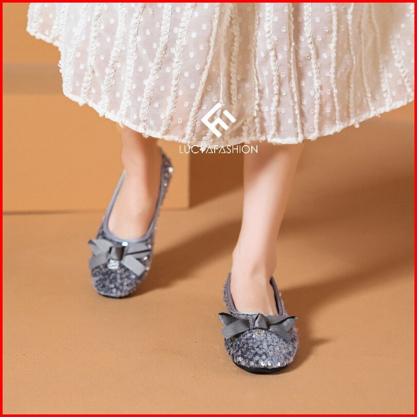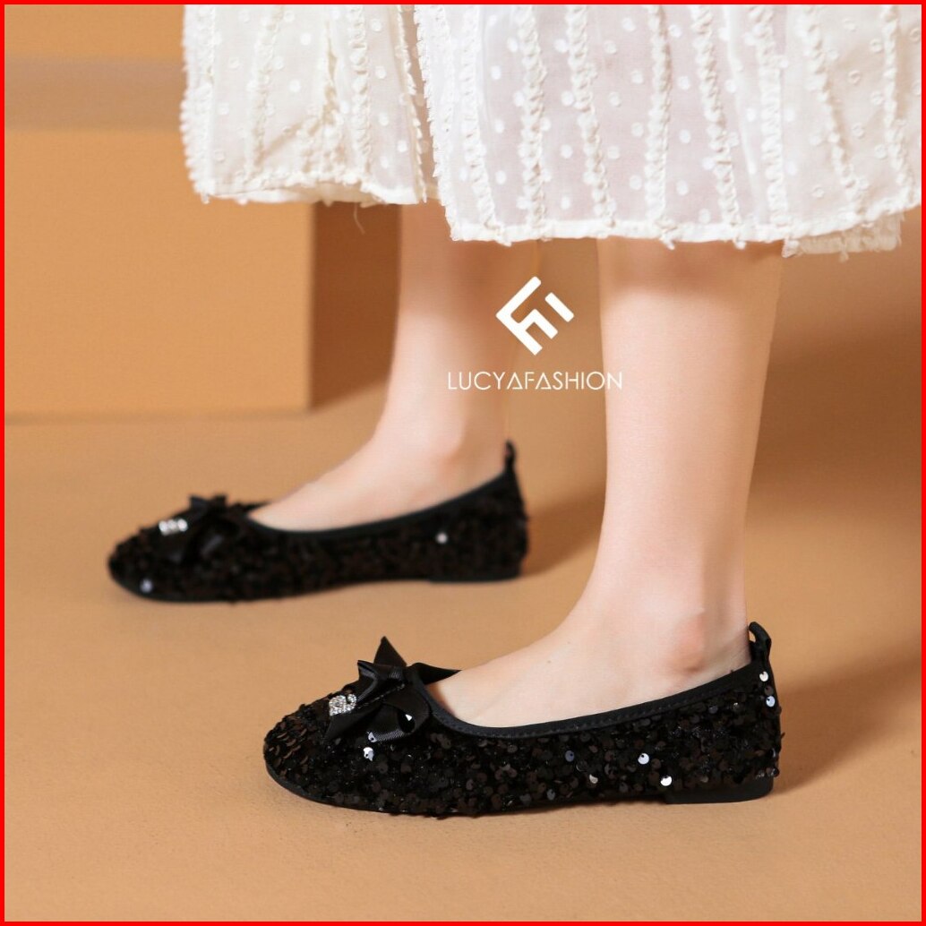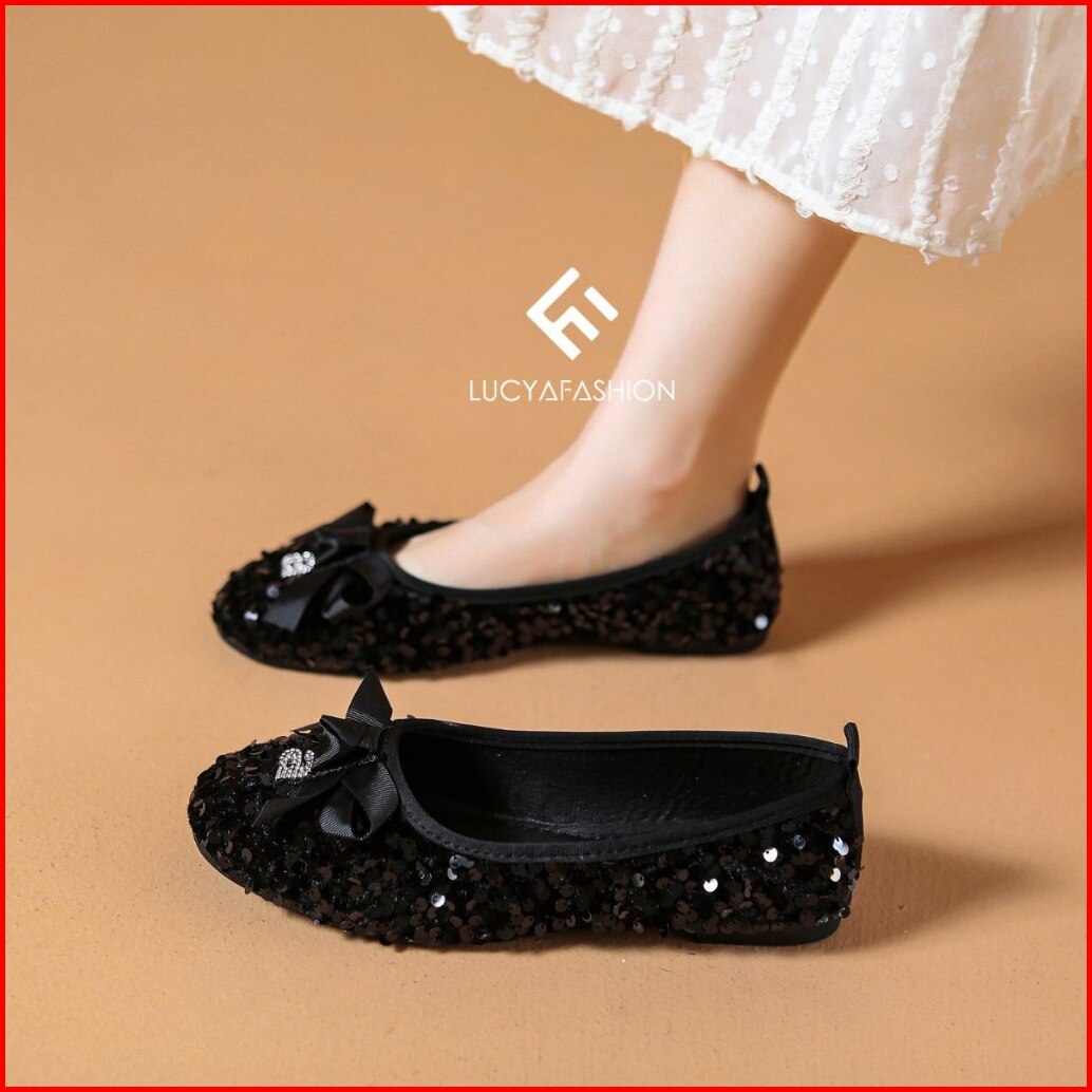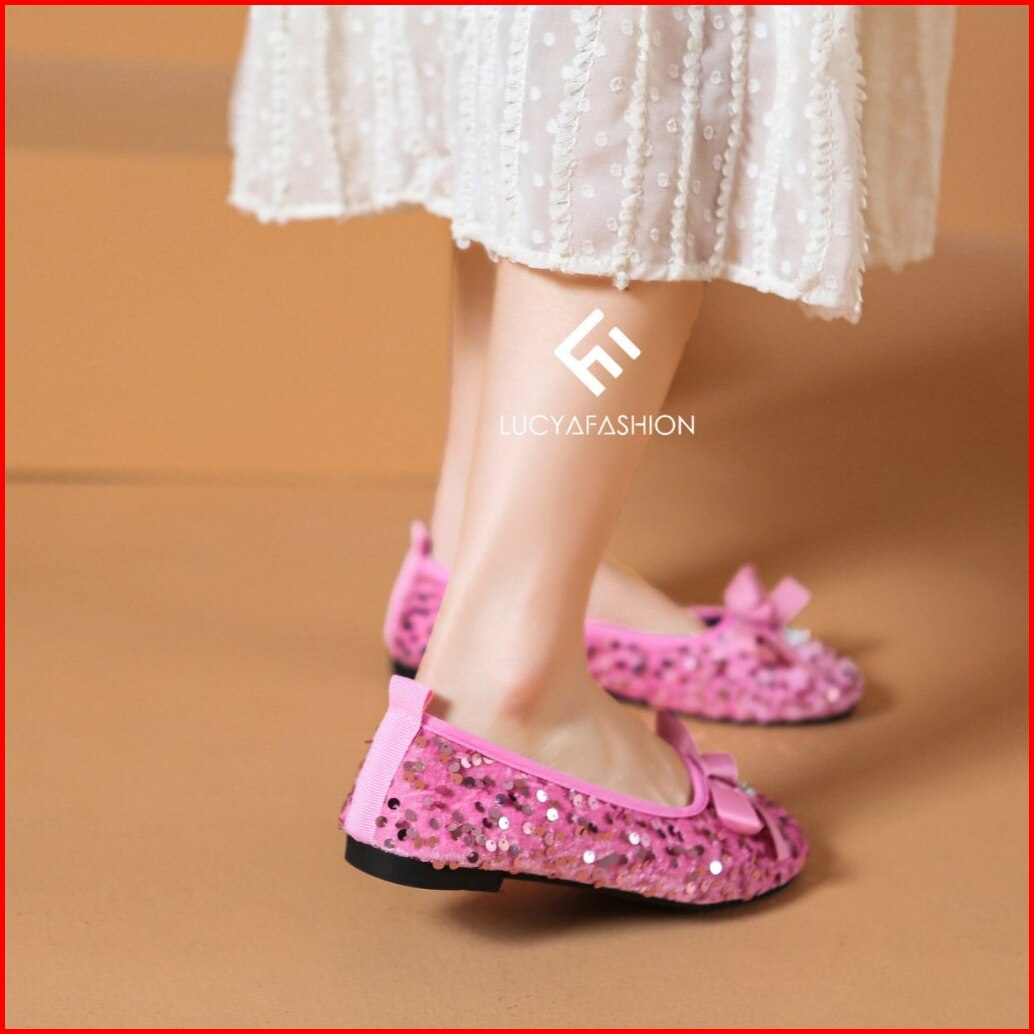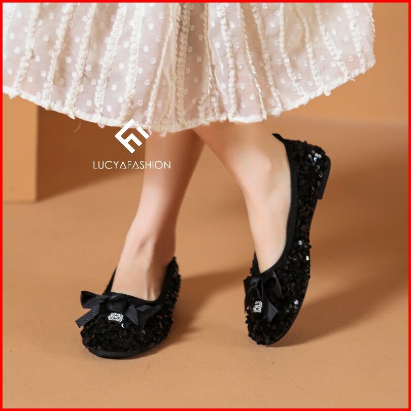 9060 Sepatu Flat Pita Wanita Slip On Bahan Sequin Terbaru