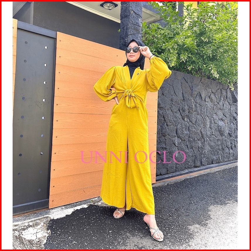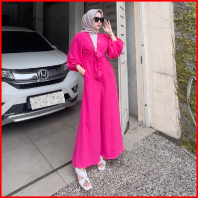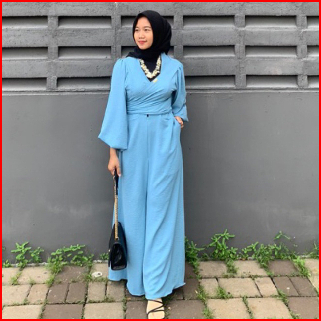 M L Xl Jumpsuit Crinkle Airflow Premium Lengan Balon One Set Crinkle Terbaru Jumpsuit Crinkle Kekinian Fashion Muslim