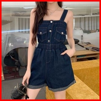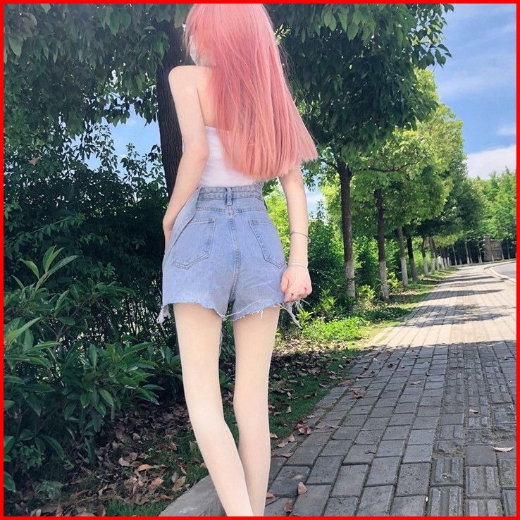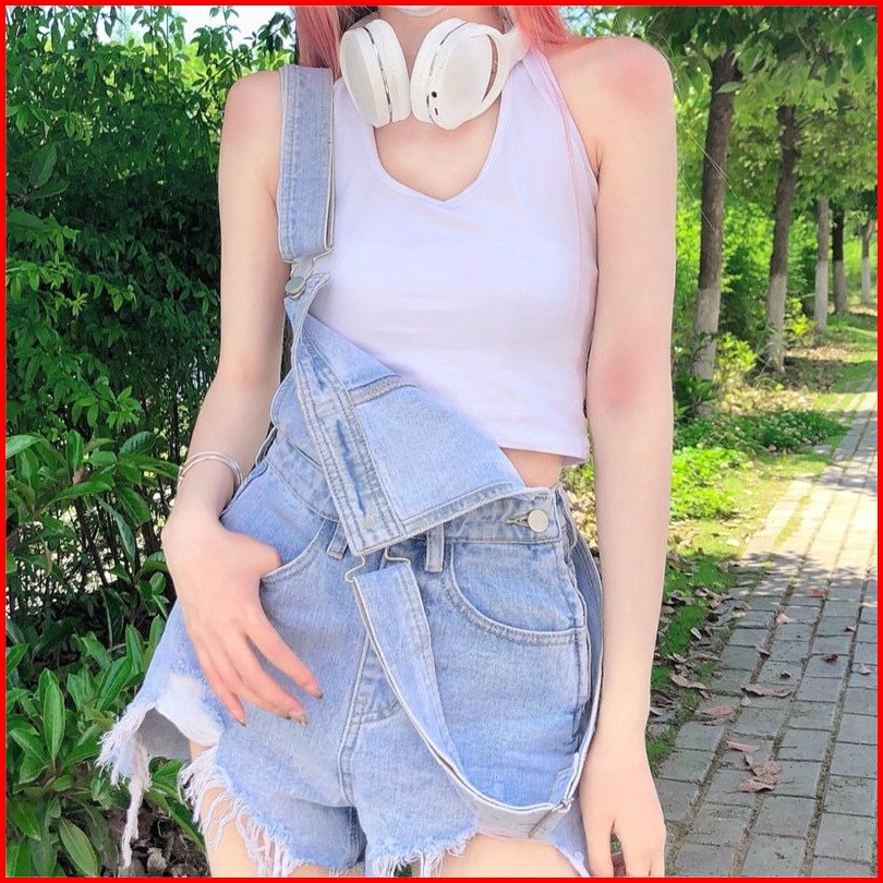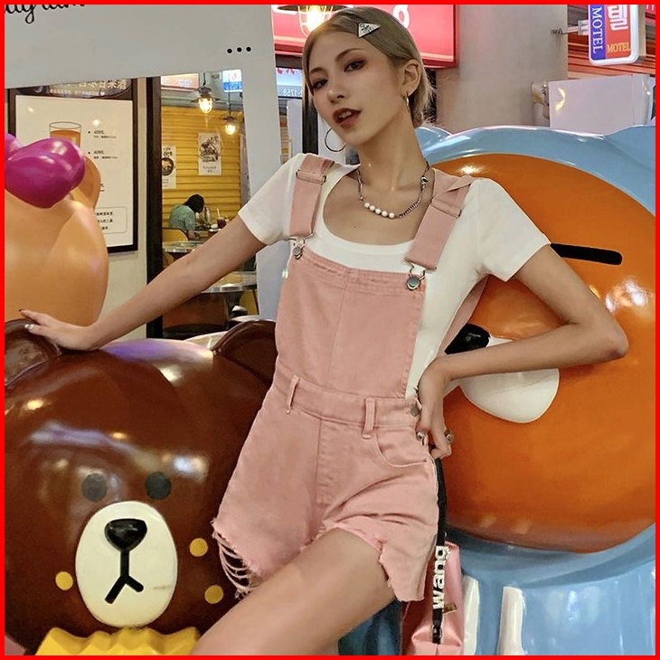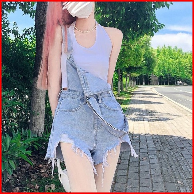 Celana Pendek Dungaree Wanita Gaya Korea Dengan Pinggiran Berbulu Gaya Baru Impor Canggih Denim