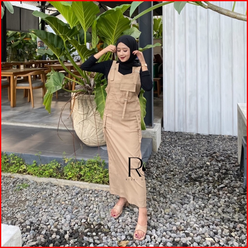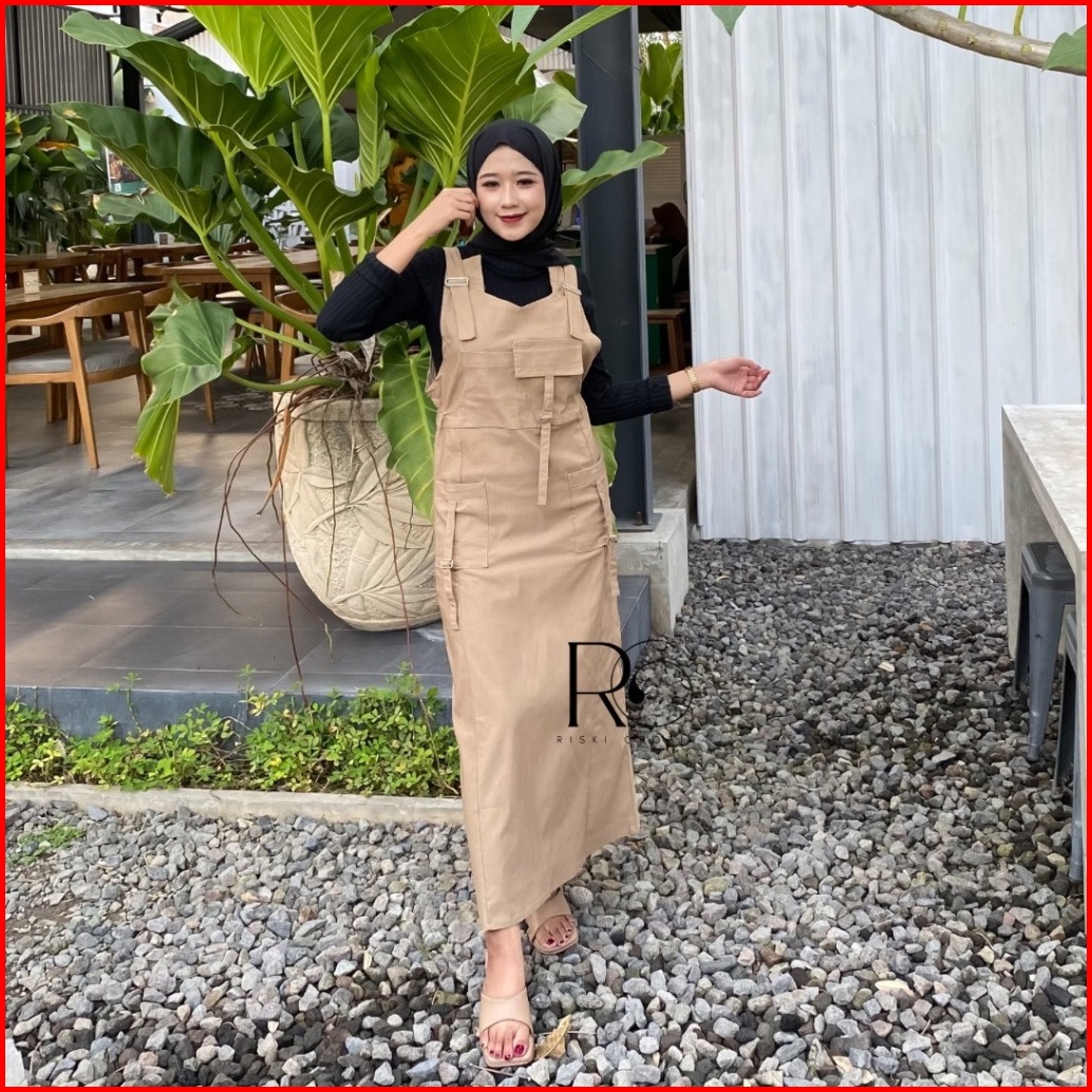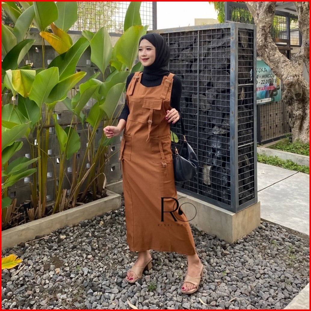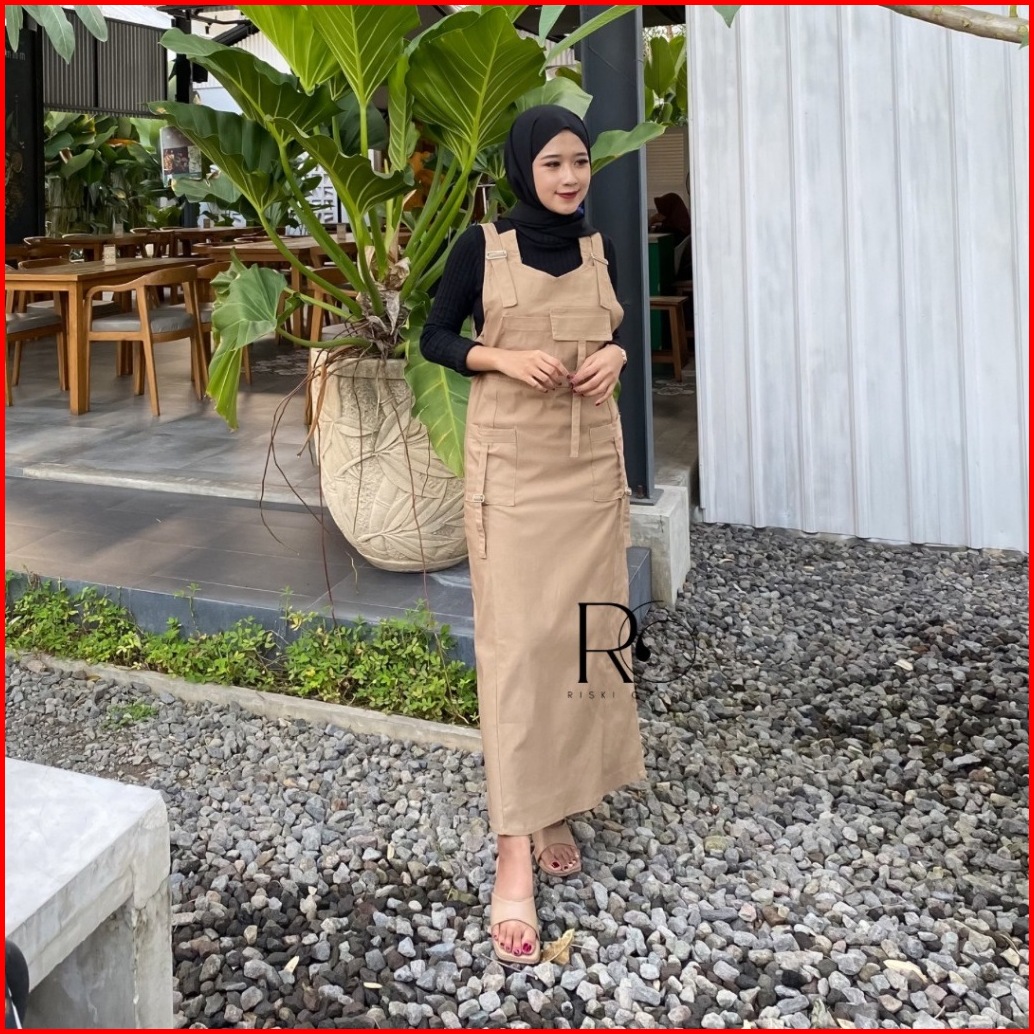 Jessy Overall Rok Cargo Wanita Katun Premium Jumpsuit Rok Casual Overall Rok Trendi Panjang Katun