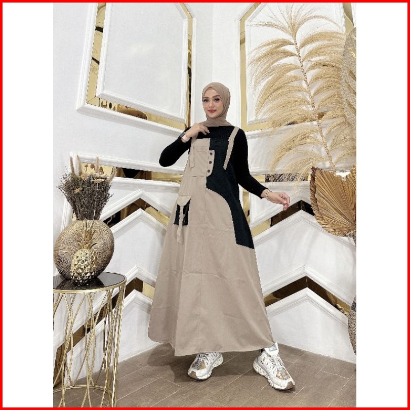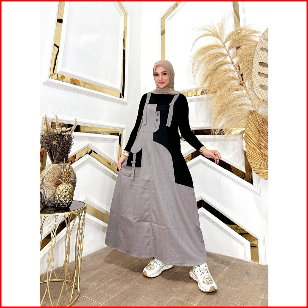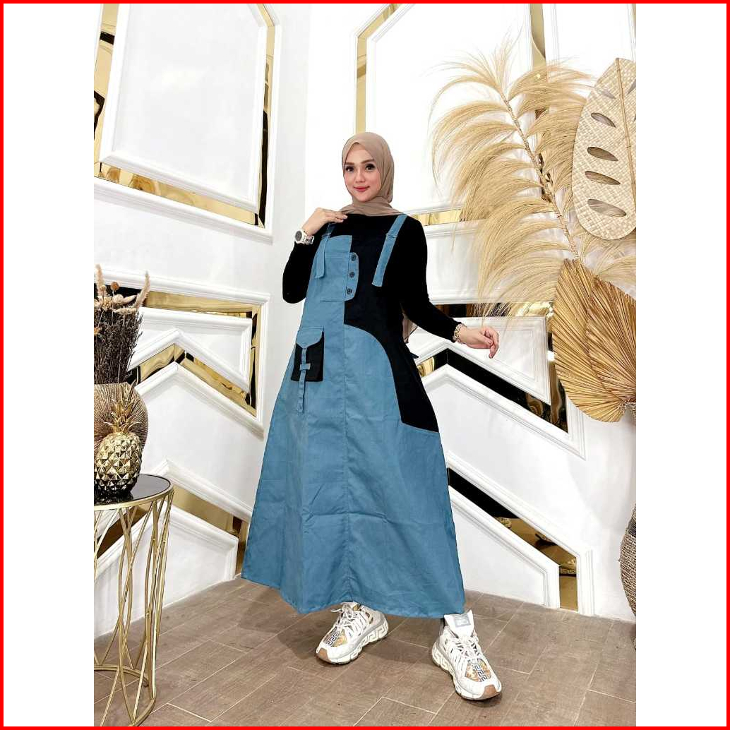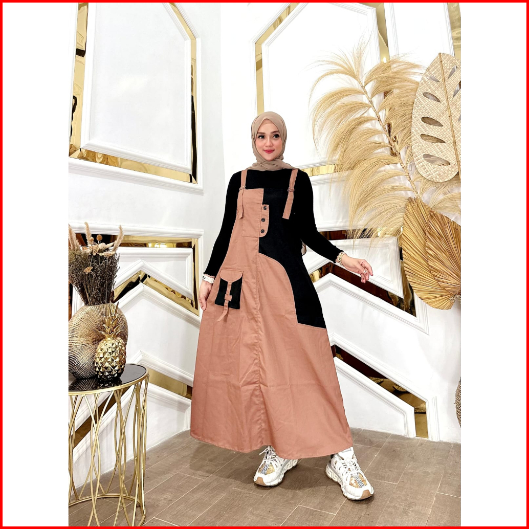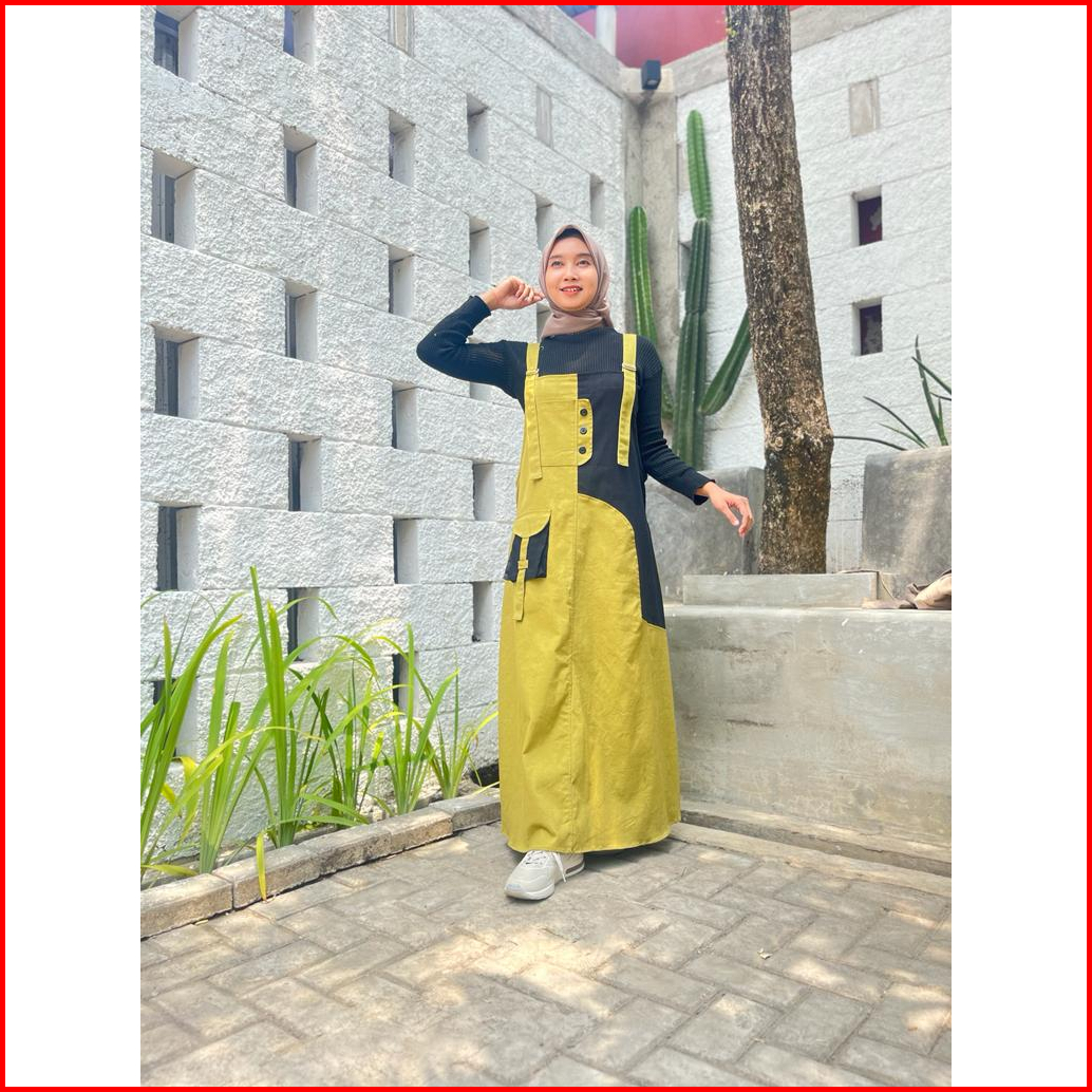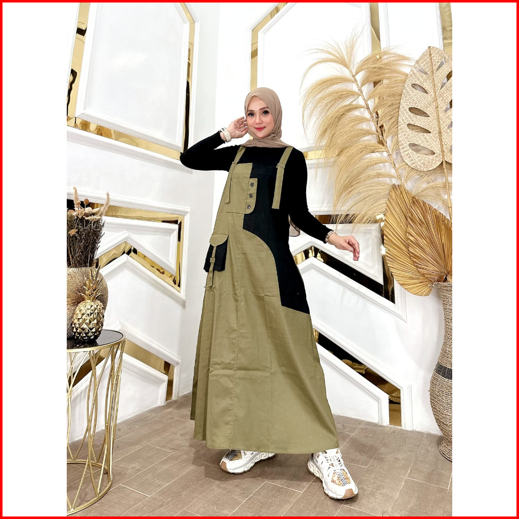 Jinny Overall Cargo Jumpsuit Wanita Terbaru Bahan Katun Import Panjang Maxi Dress Muslim Kekinian