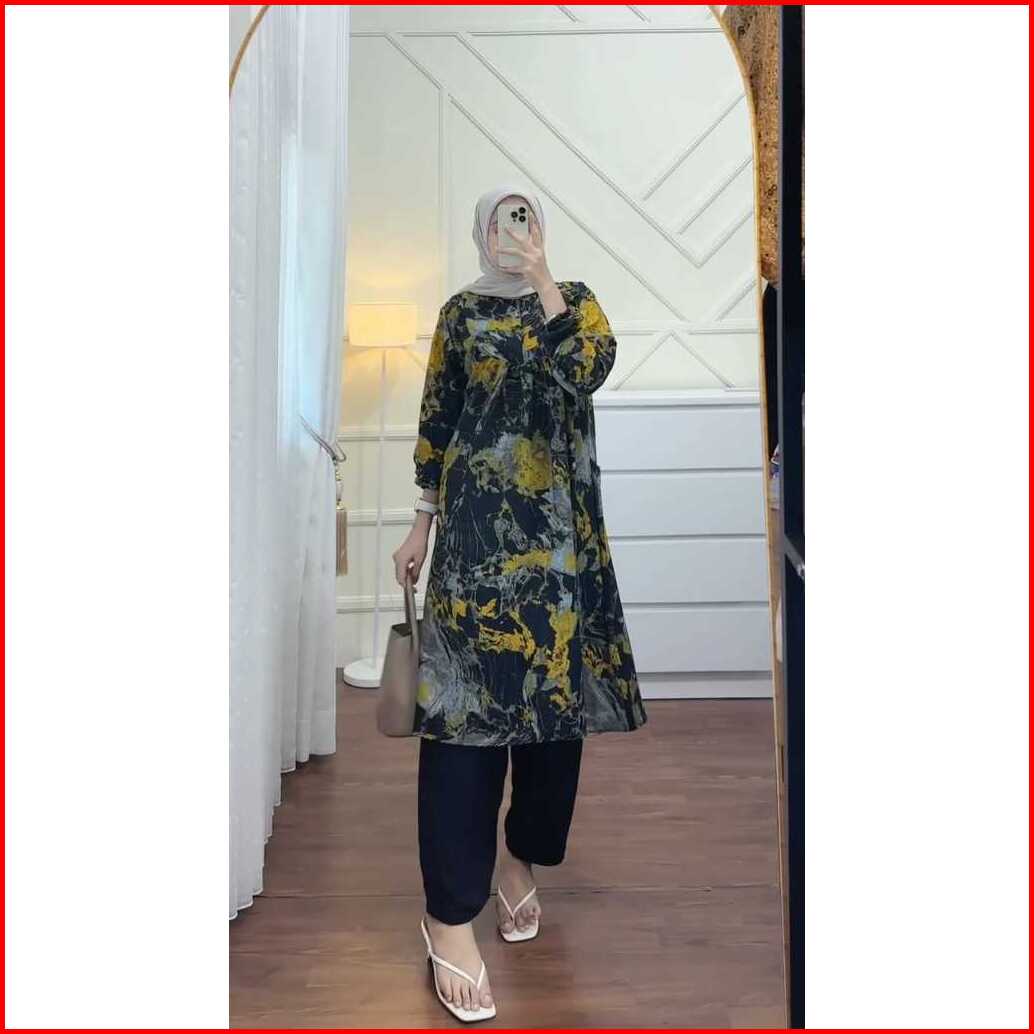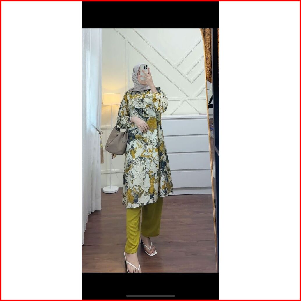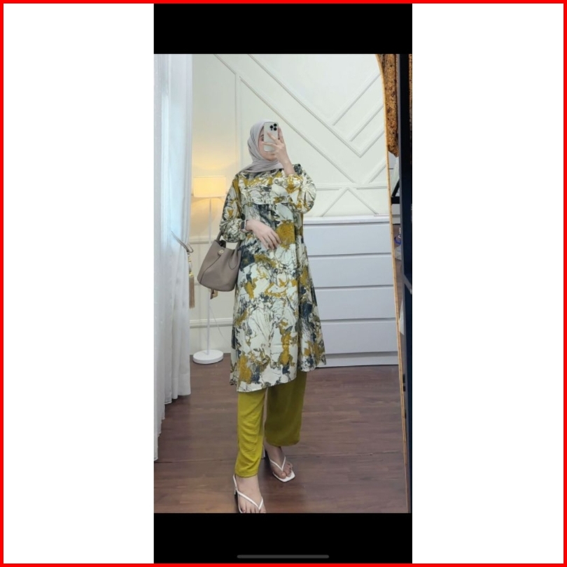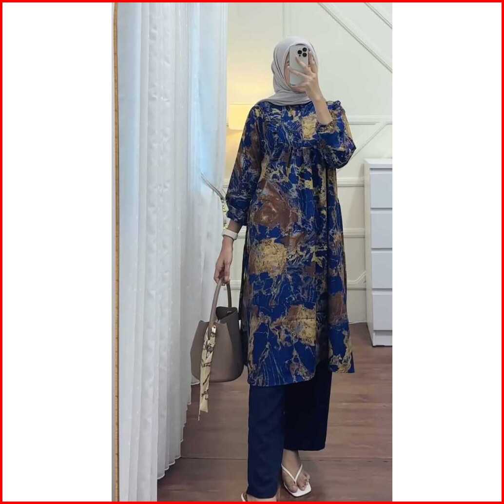 Setelan Celana One Set Wanita Muslim Nadhira Long Tunic Terbaru Dress Shakila
