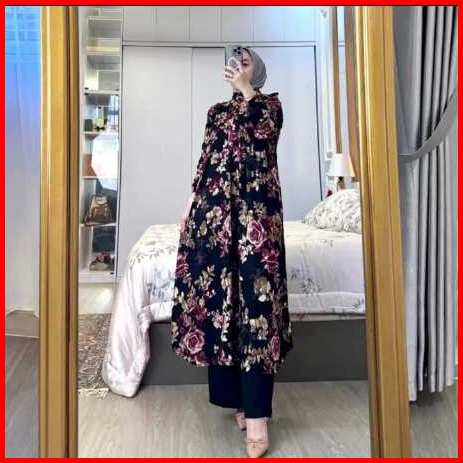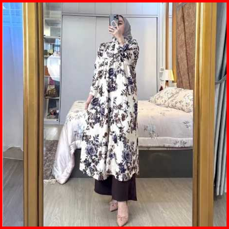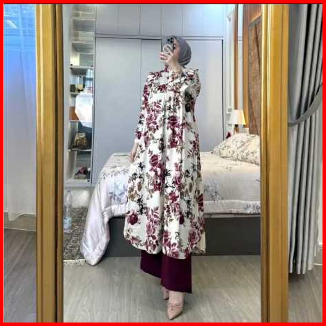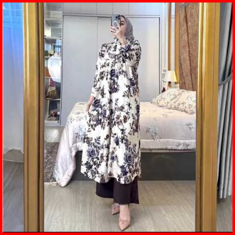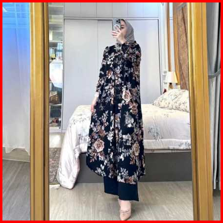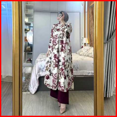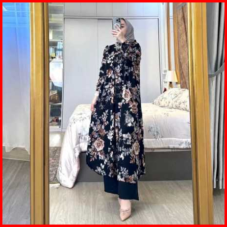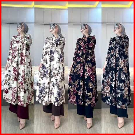 Amel - Setelan Milea Oneset Long Tunik Rayon Diamond Celana Cringkle Premium Busui Freindly Jumbo