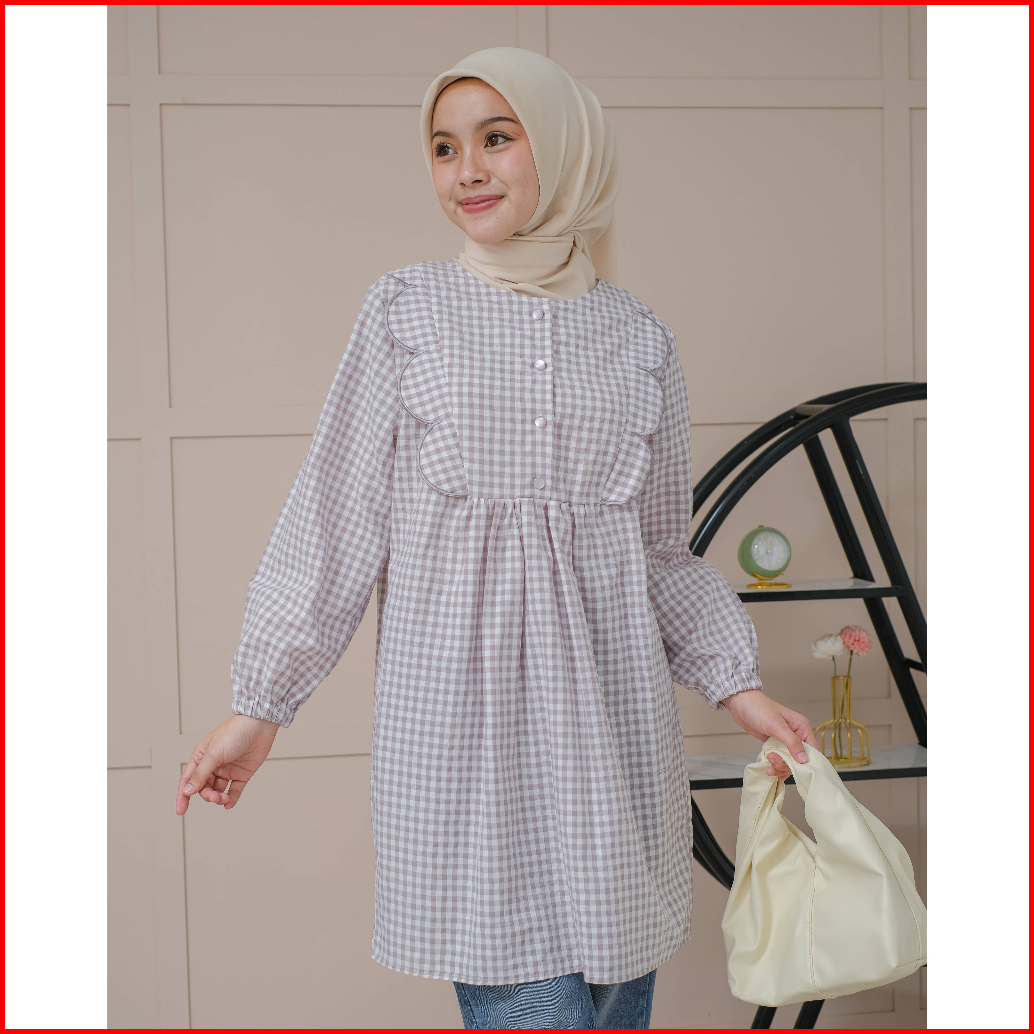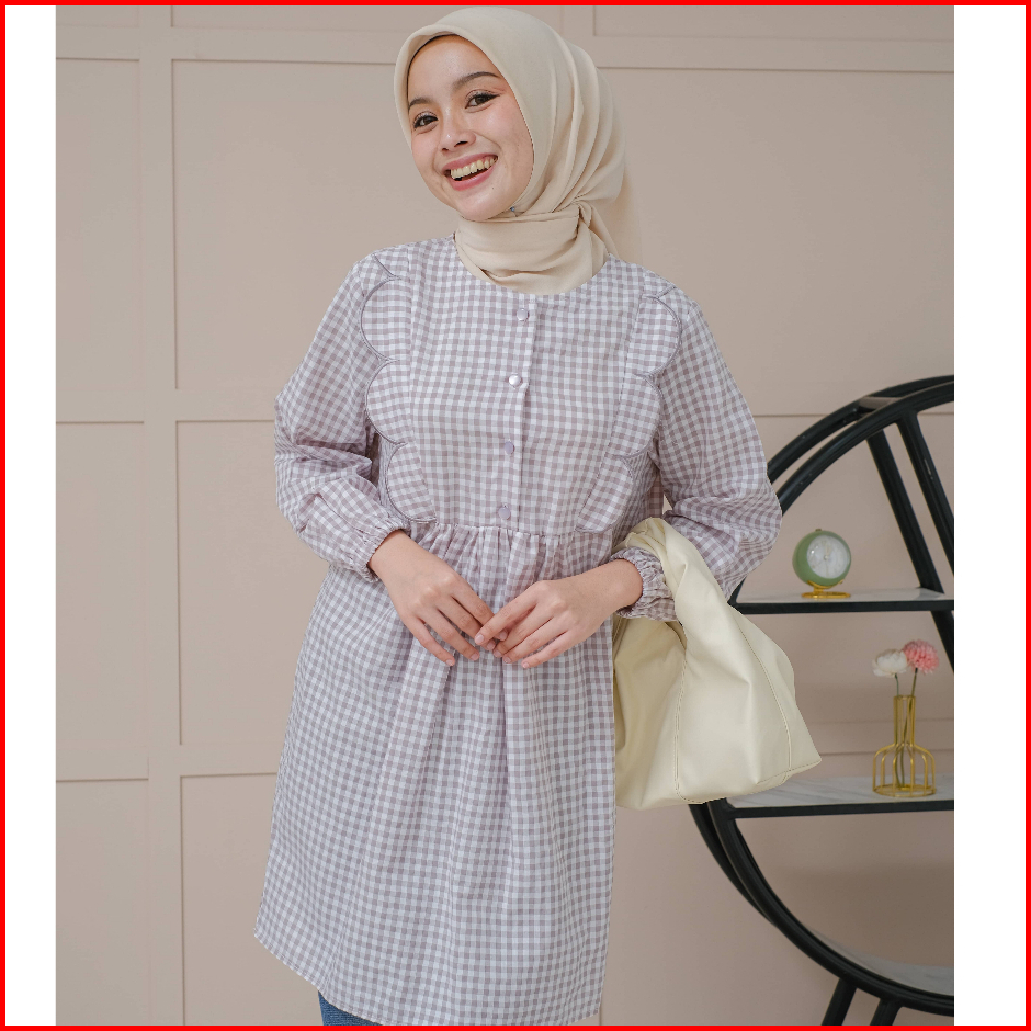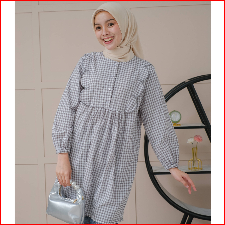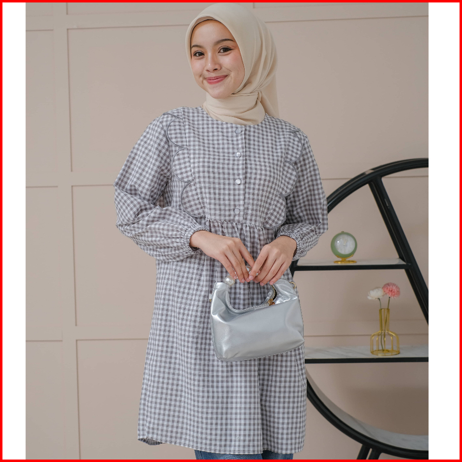 Mayoutfit Nayyara Tunic Atasan Tunic Gingham Lengan Karet