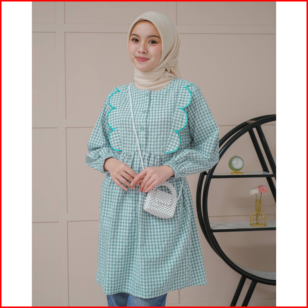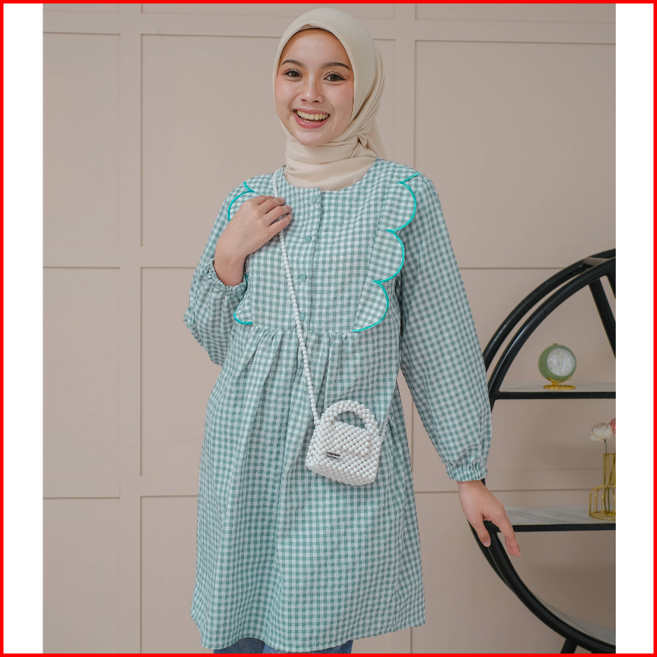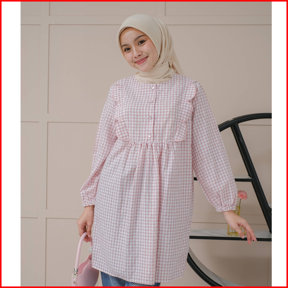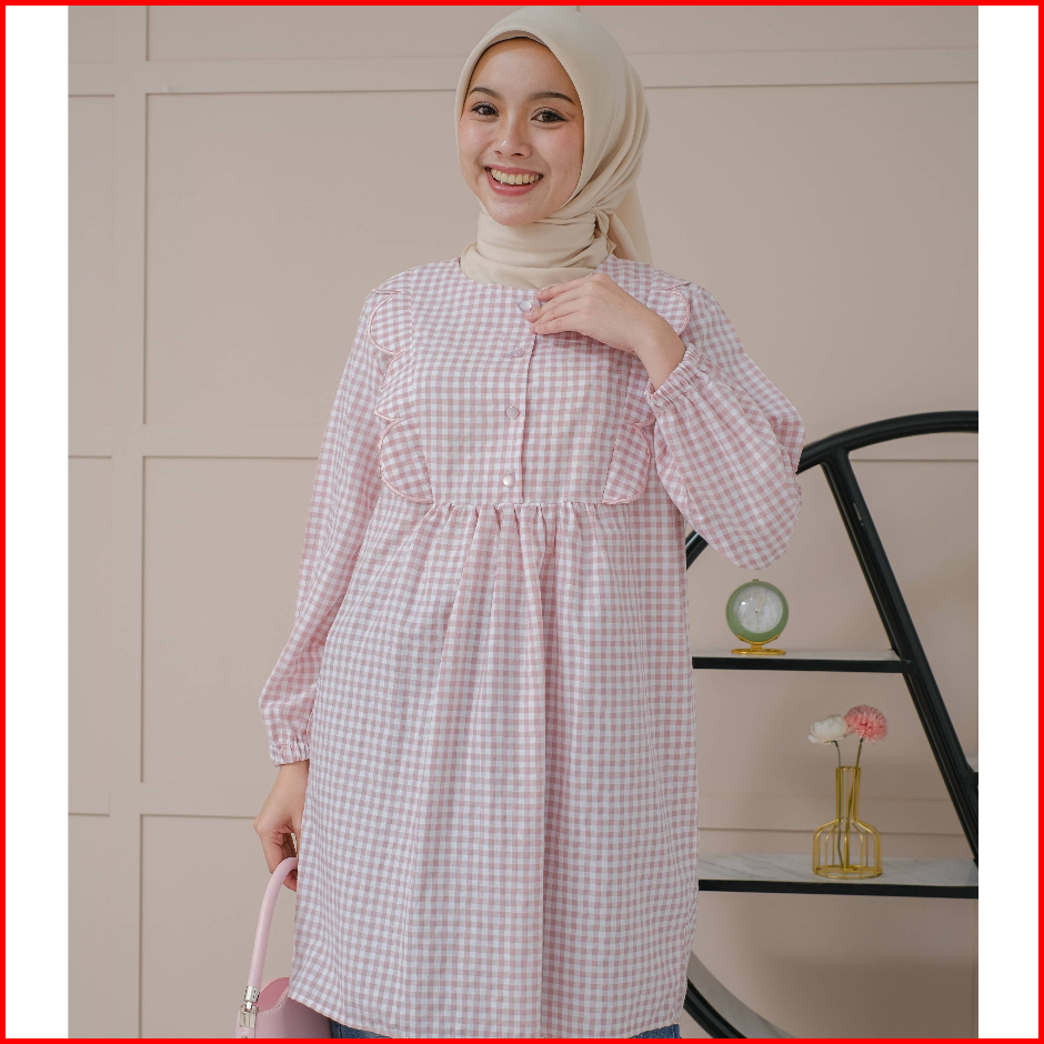 Mayoutfit Nayyara Tunic Atasan Tunic Gingham Lengan Karet