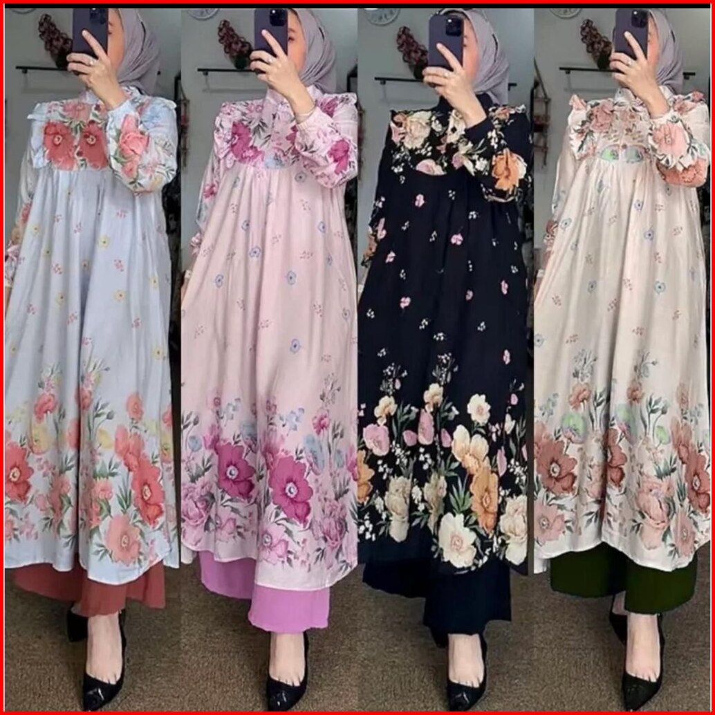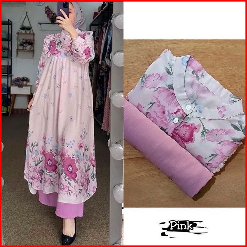 One Set Setelan Tunik Celana Setelan Wanita Camelia Baju Wanita Atas Bawah Terbaru
