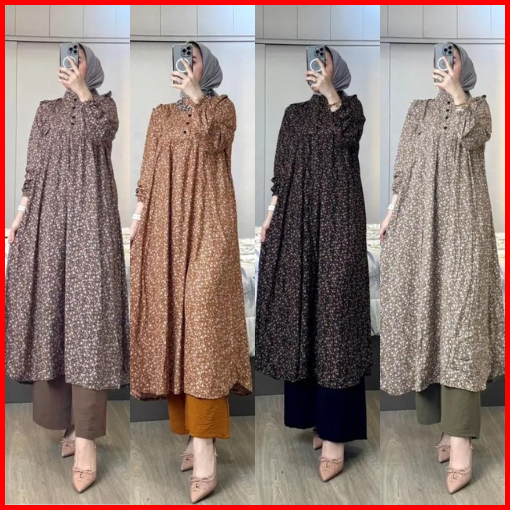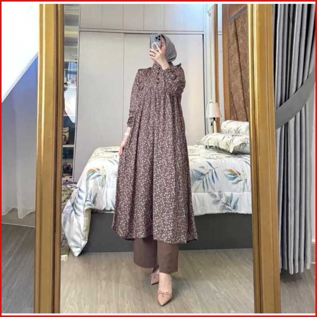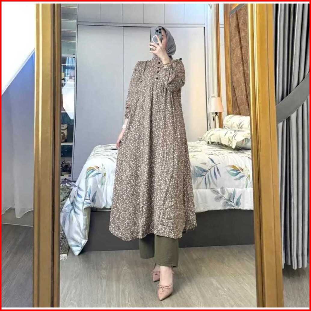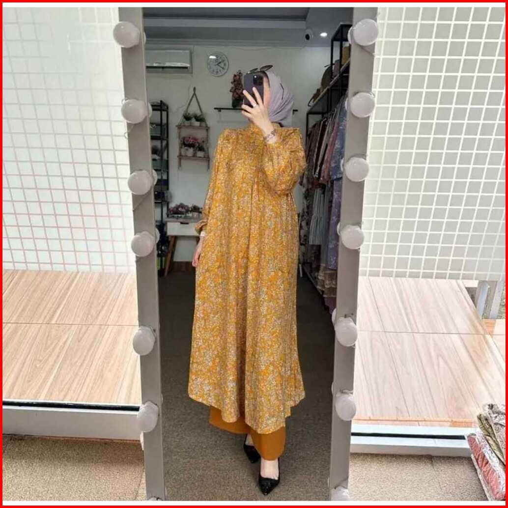Amel - Setelan Sakura Oneset Long Tunik Rayon Diamond Celana Cringkle Premium Busui Freindly Jumbo