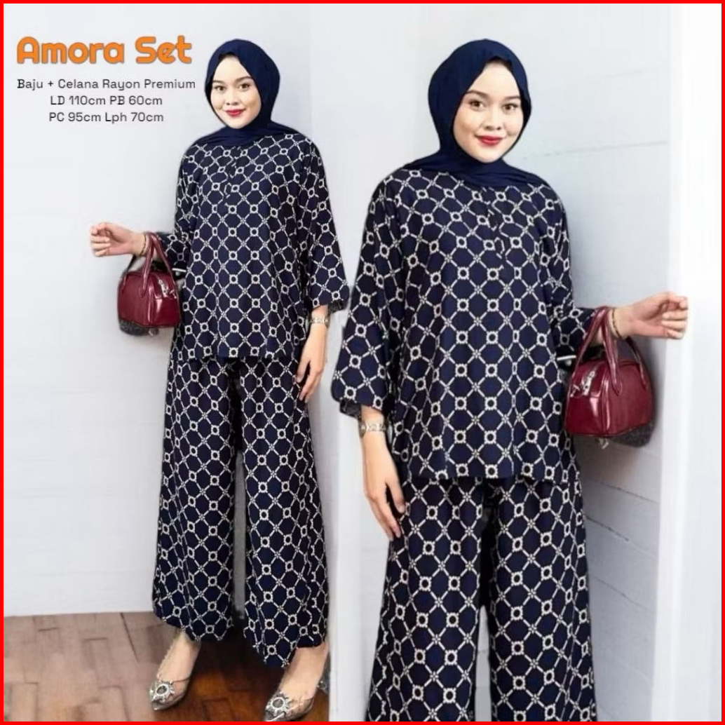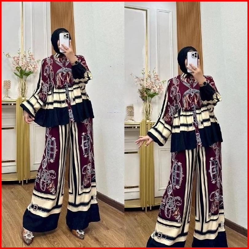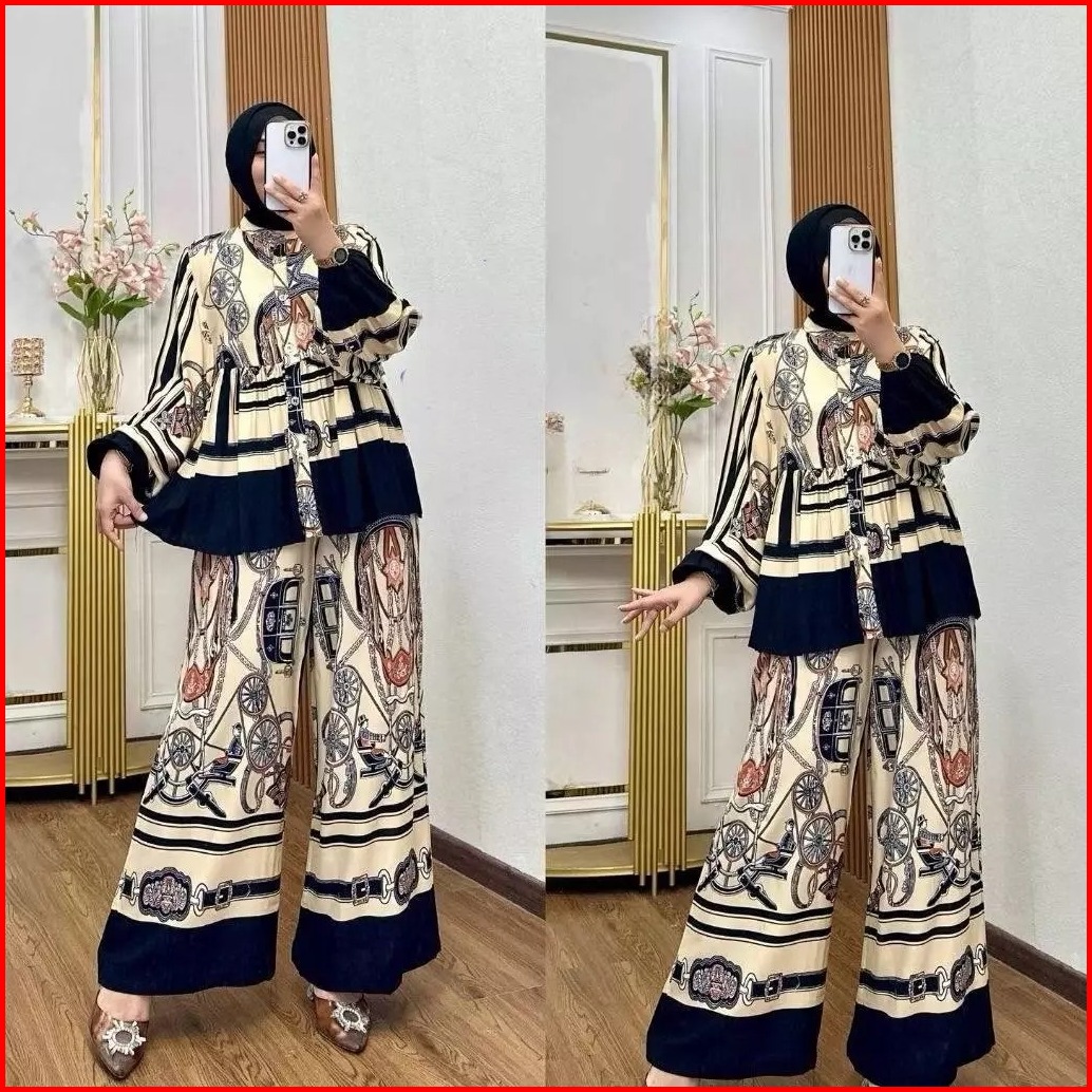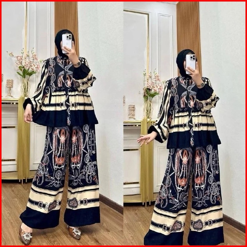 Set Rayon Adem Busui Model Delman Susun Setelan Wanita Kekinian