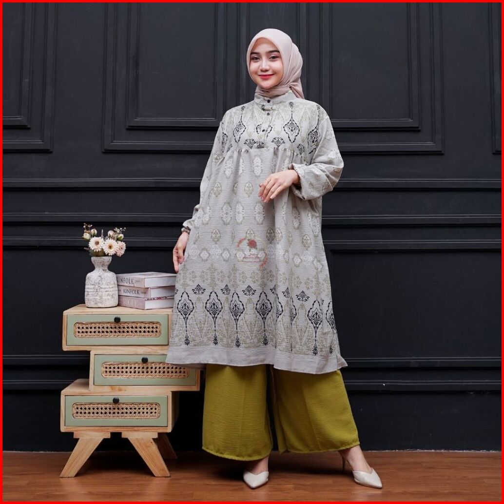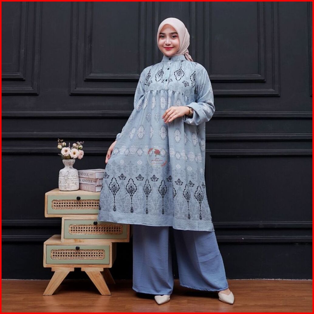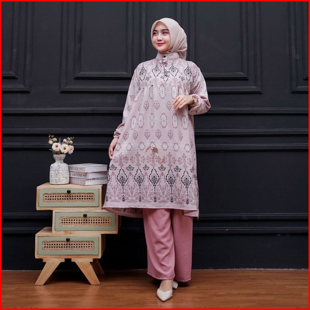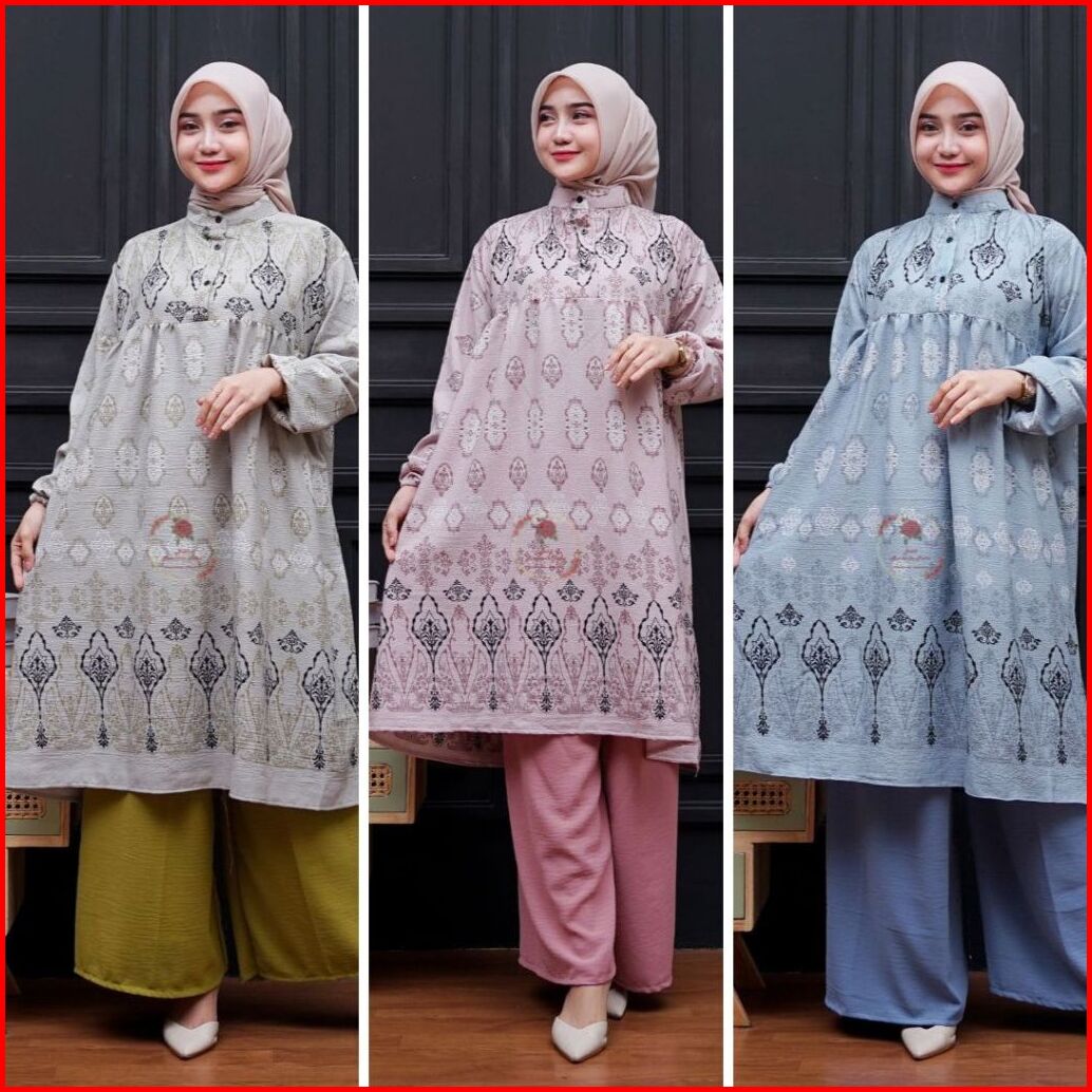 Setelan Tunik Kekinian Ld 110-115 Cm Bahan Crinkle Airflow Premium