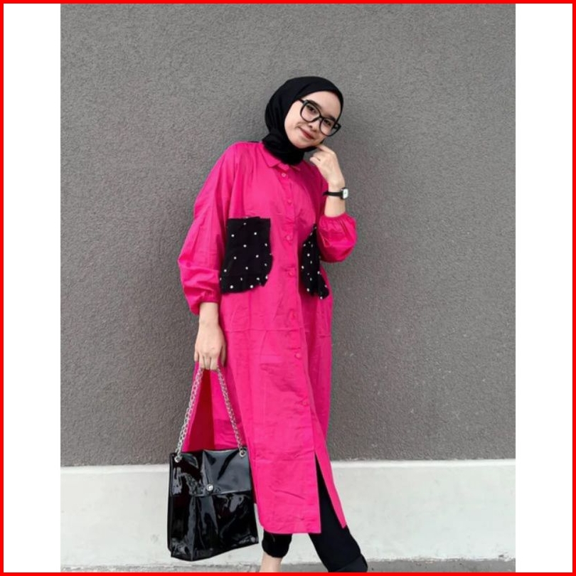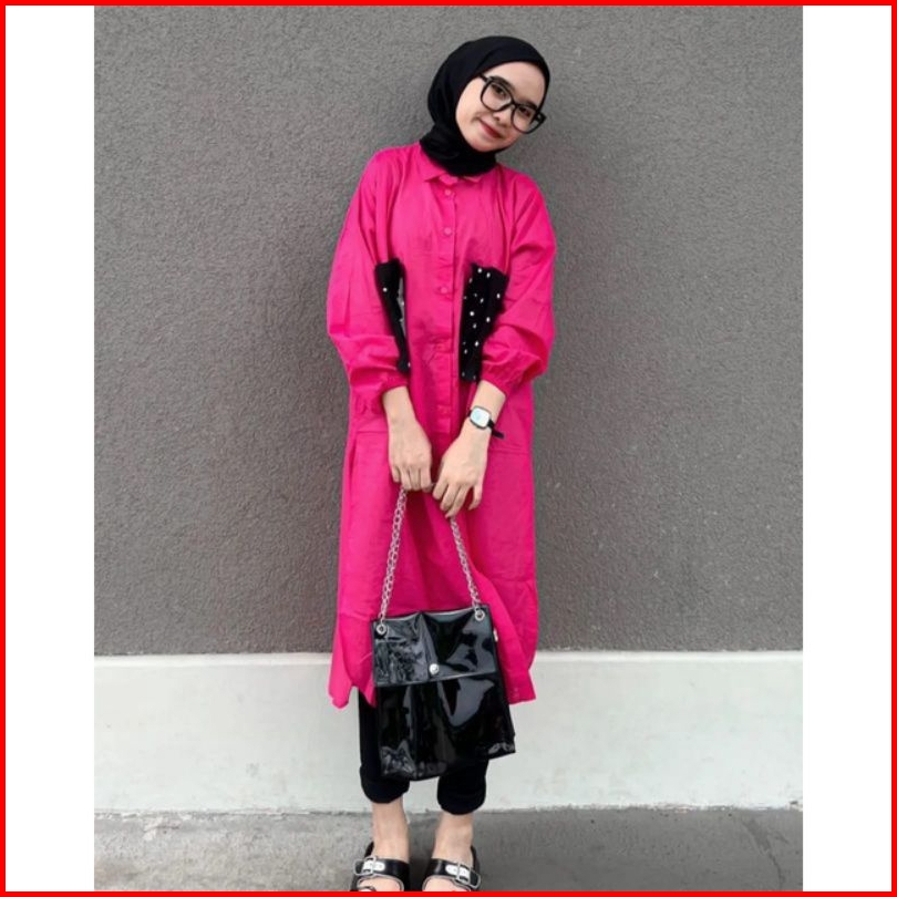 Polka Tunik Pocket Katun Import Lembut Allsize