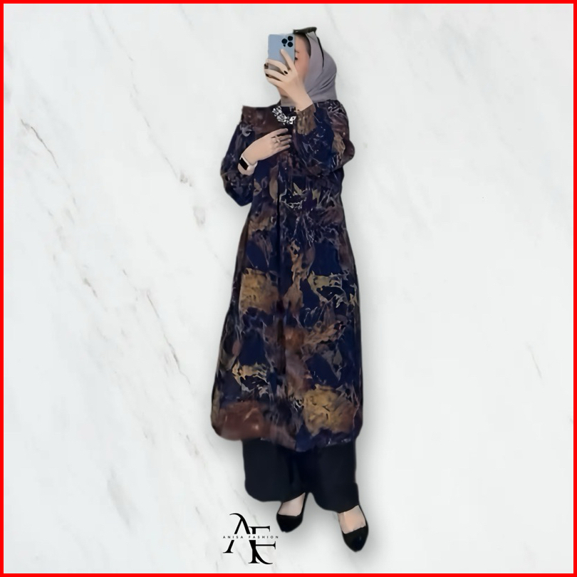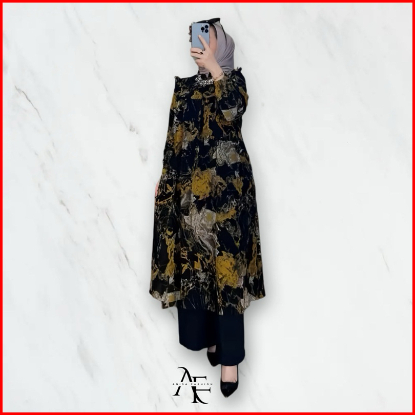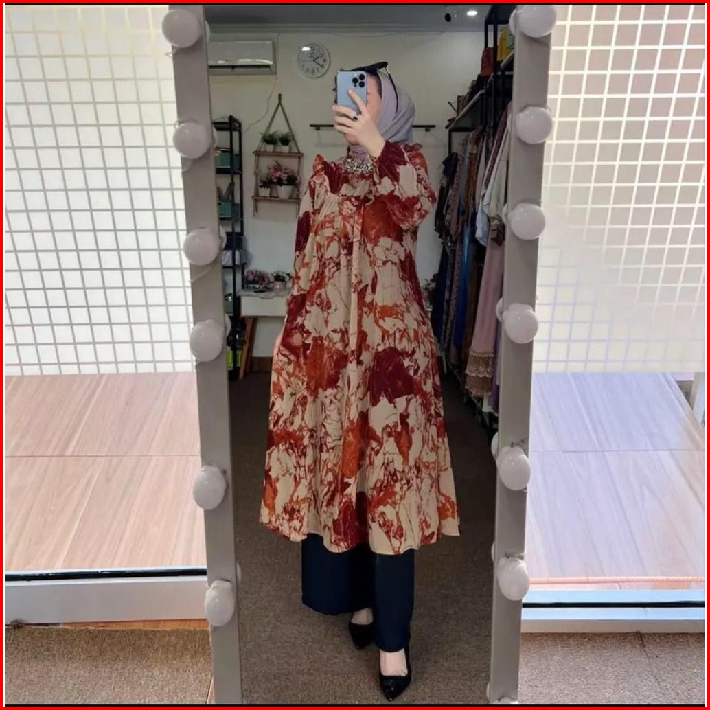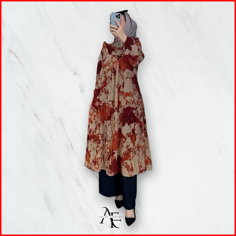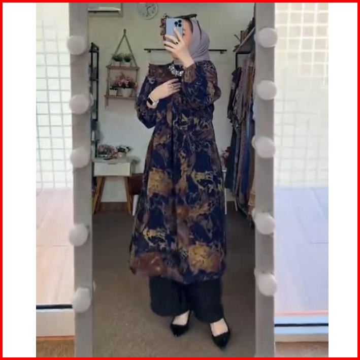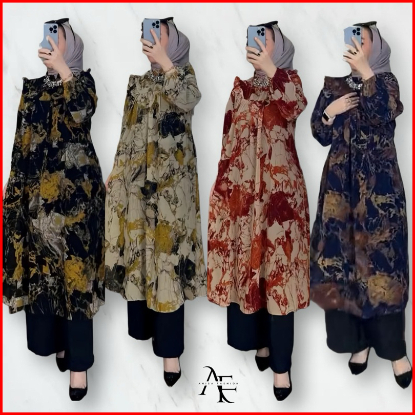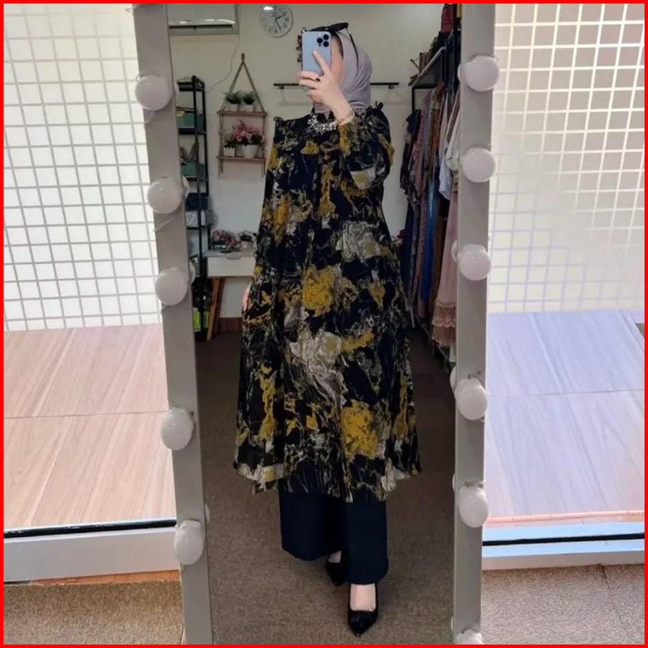 Nadhira Set Tunik Premium - One Set Tunik Nadhira Shakila Motif Abstrak Marble - One Set Wanita Terbaru