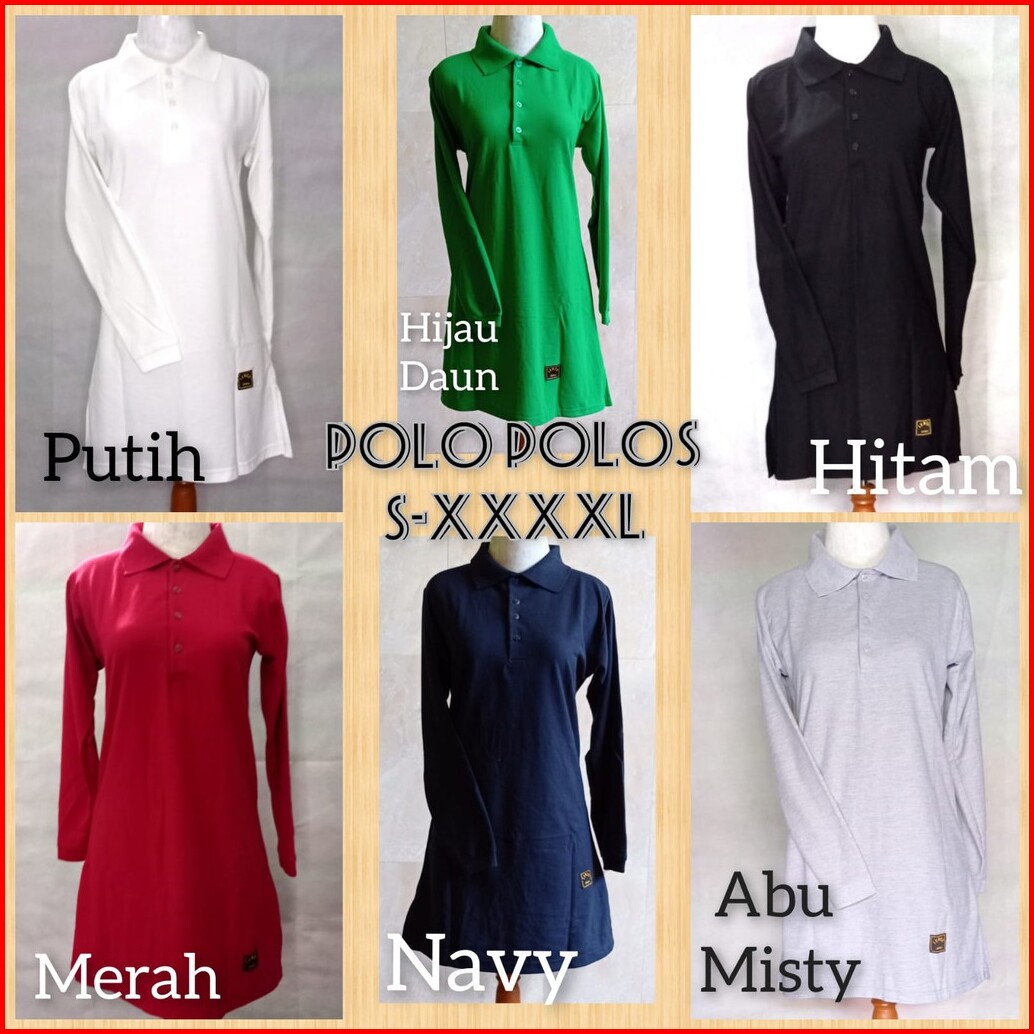 S-xl Kaos Krah Polo Polos Tunik Muslimah Kancing Depan Busui Seragam Kantor Outbond Olahraga