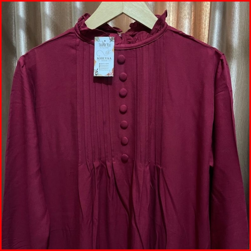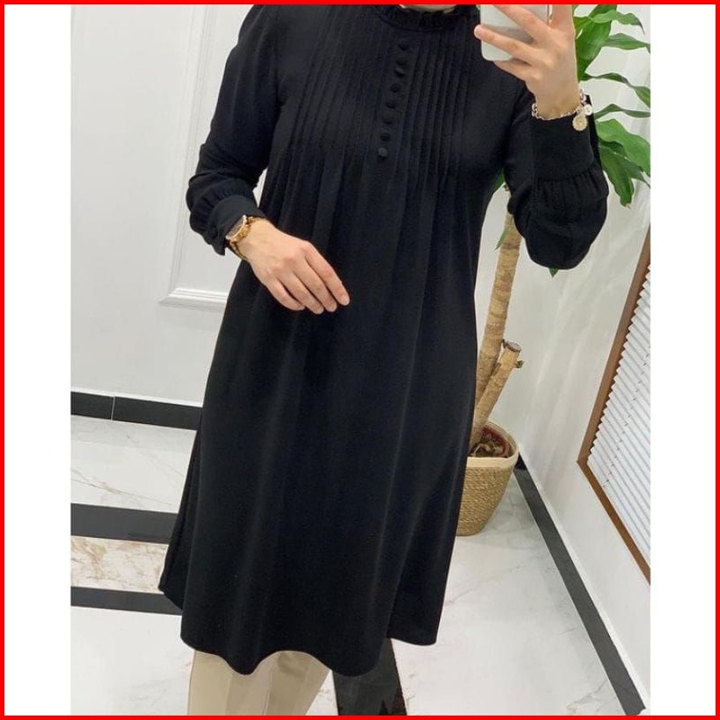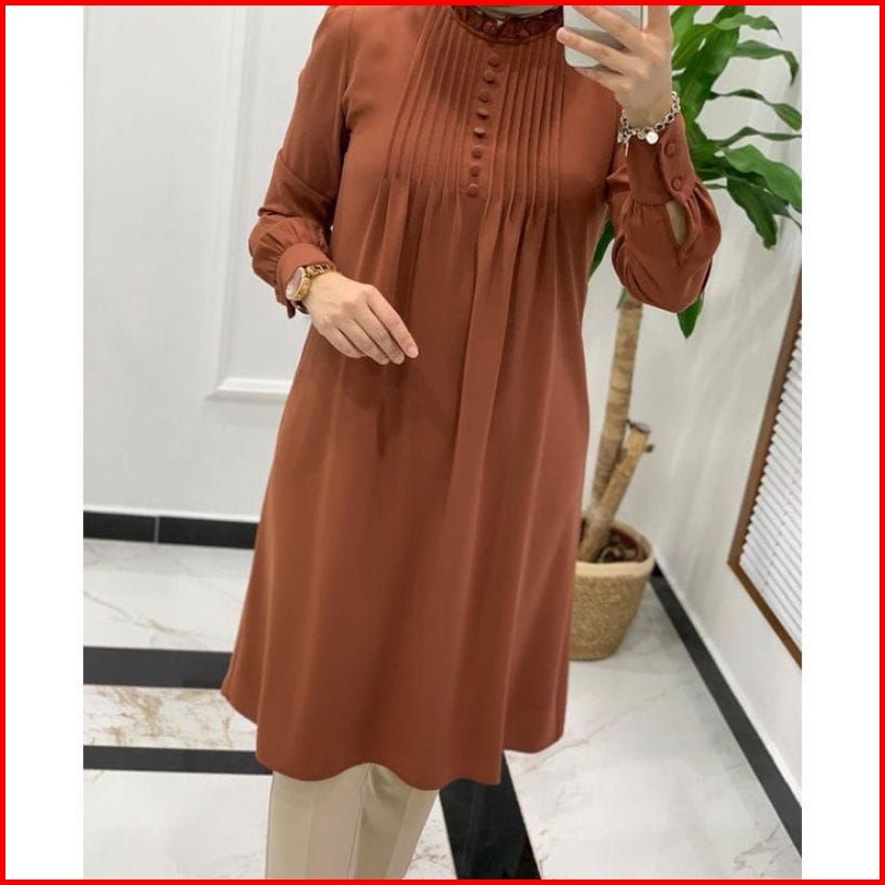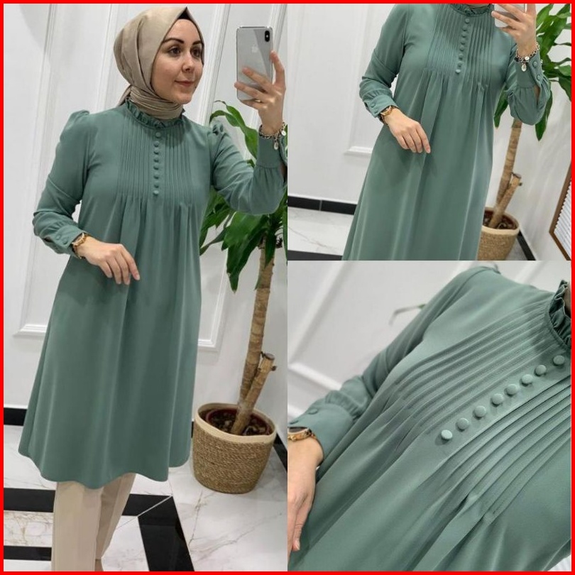 Zahra Tunik Atasan Wanita Modern Terbaru Baju Atasan Muslimah Kombinasi Kancing Depan Atas Resleting Belakang