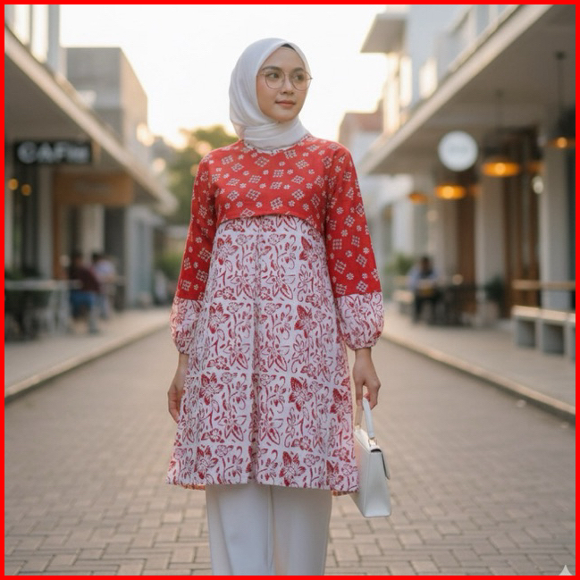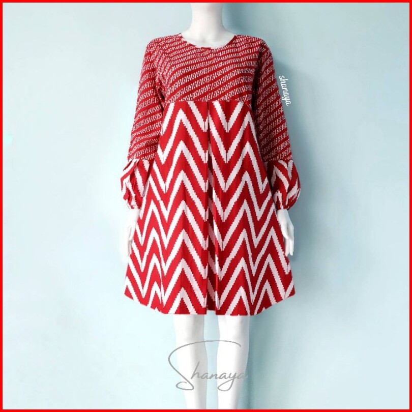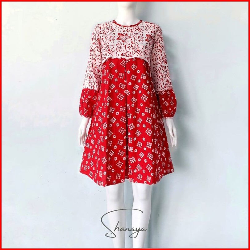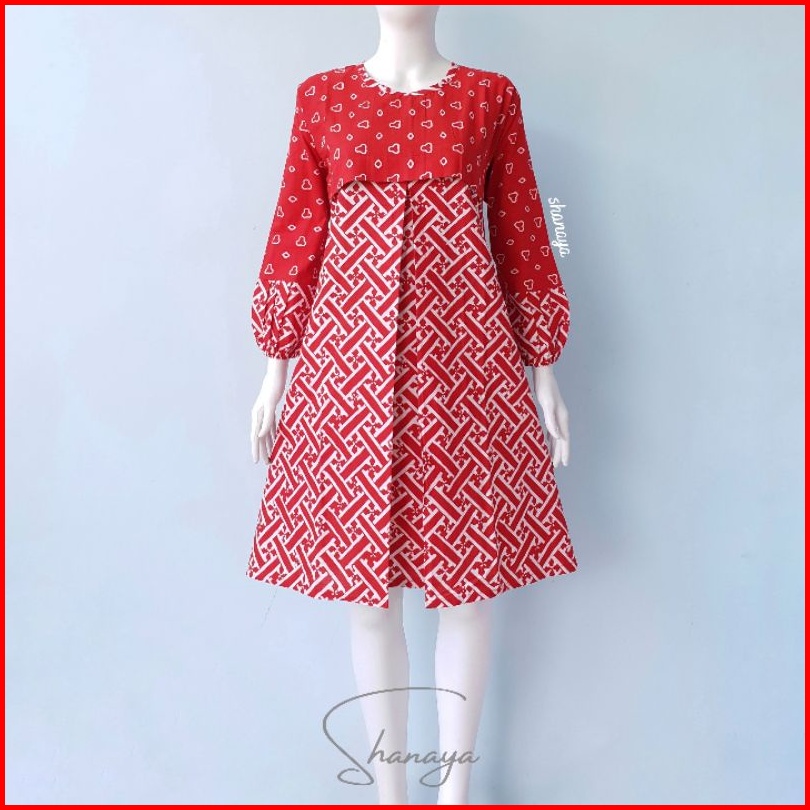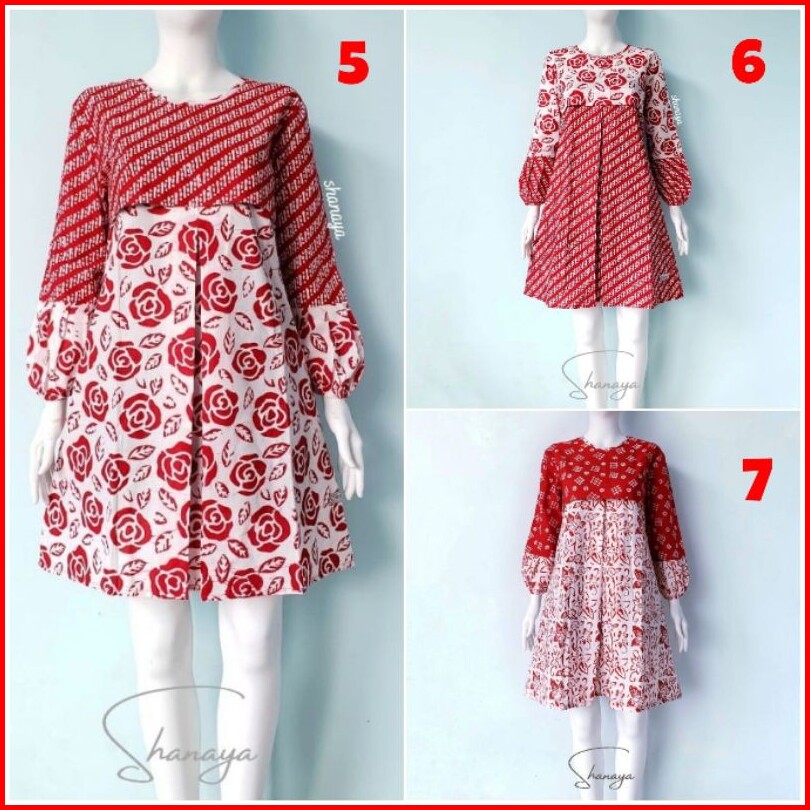 Shanaya Batik Edisi Kemerdekaan Tunik Batik Merah Putih Seling Batik Cap Batik Solo Atasan Batik Modern