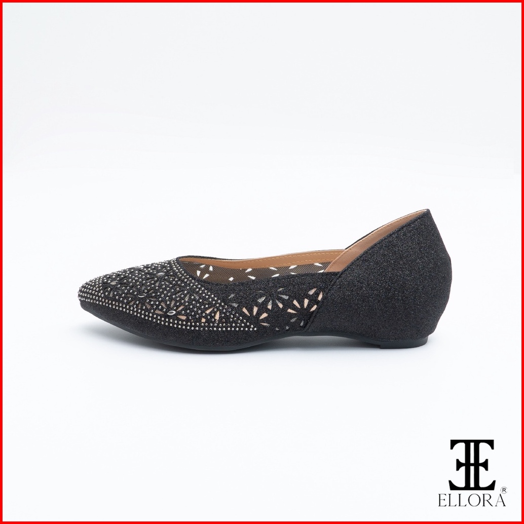 Ellora Em-6799 Sepatu Flatshoes Pesta Wanita Bahan Kanvas Gliter