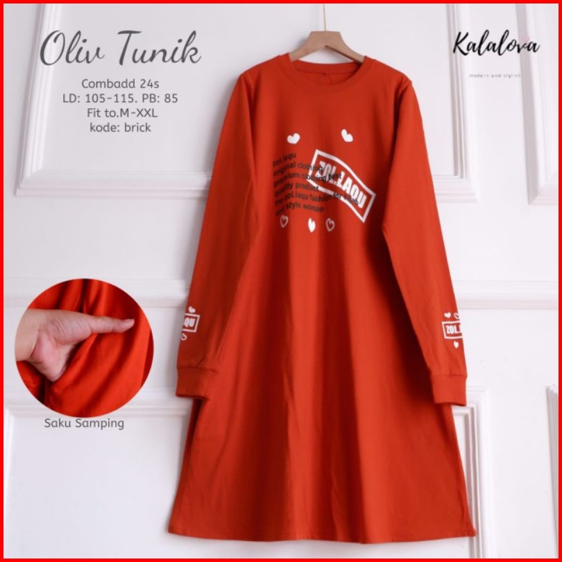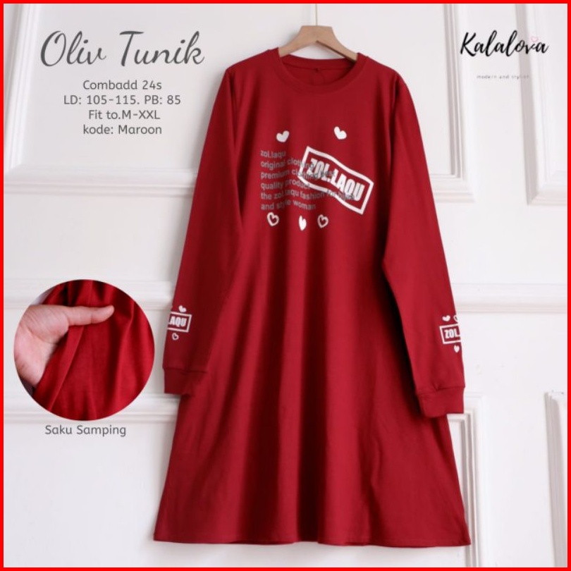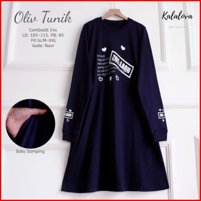 Kalalova Olive Tunik Kaos Combed Halus Nyaman Dipakai Original. Zolaqu Kaos Tunik Import