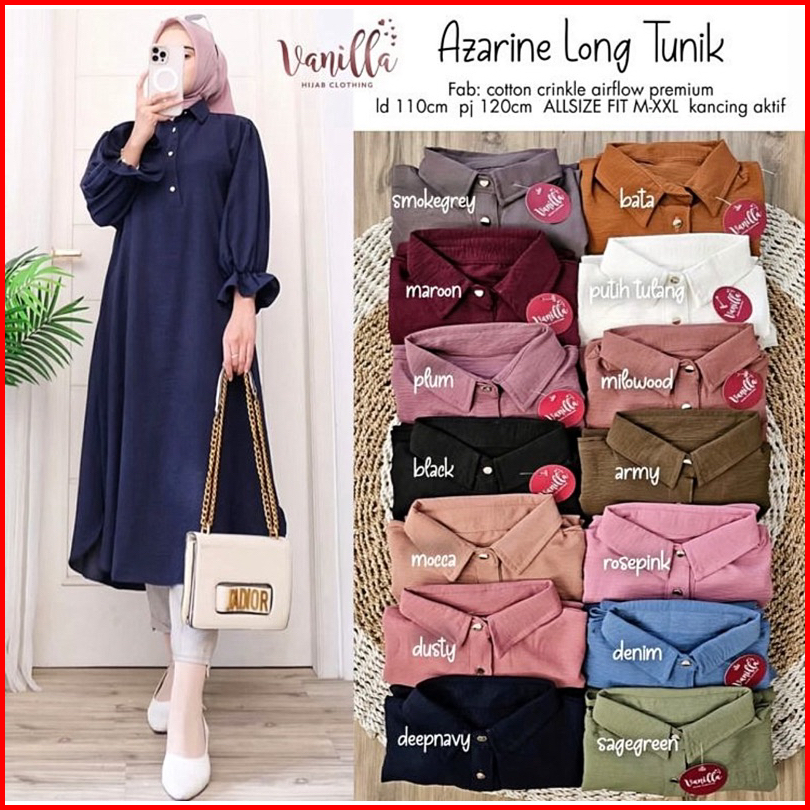 Tunik Azarine Tunik Wanita Crinkle Atasan Muslim Wanita Terbaru