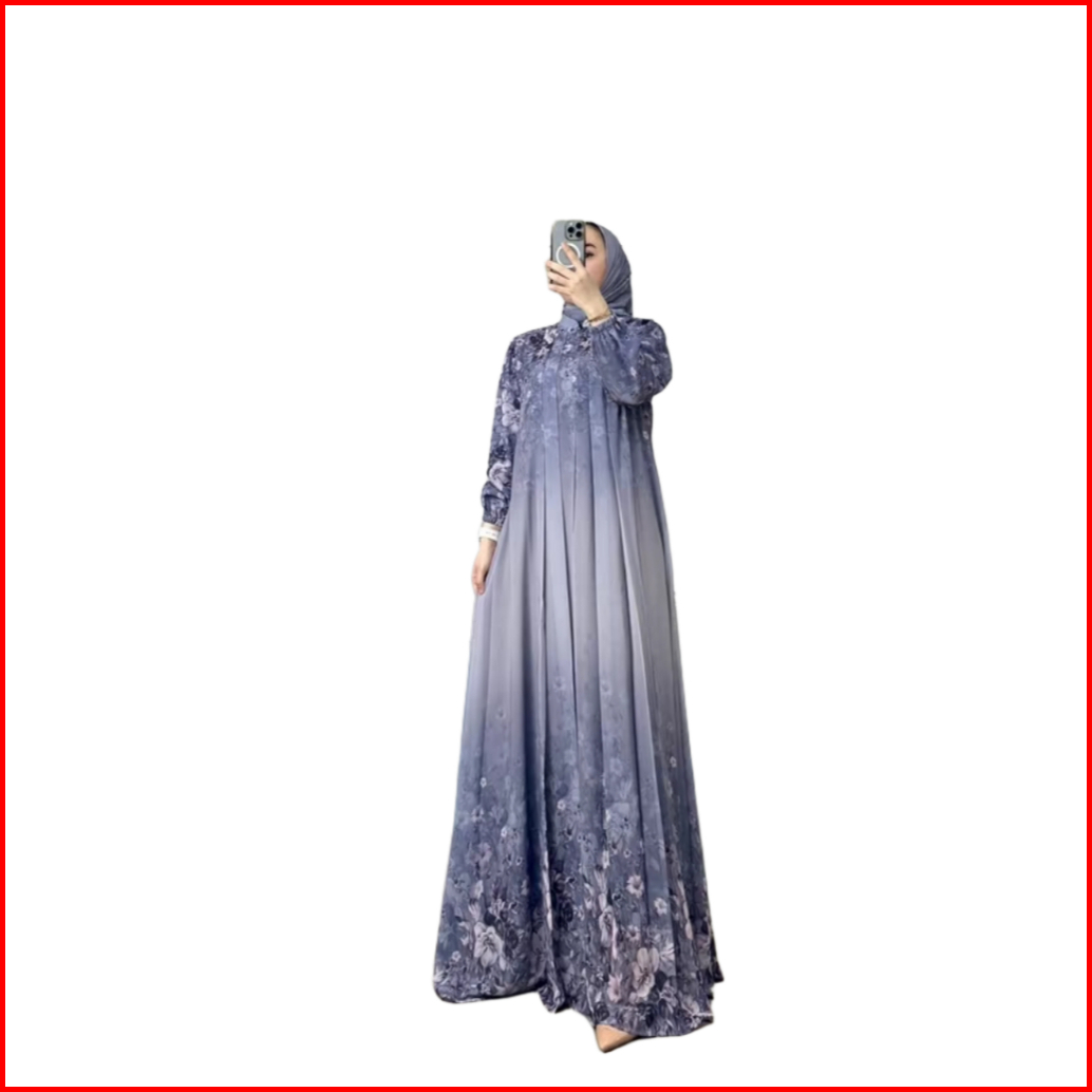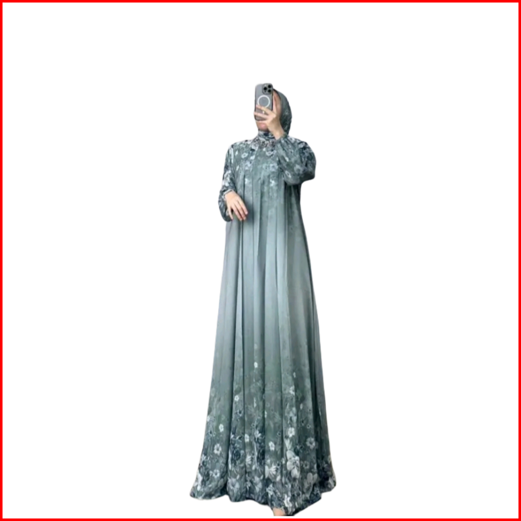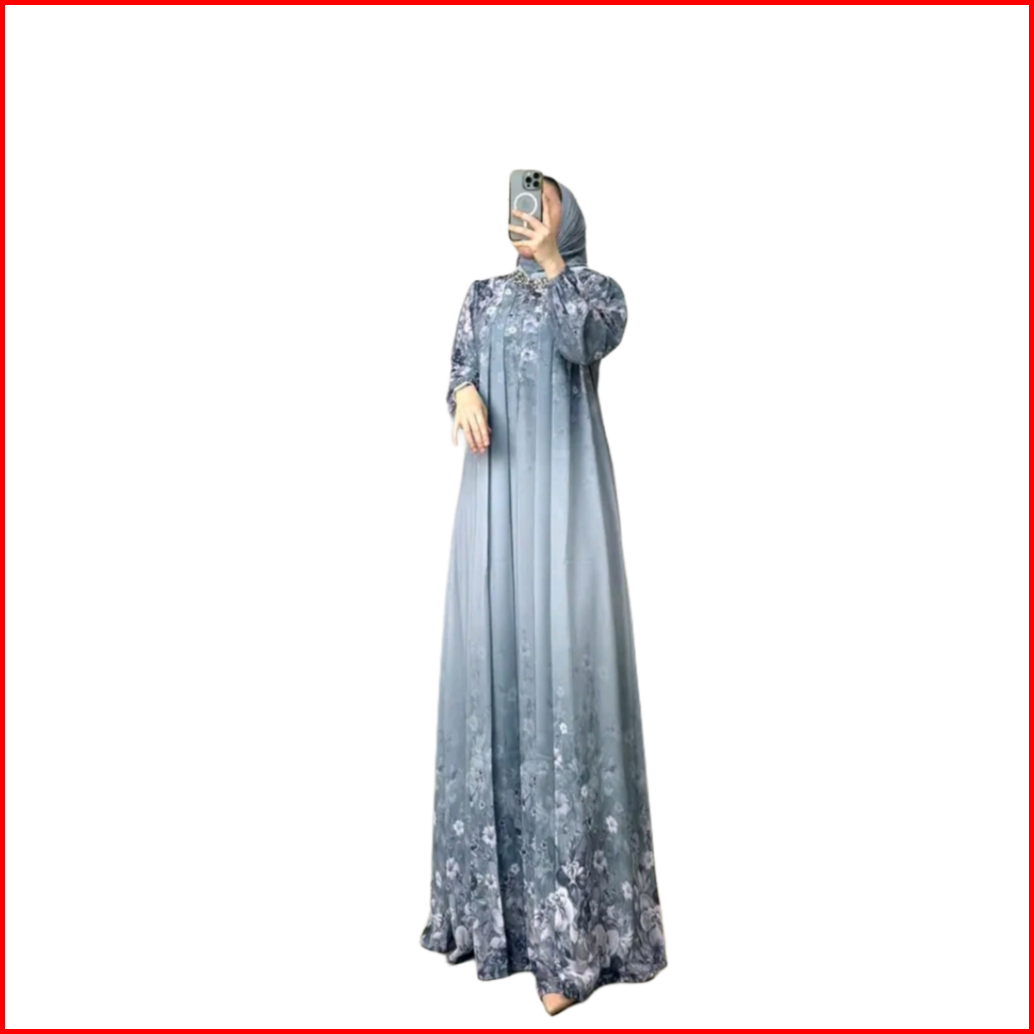 Dreana Store - Set Gamis Hijab Ameena Dress Muslim Wanita Ceruty Digital Print Motif Bunga Lengan Panjang Karet Busui Ga