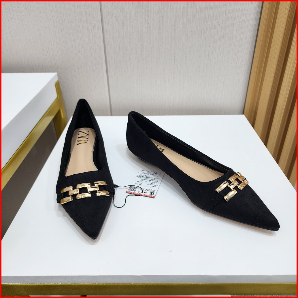 Flat Shoes Wanita Elegan Zr 809 Black Suede