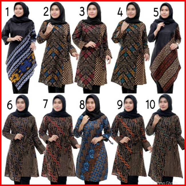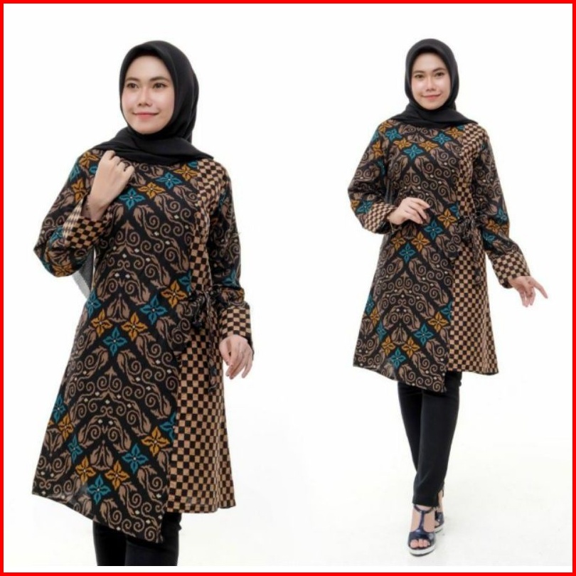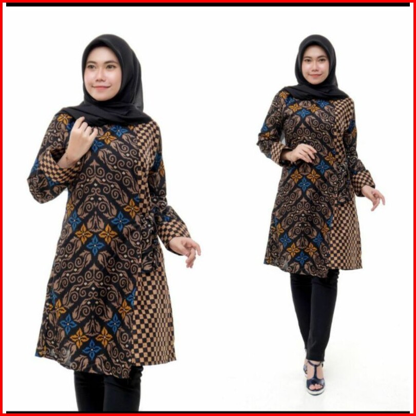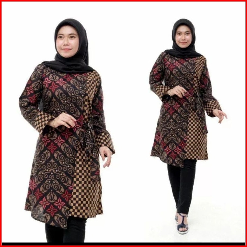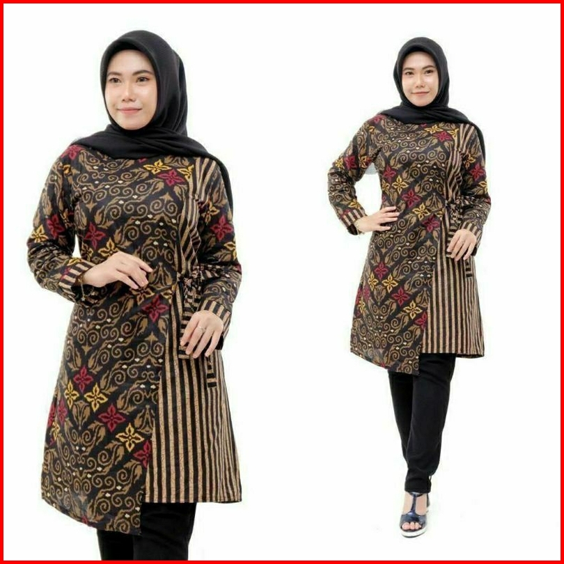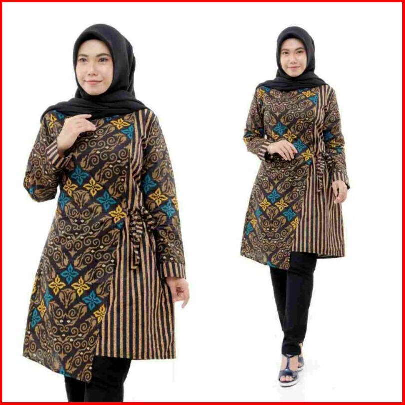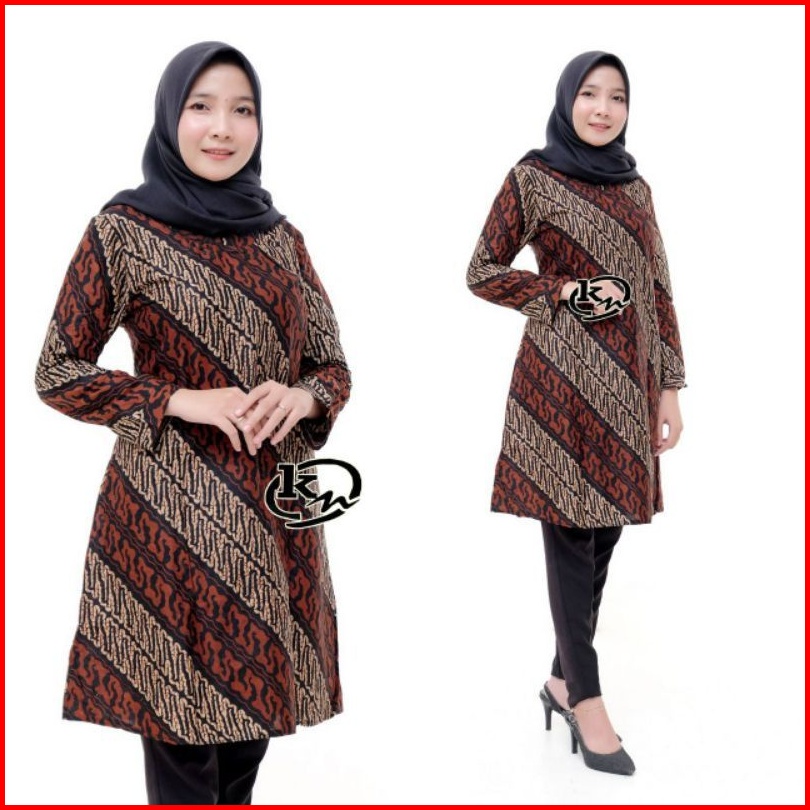Tunik Batik Wanita Motif Songket Kombinasi Kotak L Liris Respati Garis Seragam Batik