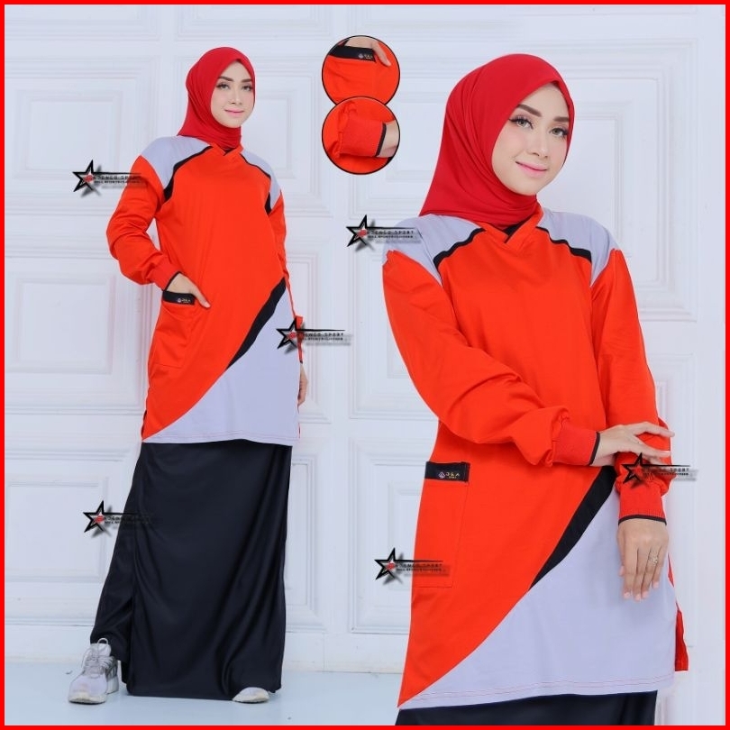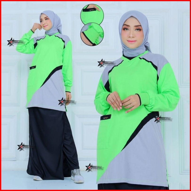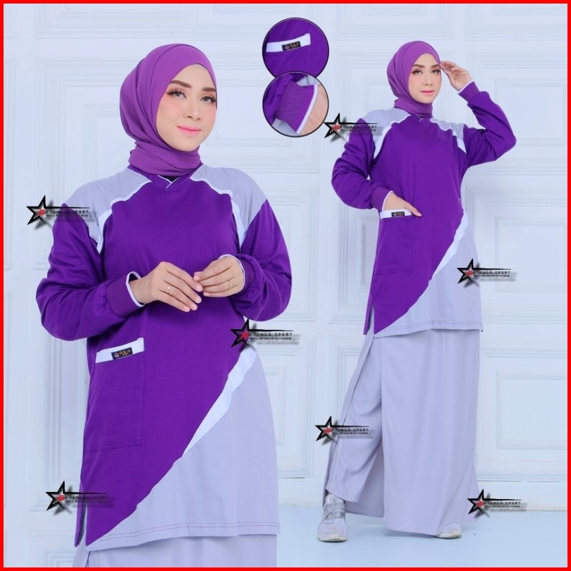 New Setelan Baju Olahraga Senam Tunik Celana Rok Rocela Wanita Muslimah Setelan Baju Olahraga Setelan Baju Senam Muslima