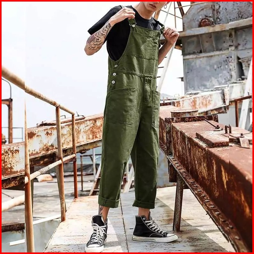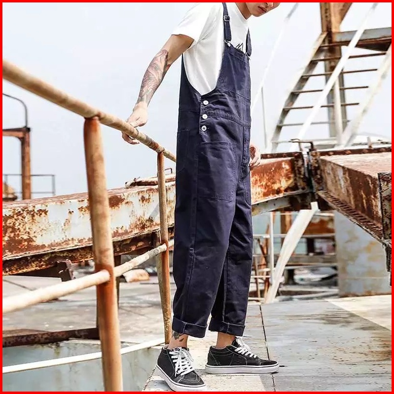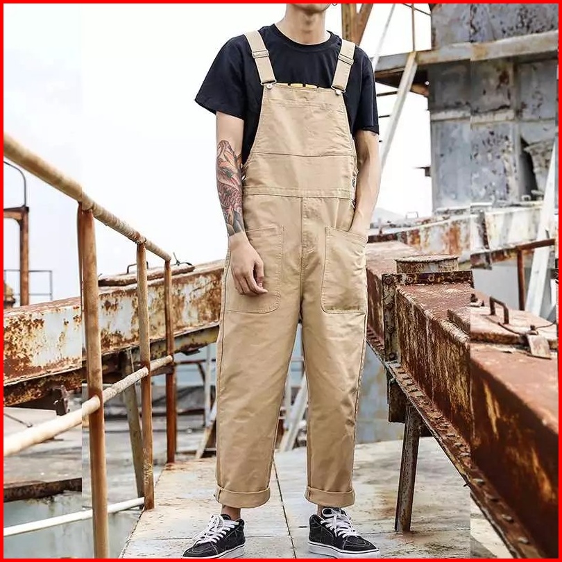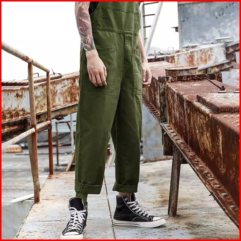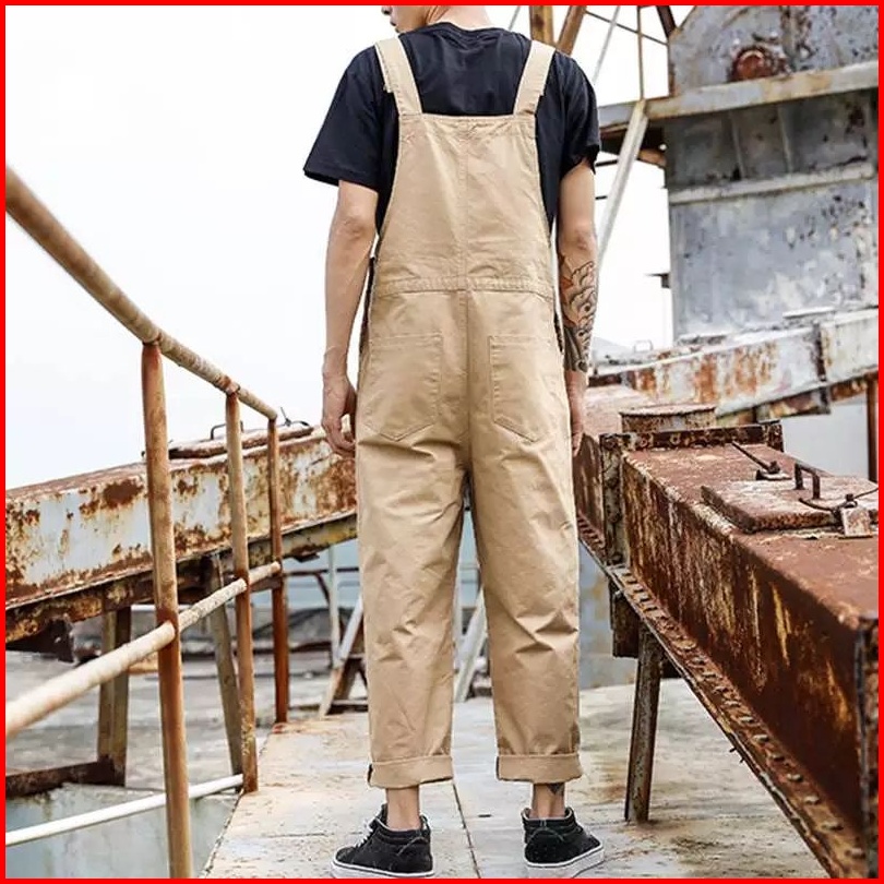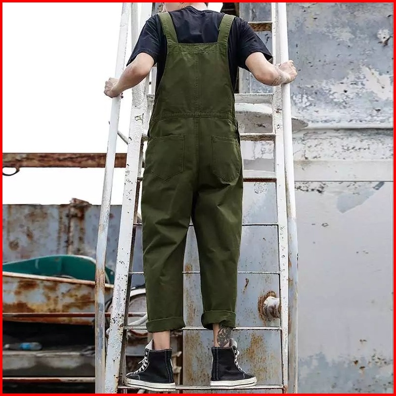 Overall Retro Pria 100 Real Unisex American Drill Celana Kodok Jumpsuit Overall