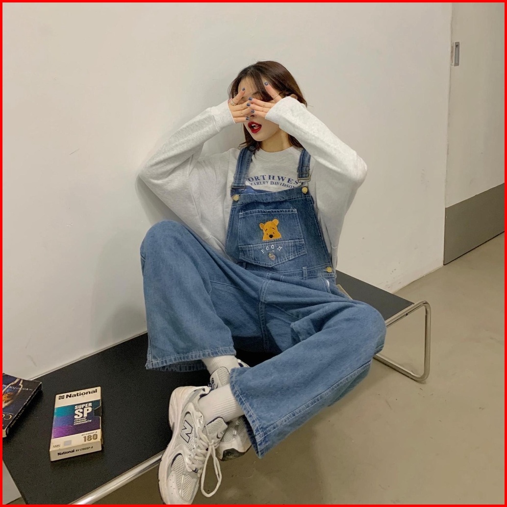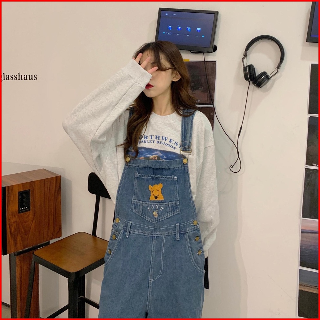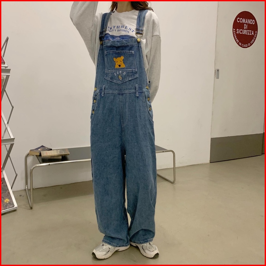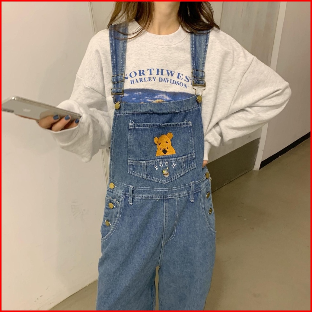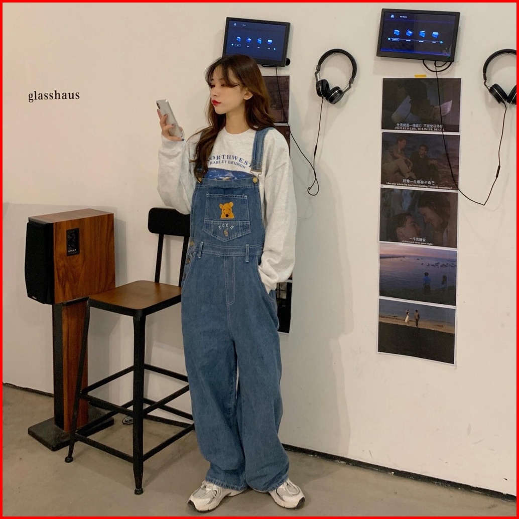 Jeans Overalls Bordir Kartun Celana Jumpsuit Wanita Fashion Pakaian Kodok Celana Kodok Korean Style Jean Overall