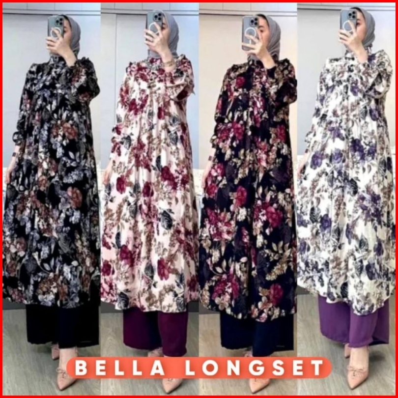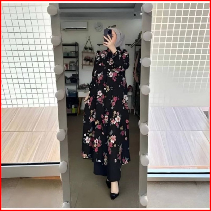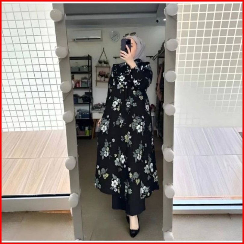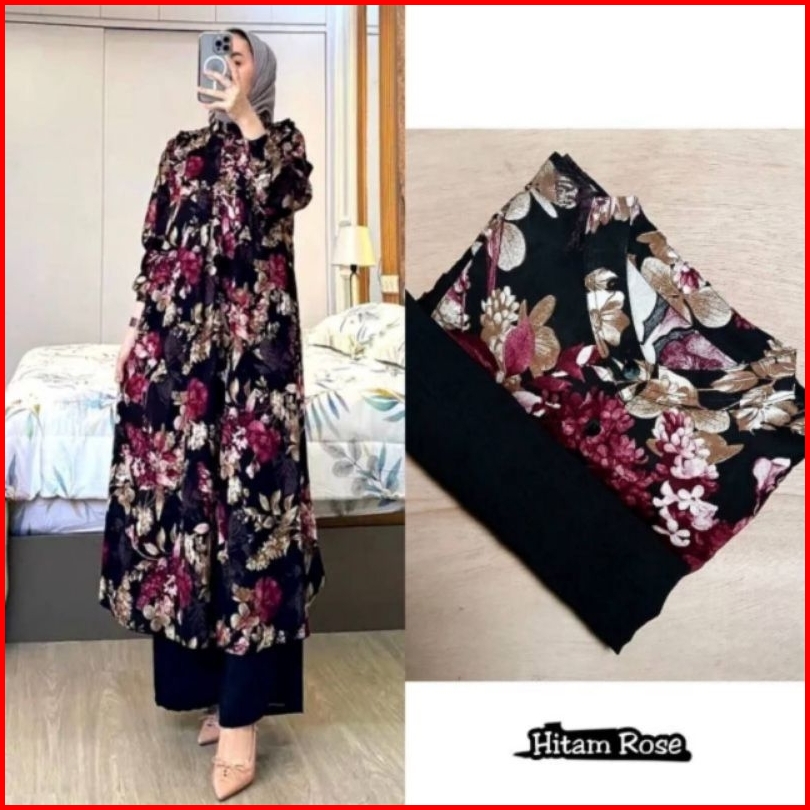 One Set Long Tunik Wanita Setelan Tunik Wanita Bunga Sakura Series Rayon Diamond Super Premium