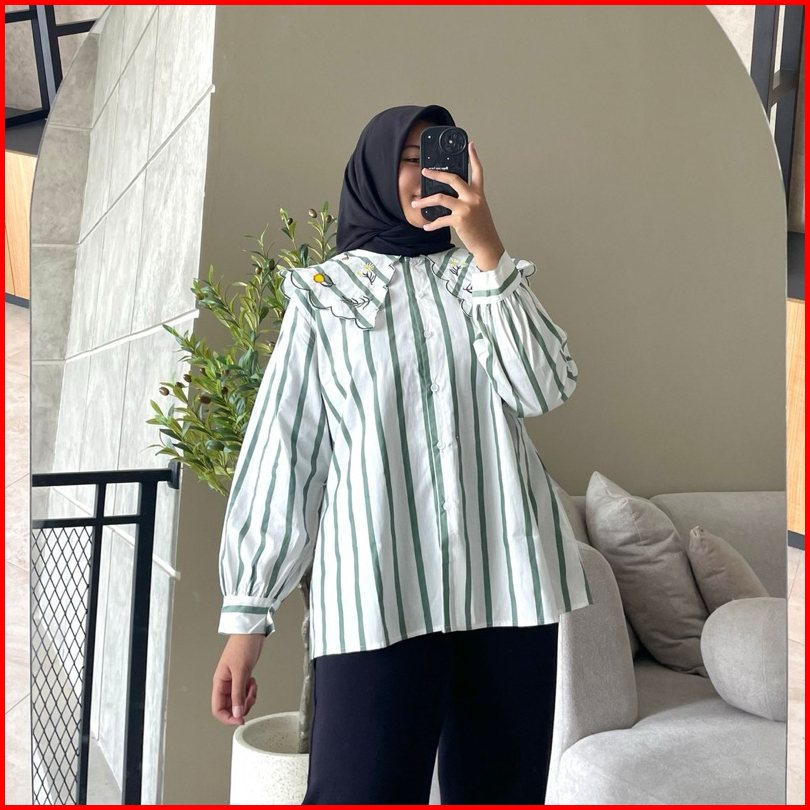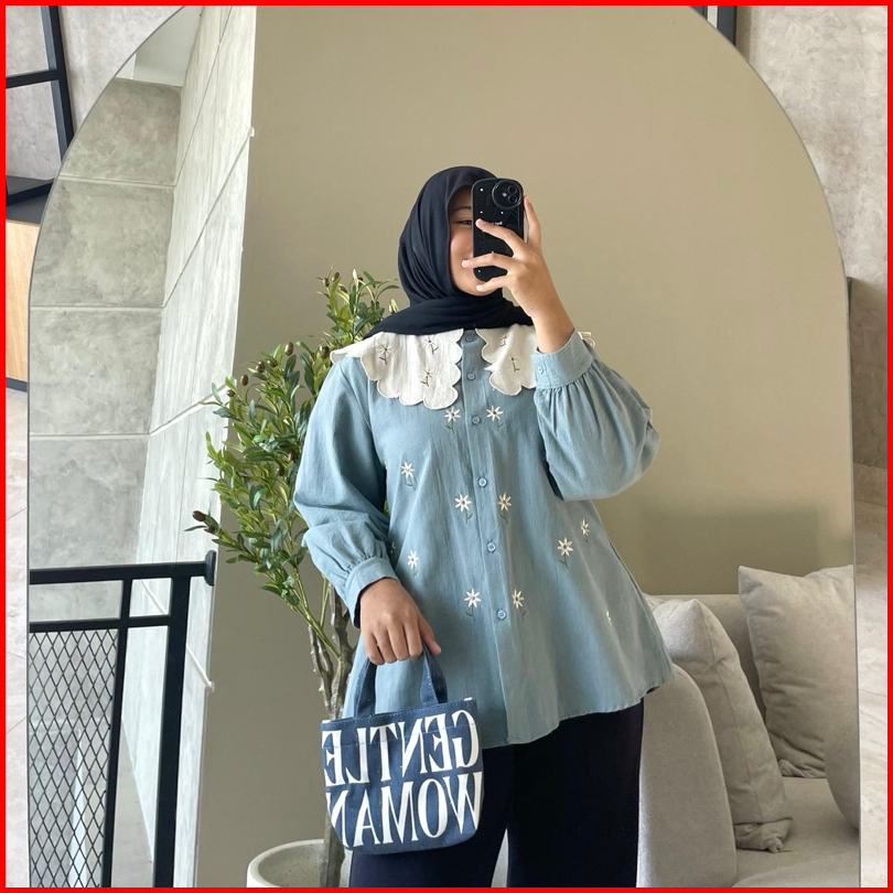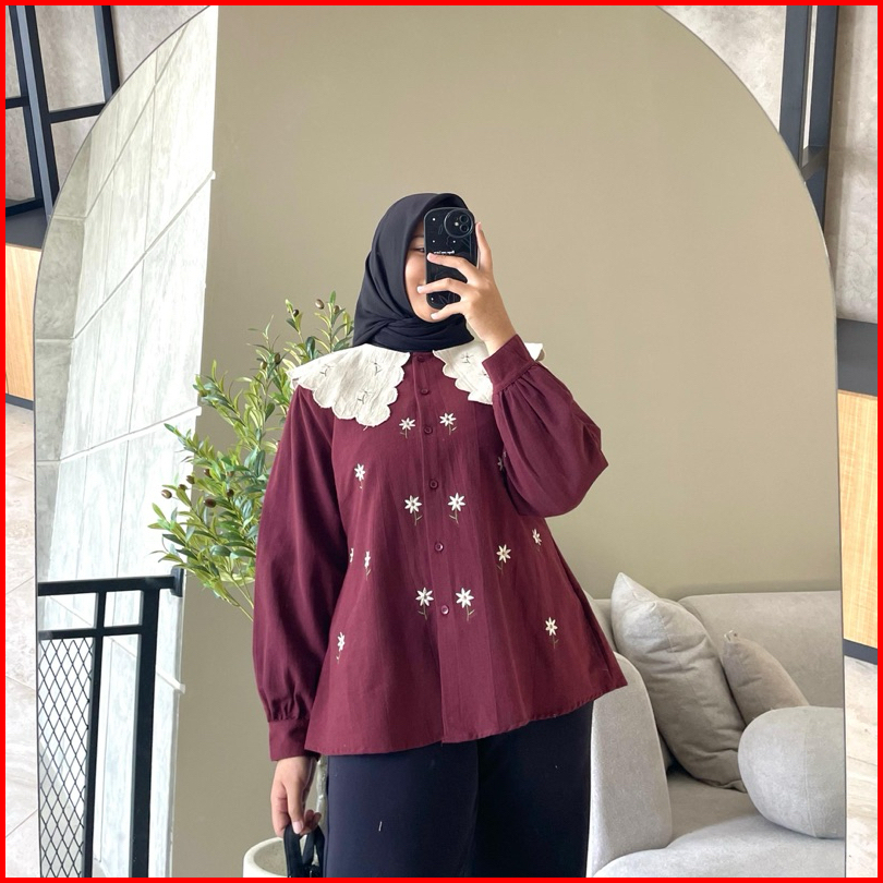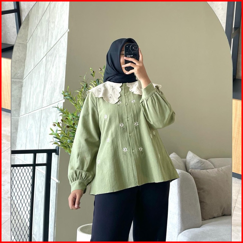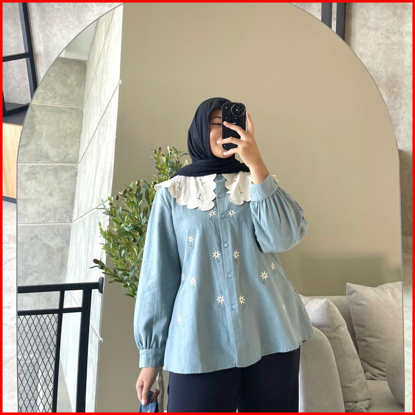 Hanako 366 Collar Ruffle Shirt Kemeja Linen Bordir