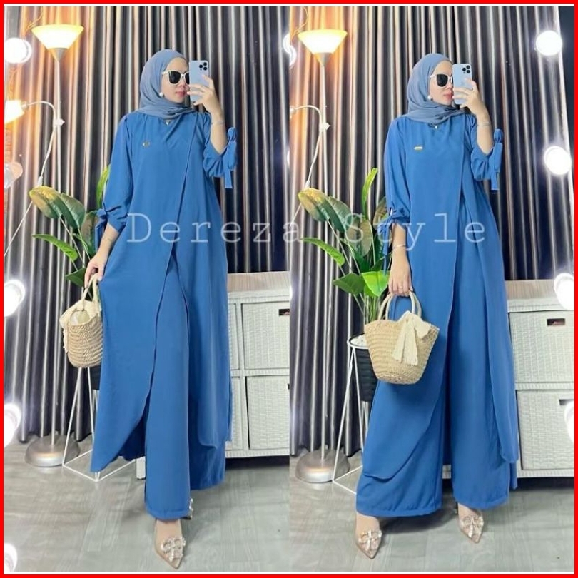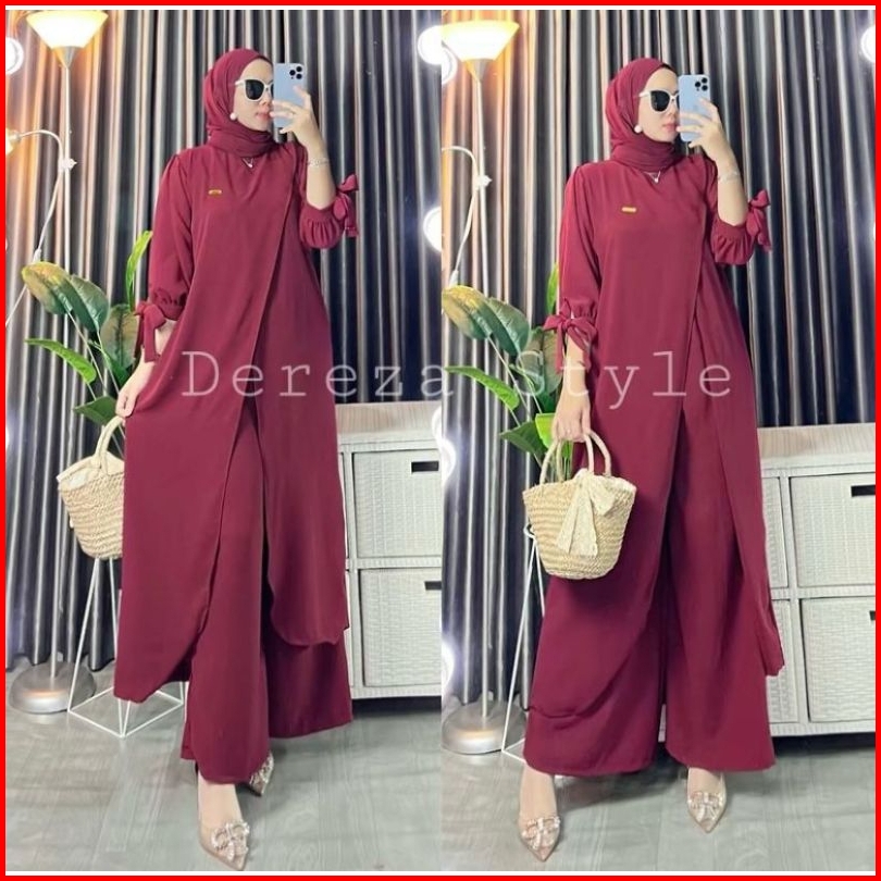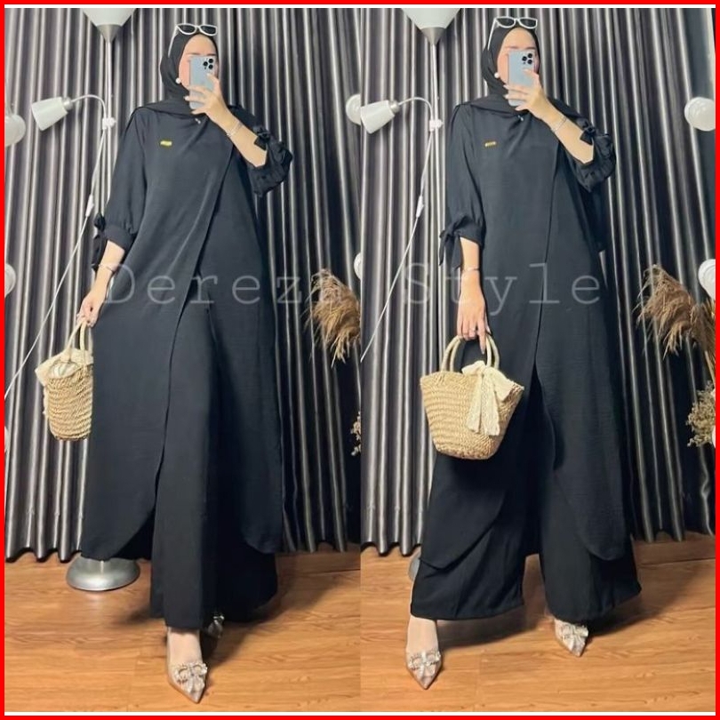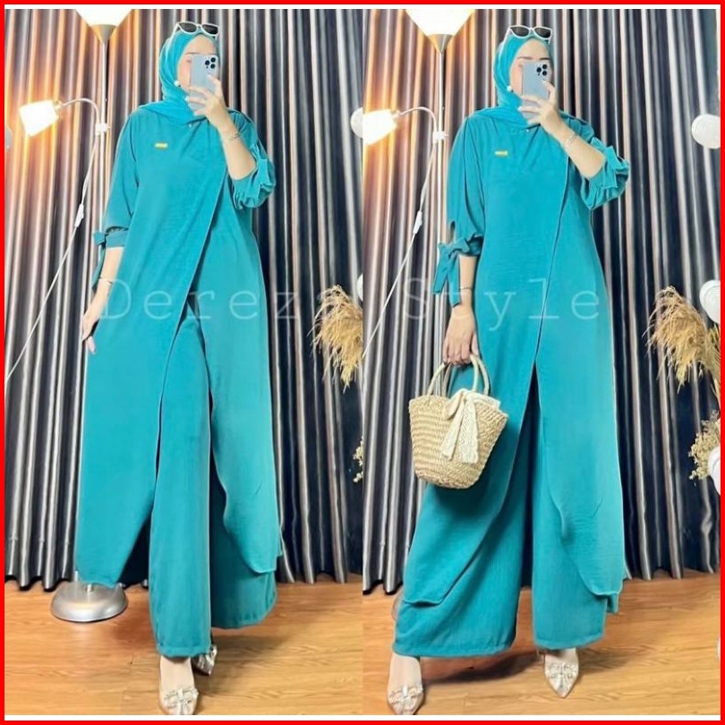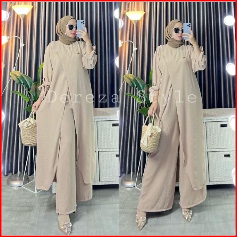 Setelan Long Tunik By Dereza Style Terbaru Kekinian Crinkle Airflow Muslim Wanita Muslim Wanita