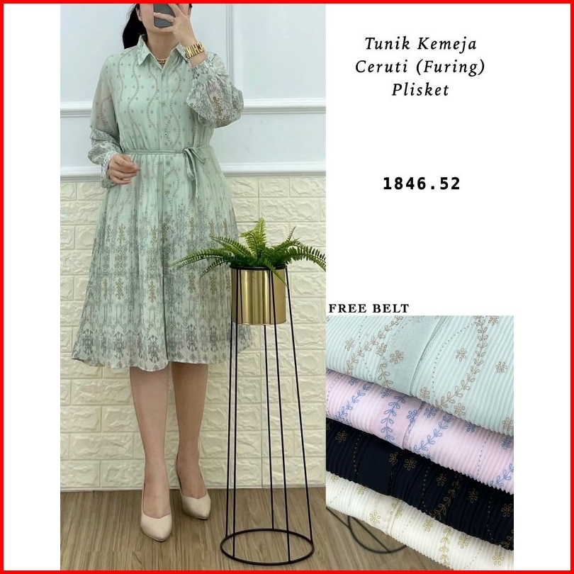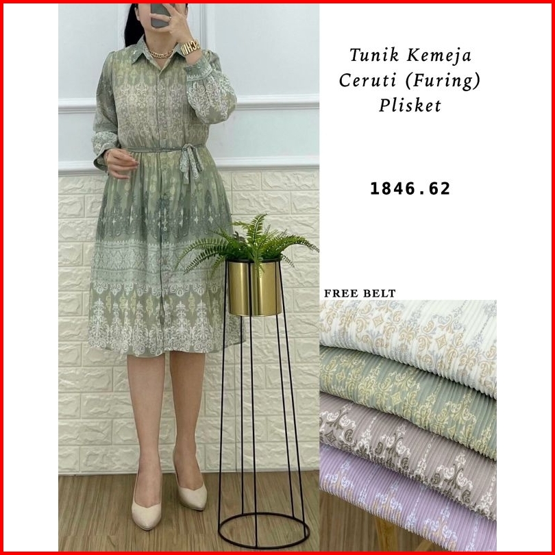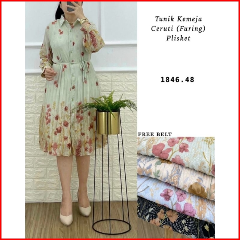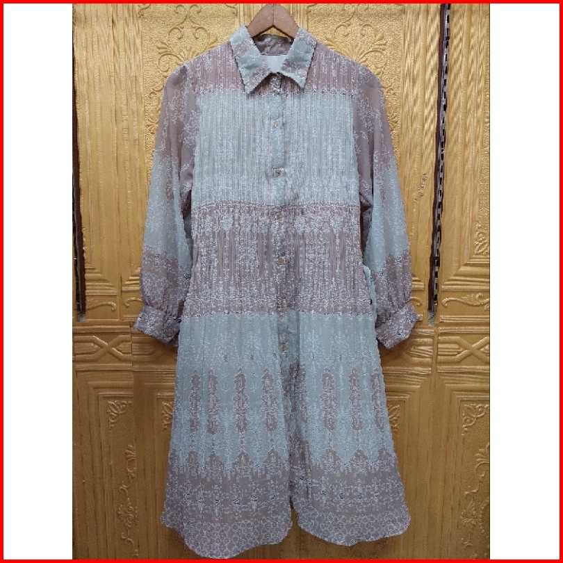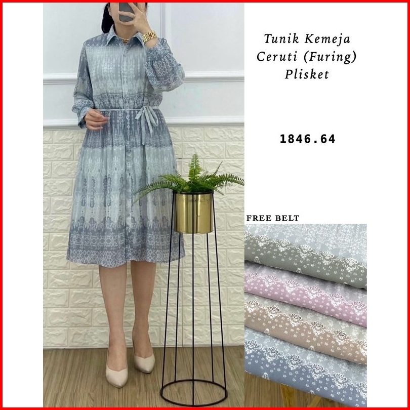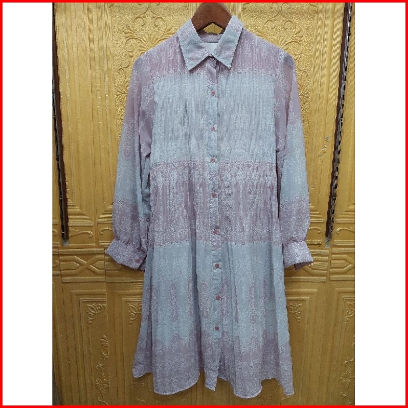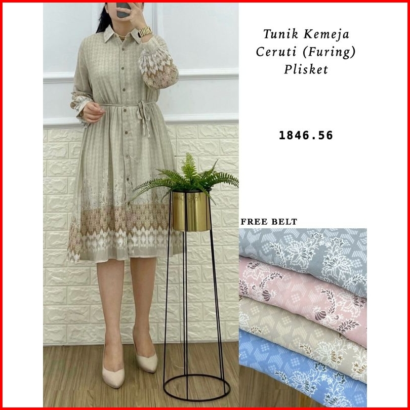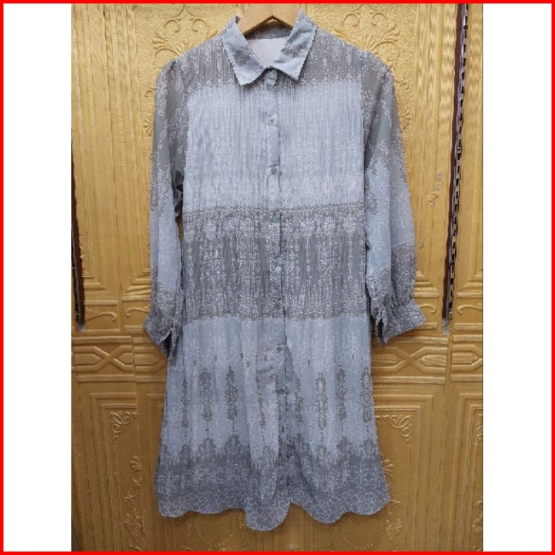 Tunik Kemeja Plisket Tunik Wanita Motif