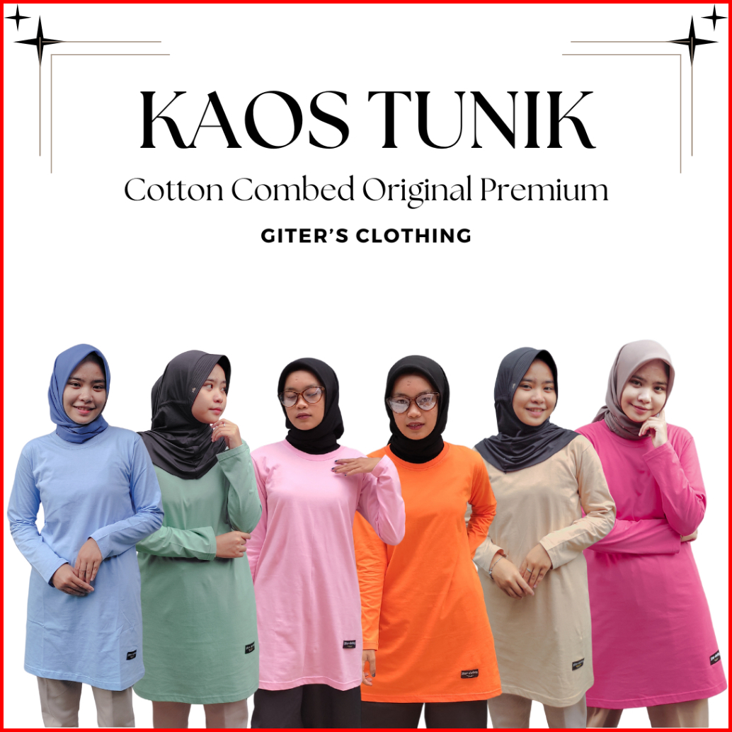 Giter Clothing Tunik Kaos Premium Cotton Combed 24s - Kaos Muslimah Jumbo - Etalase Warna Best Seller