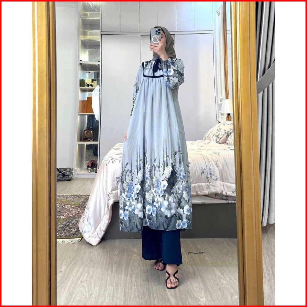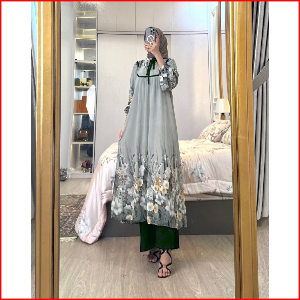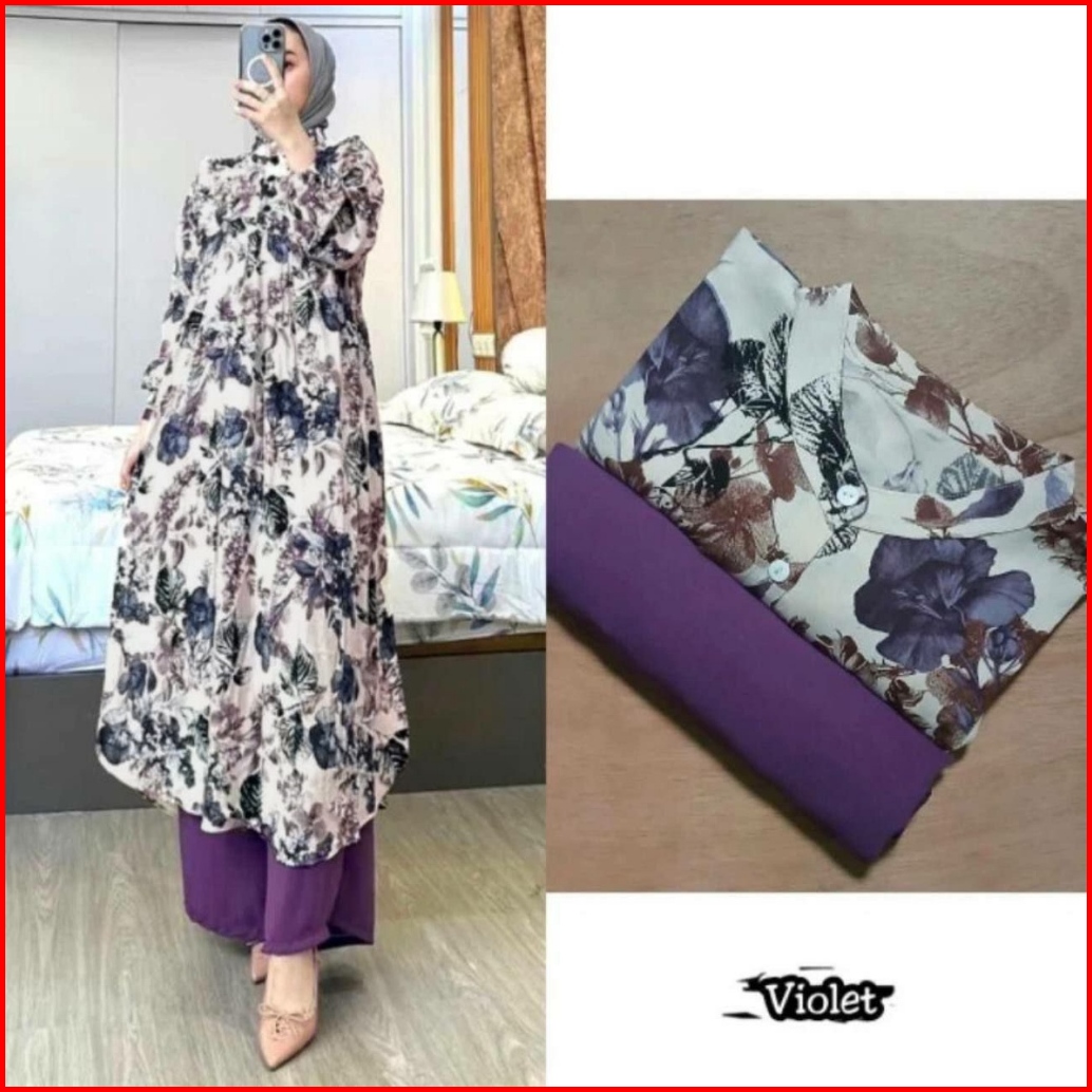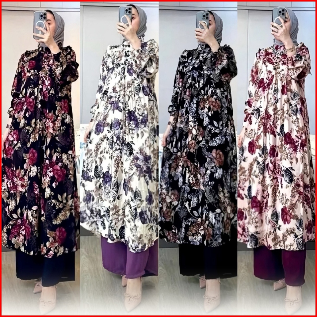 One Set Setelan Tunik Celana Setelan Wanita Rose Flower Baju Wanita Atas Bawah